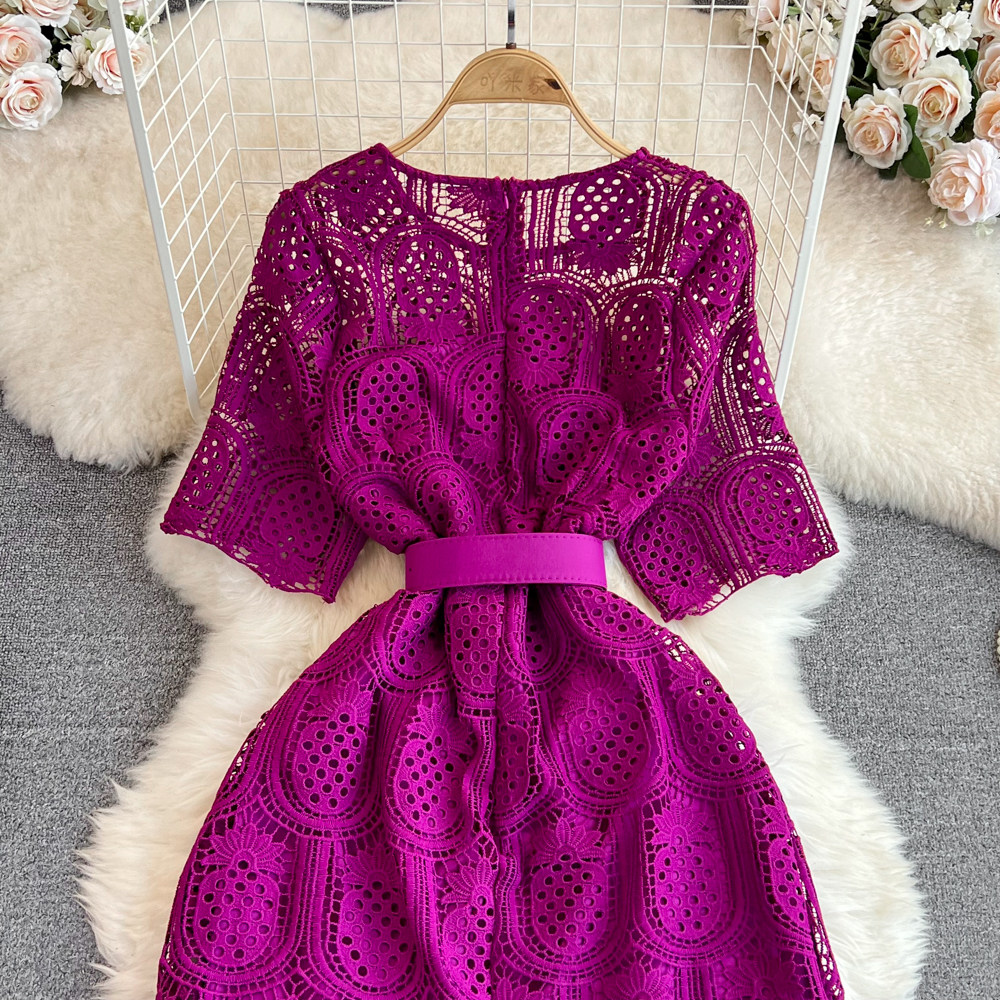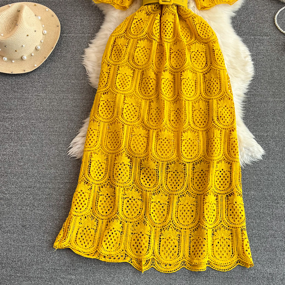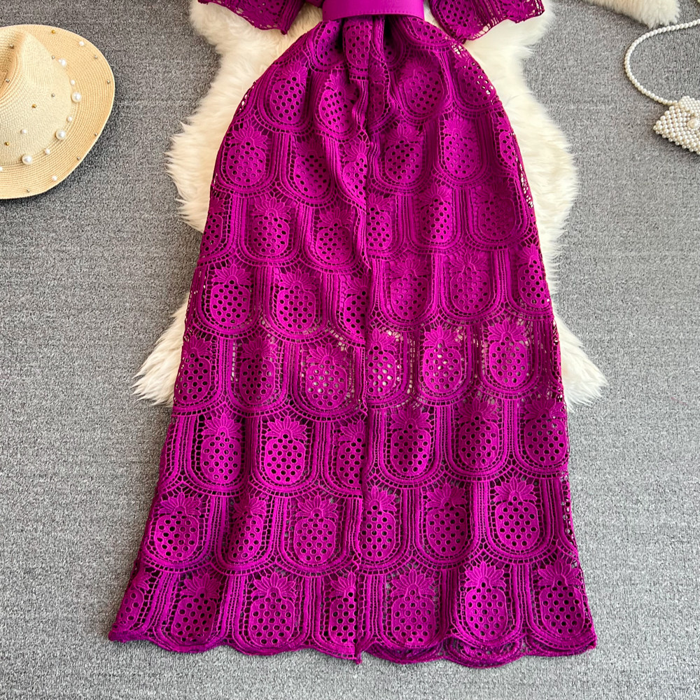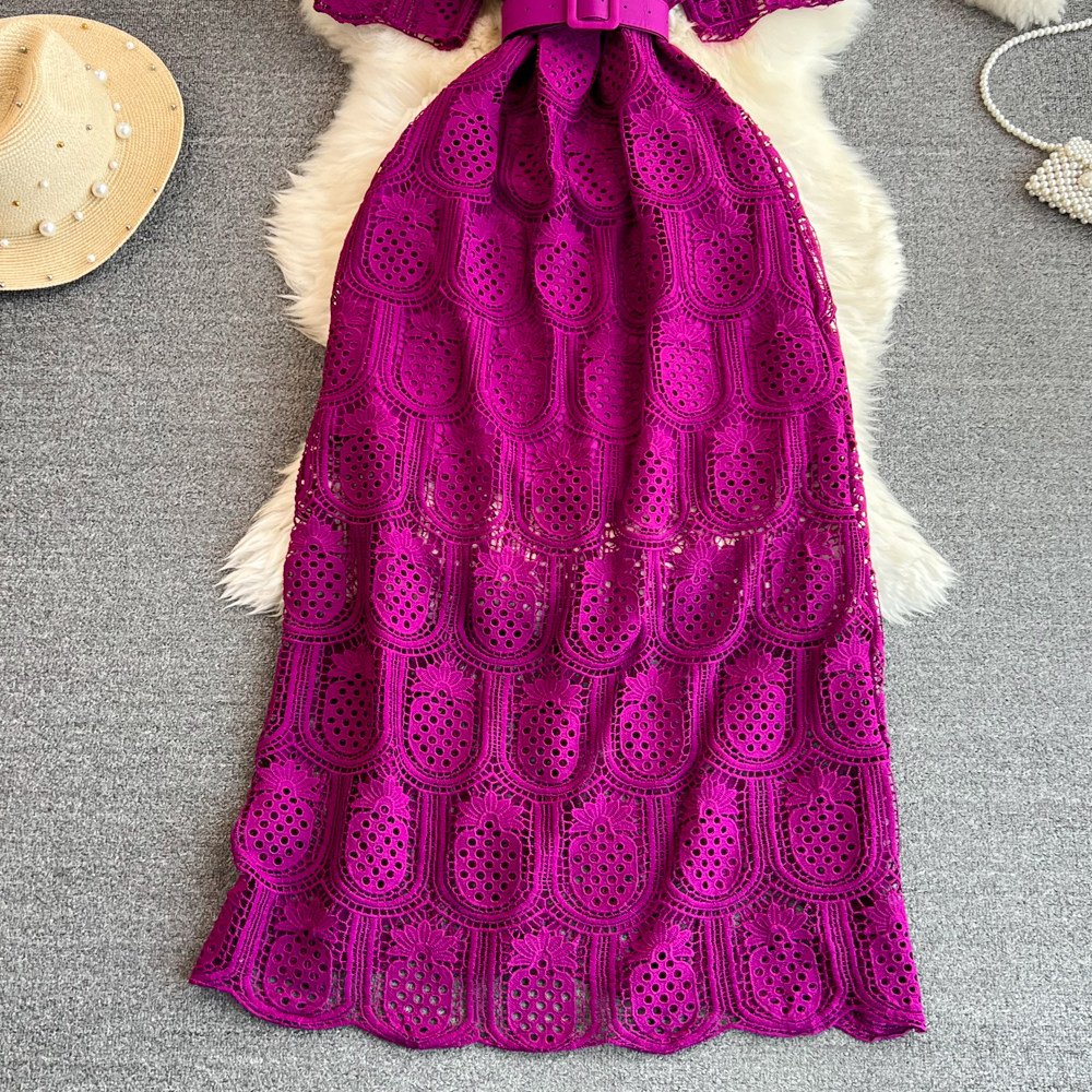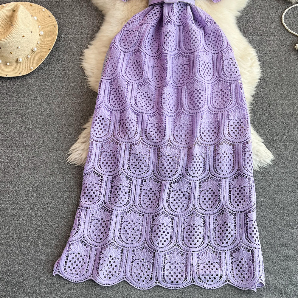 Летний ретро приталенный корсет с круглым воротником, кружевное элегантное платье, длинная юбка, изысканный стиль, короткий рукав