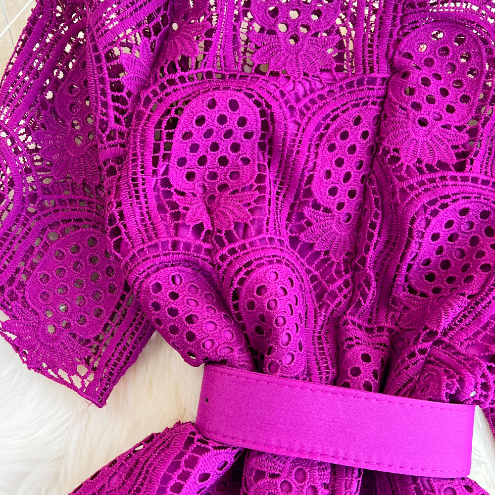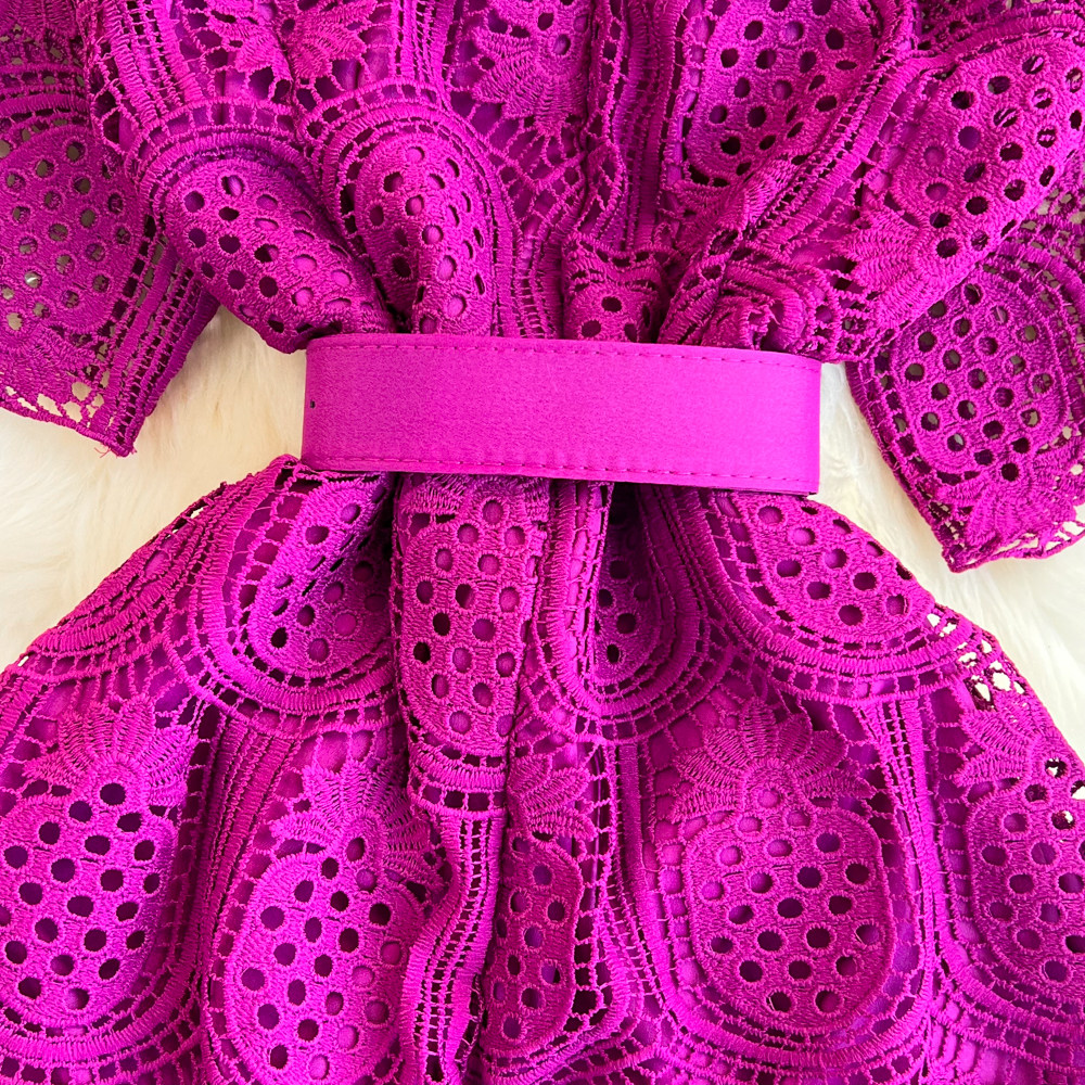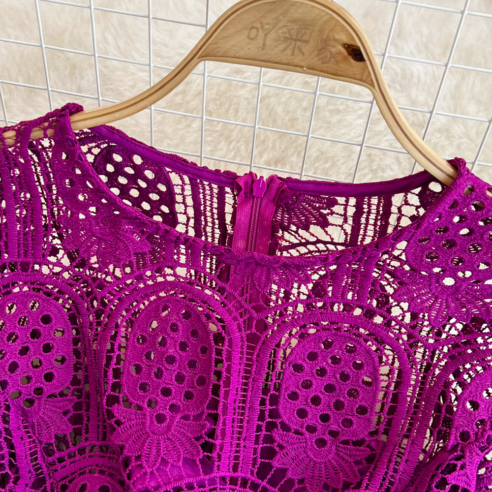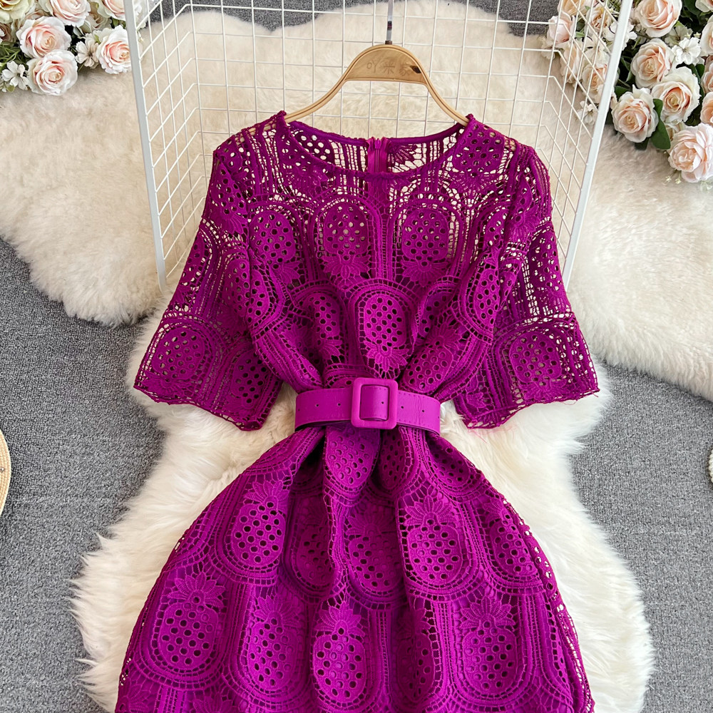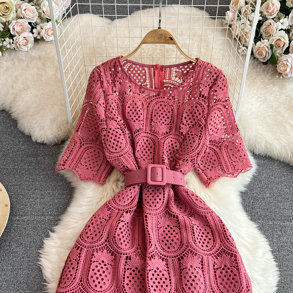 Летний ретро приталенный корсет с круглым воротником, кружевное элегантное платье, длинная юбка, изысканный стиль, короткий рукав