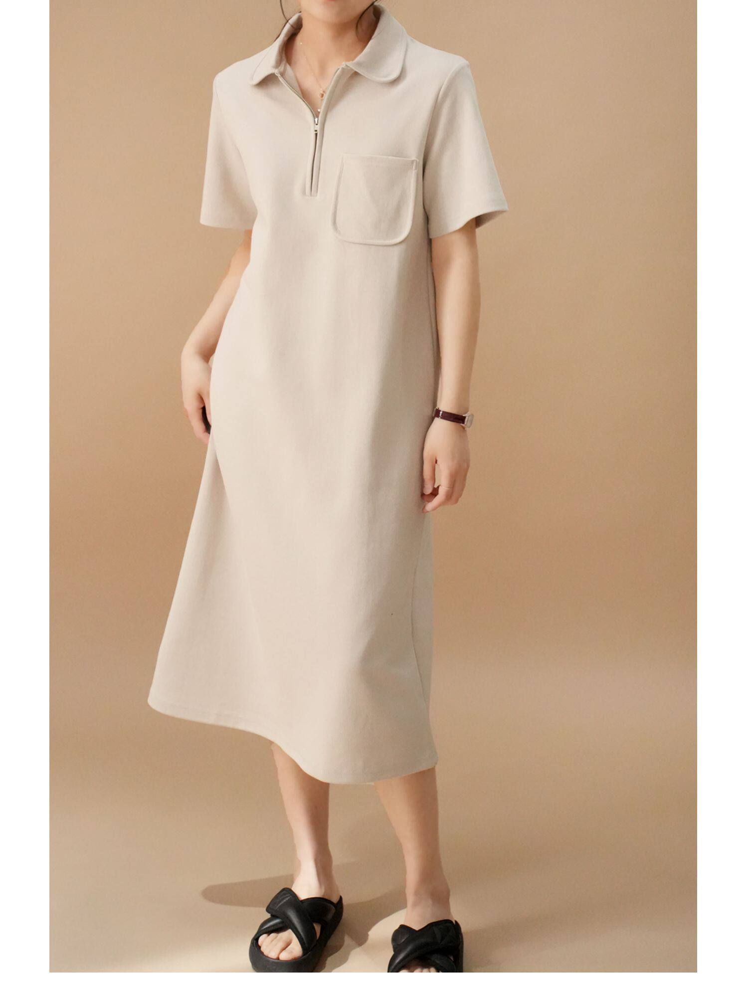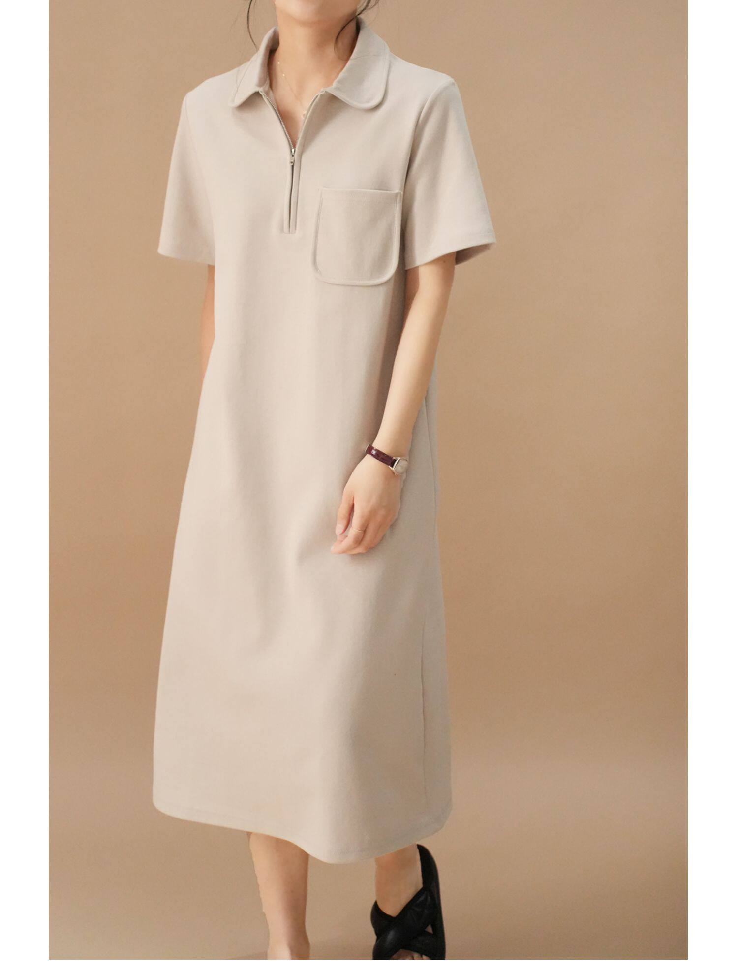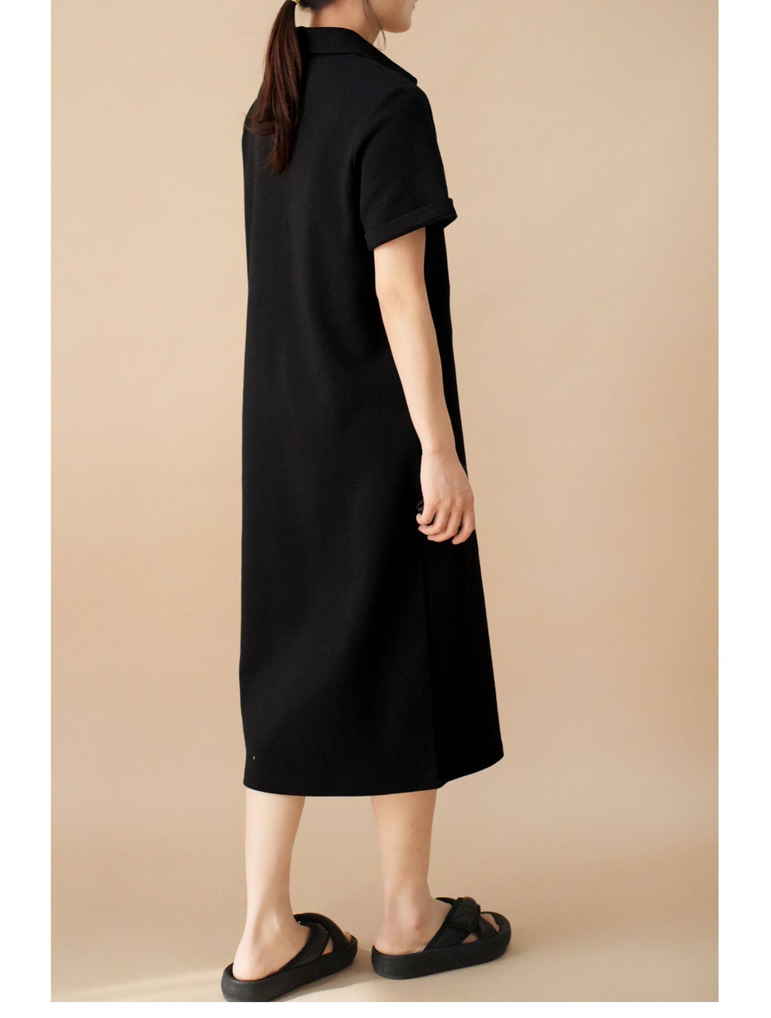 Толстовка, однотонное длинное летнее платье для отдыха, воротник поло, короткий рукав, средней длины, городской стиль