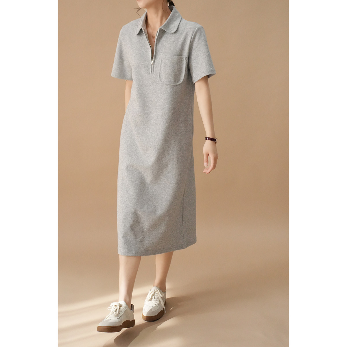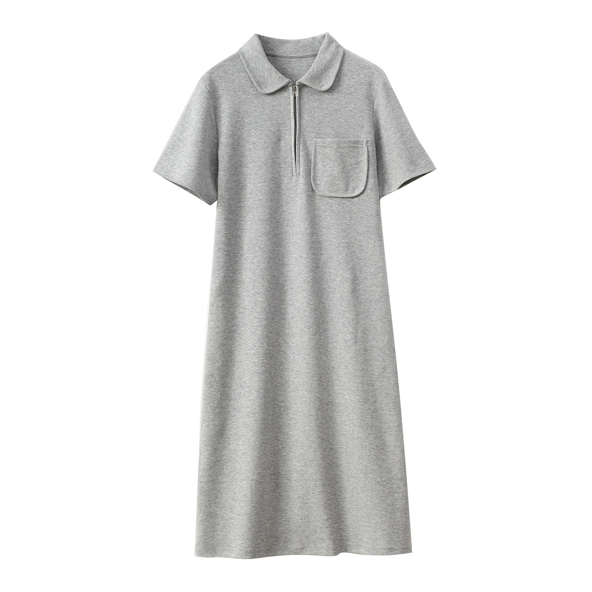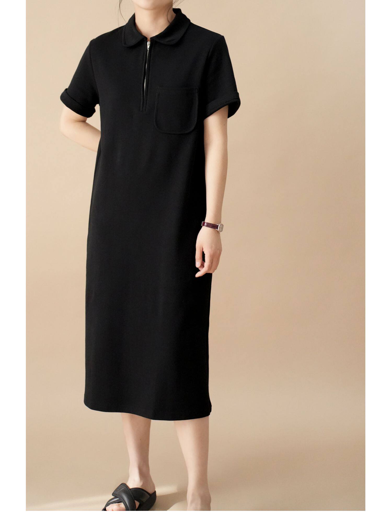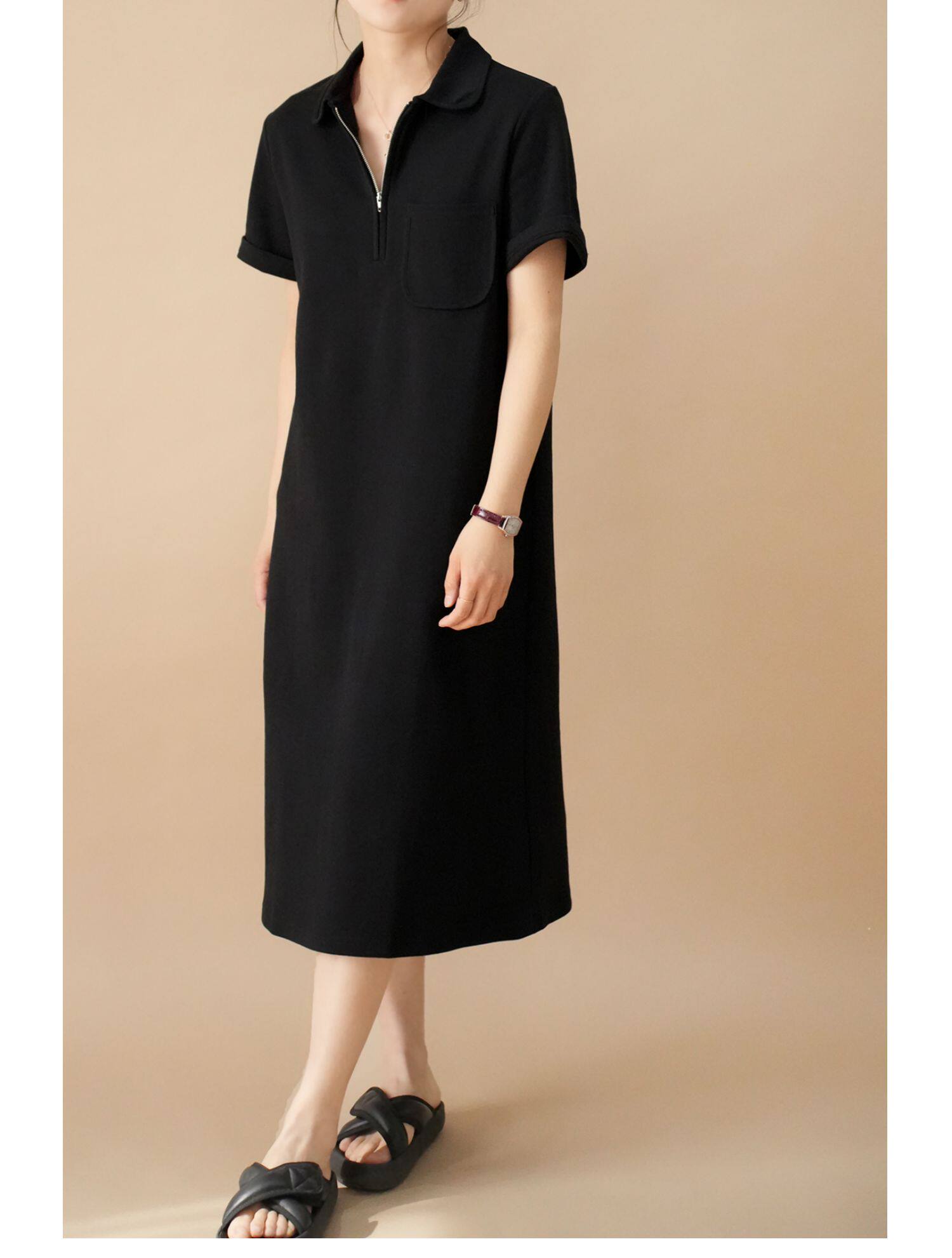 Толстовка, однотонное длинное летнее платье для отдыха, воротник поло, короткий рукав, средней длины, городской стиль