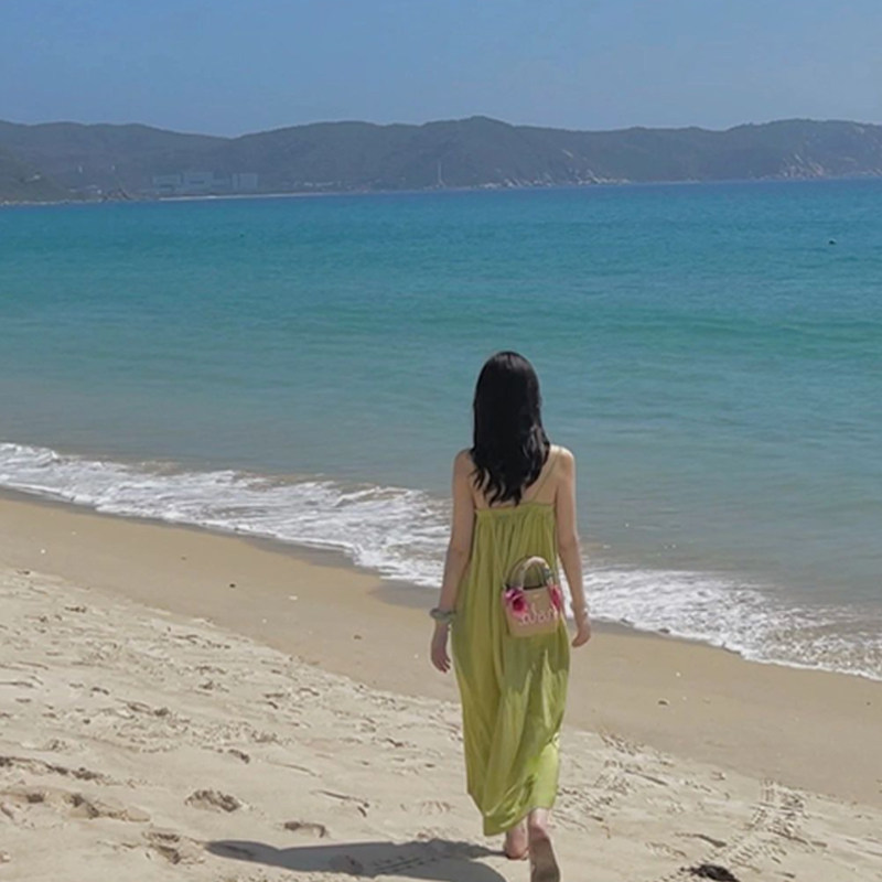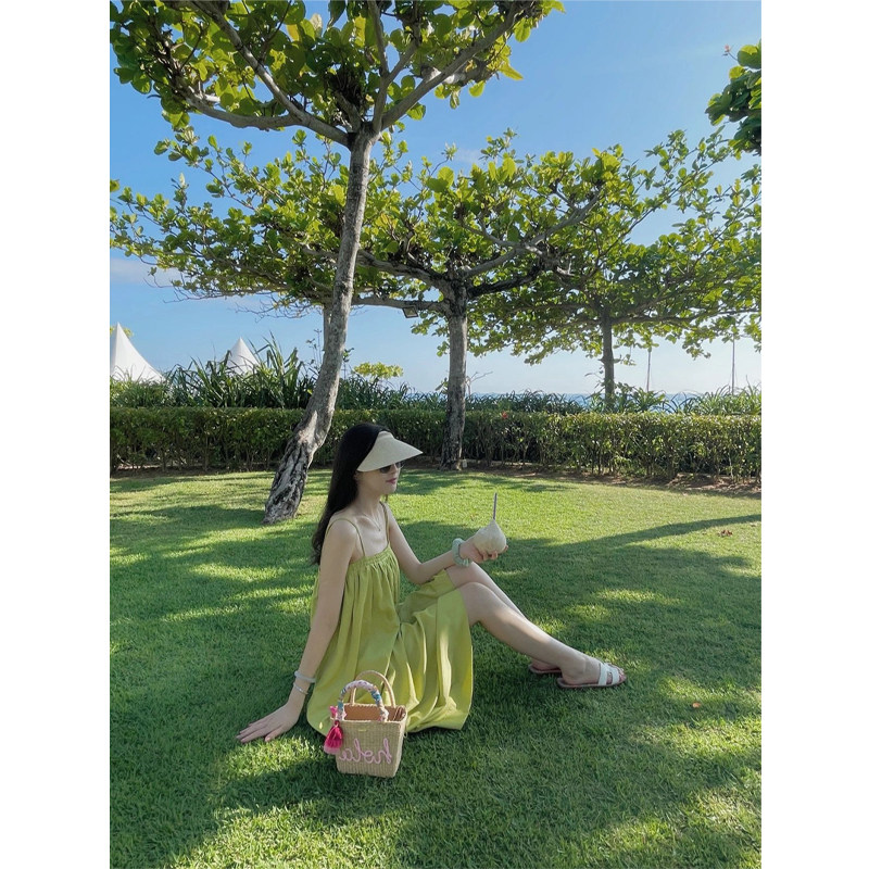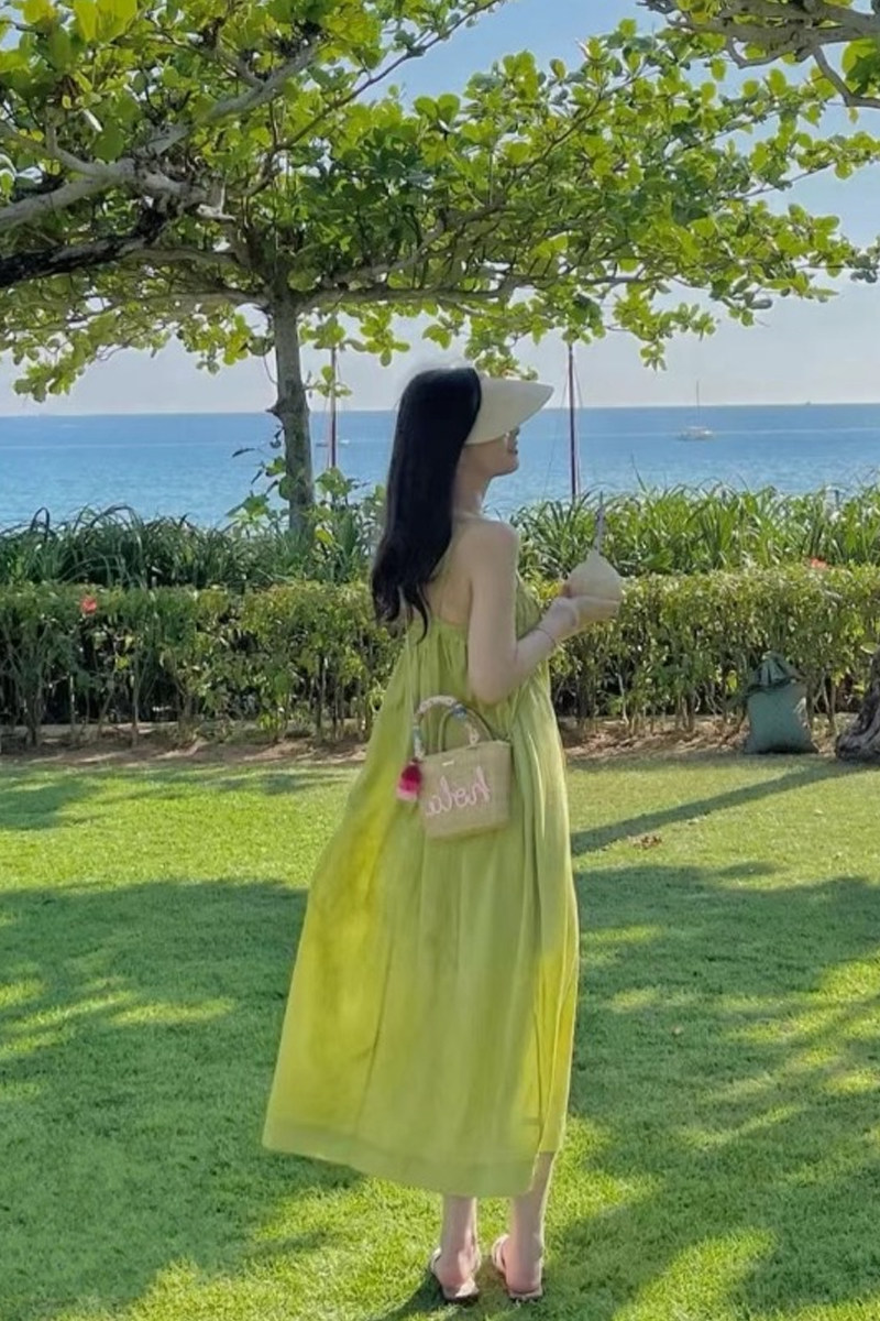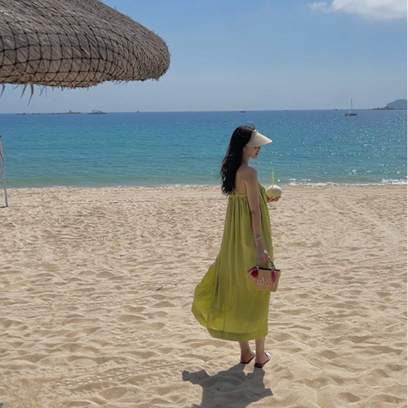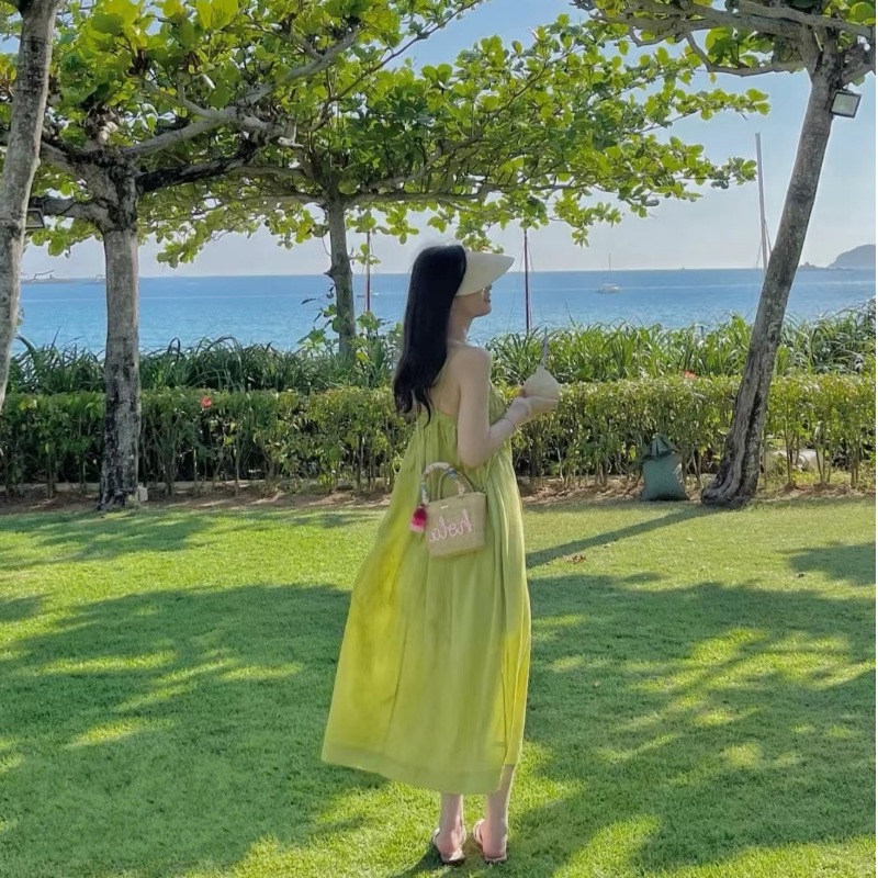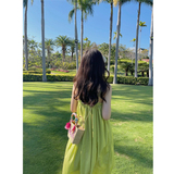 Летнее зеленое платье, длинная юбка, 2024 года, французский стиль, изысканный стиль, длина макси