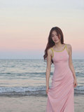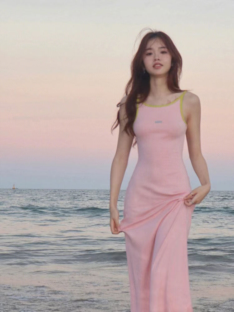 Дизайнерская розовая небольшая длинная юбка для путешествий, пляжное платье, эффект подтяжки, с открытой спиной