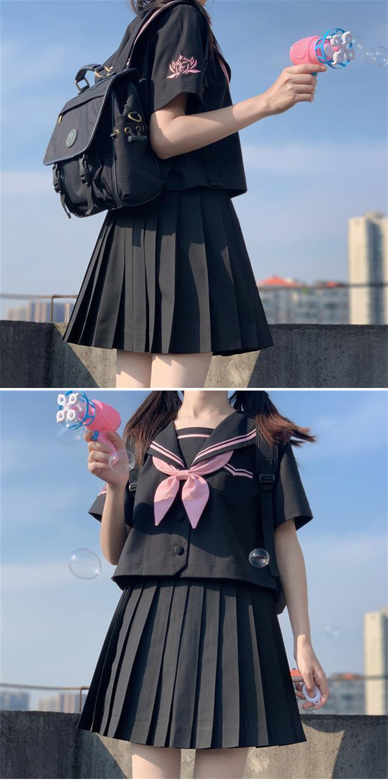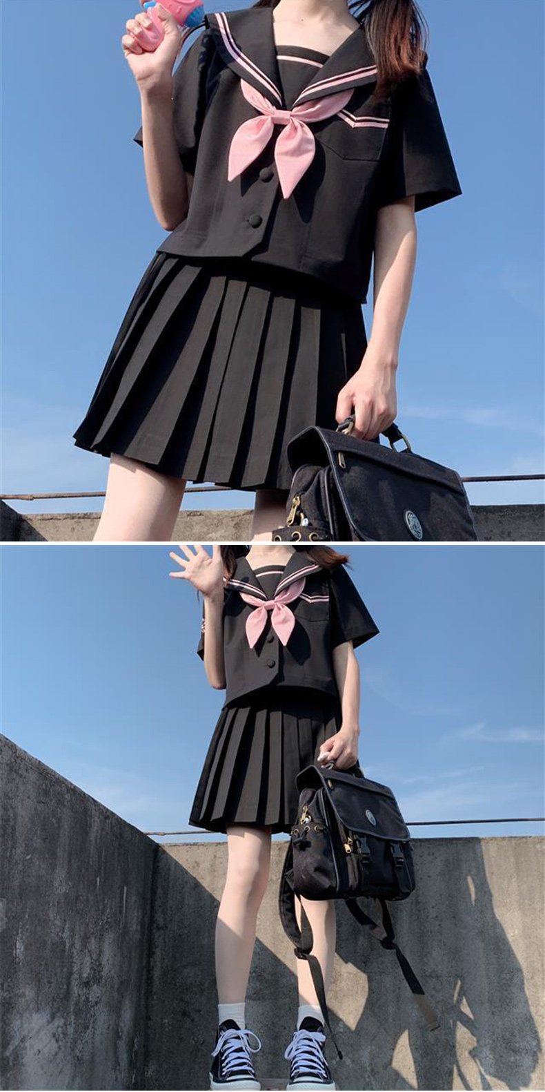 | Цвет: | Черная юбка в складку, Военно-морская рубашка, Военно-морская рубашка, шейный платок, Военно-морская рубашка, шейный платок, черная мини-юбка |