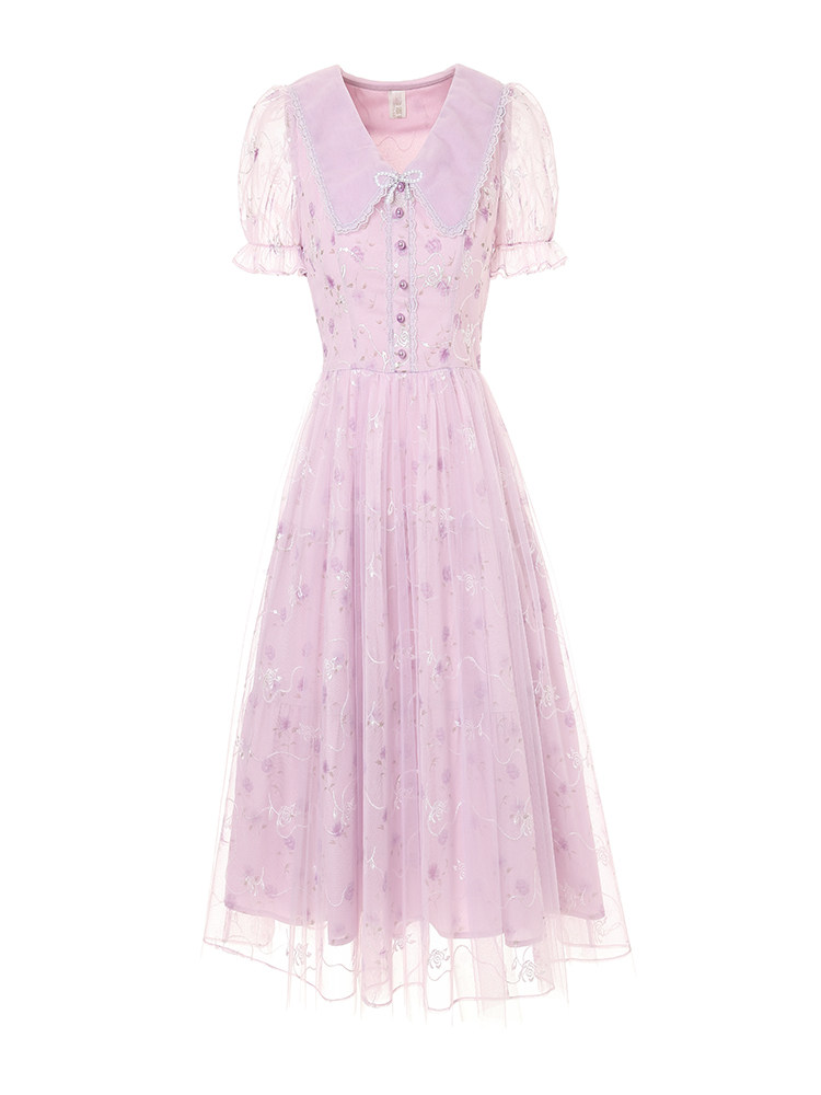 Летний милый наряд маленькой принцессы, кукла, длинное платье, кукольный воротник, короткий рукав, с рукавом, в цветочек