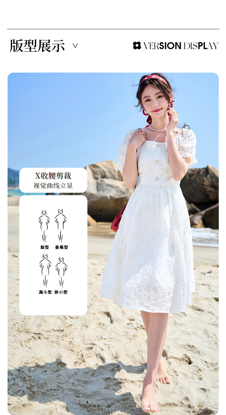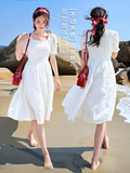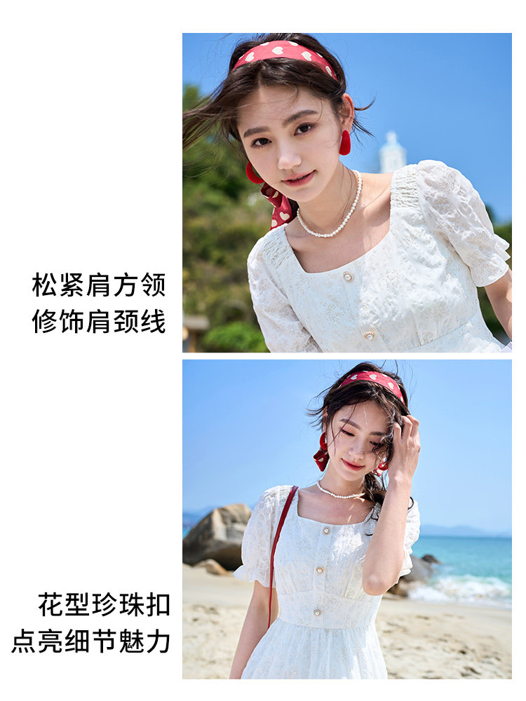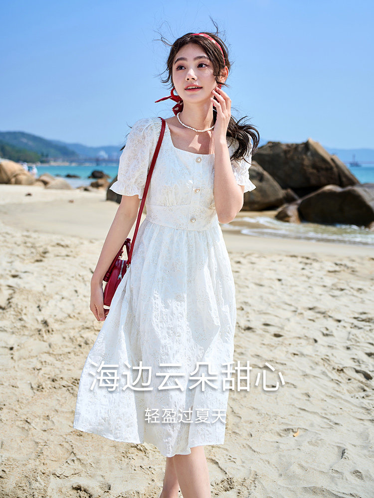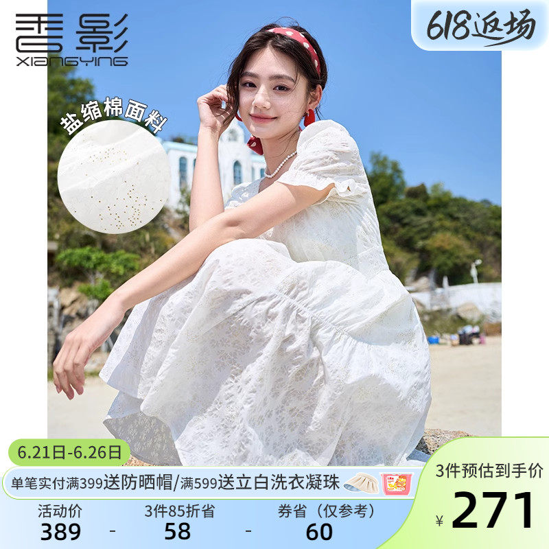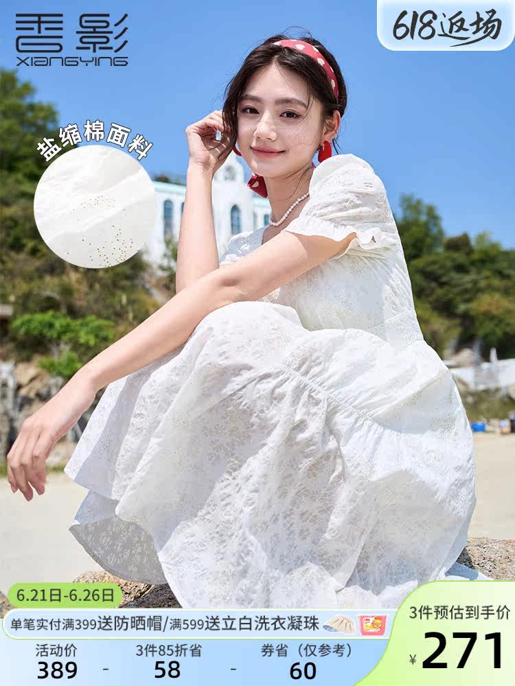 香影 Белое летнее платье, летняя одежда, юбка, квадратный вырез, высокая талия, изысканный стиль, французский стиль