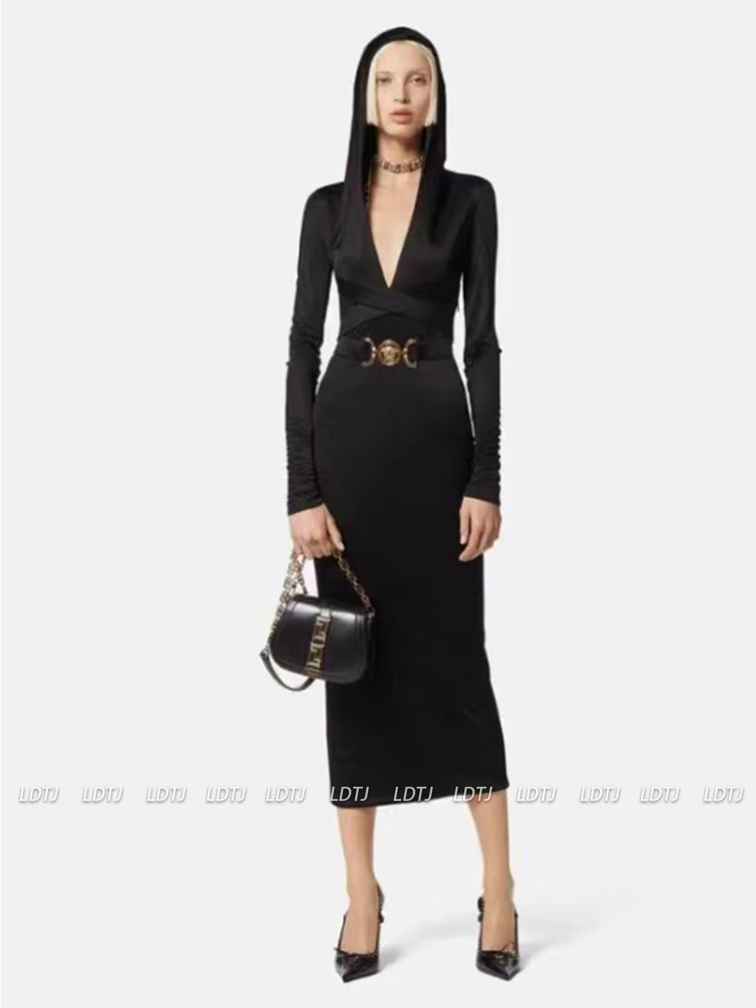 Модный демисезонный приталенный корсет с капюшоном, приталенное платье, V-образный вырез, по фигуре