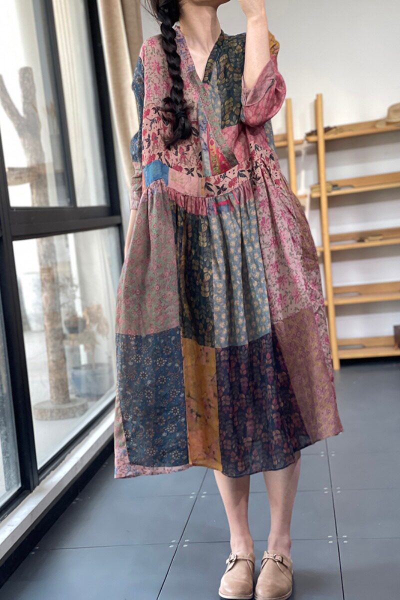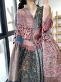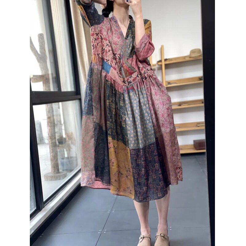 Летнее платье, ретро длинная юбка, большой размер, яркий броский стиль, цветочный принт, из хлопка и льна