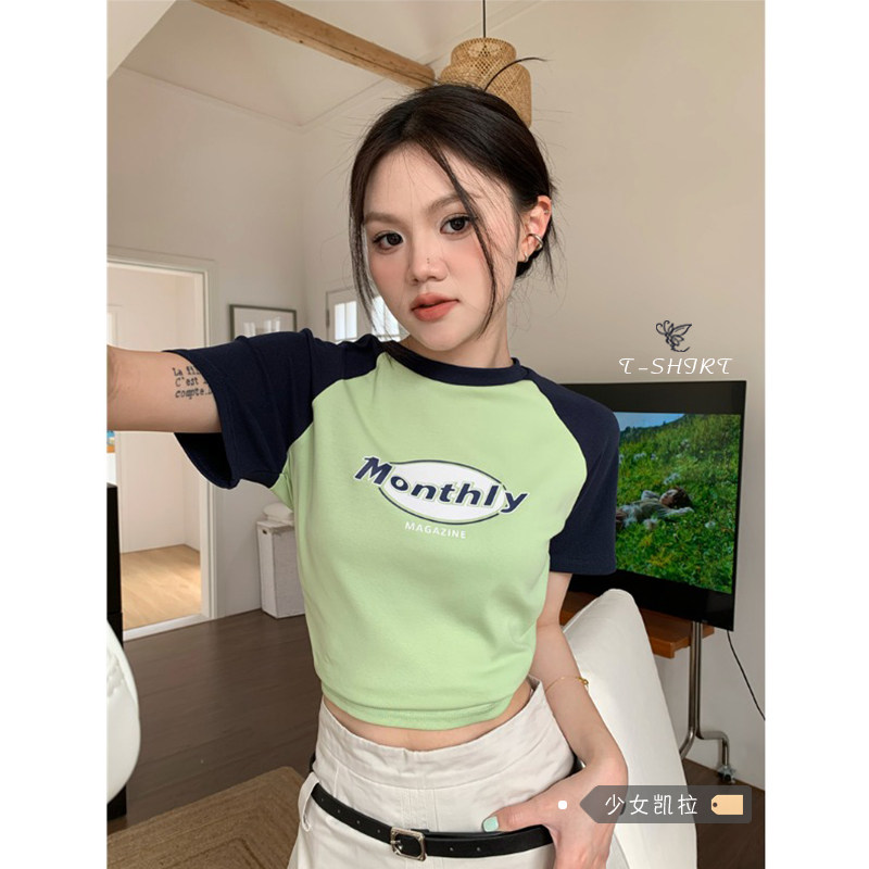 Летняя короткая приталенная футболка, в американском стиле, короткий рукав