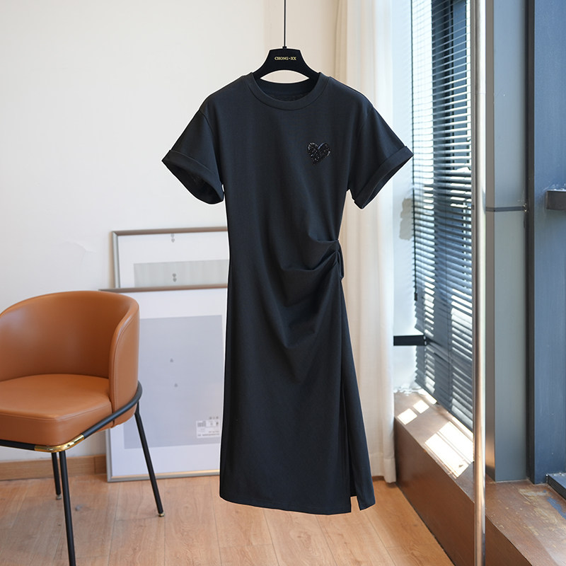 Приталенный корсет, платье-футболка, мини-юбка, длинное летнее платье, короткий рукав, с рукавом
