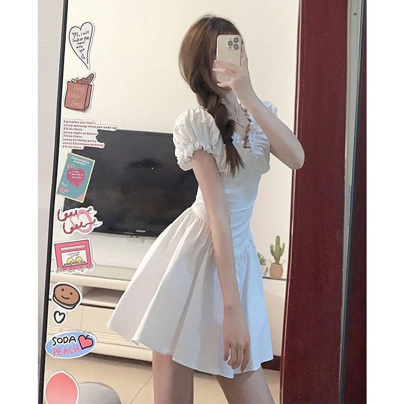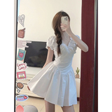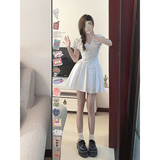 Белое летнее платье, юбка, сексуальный корсет, мини-юбка, V-образный вырез, коллекция 2023