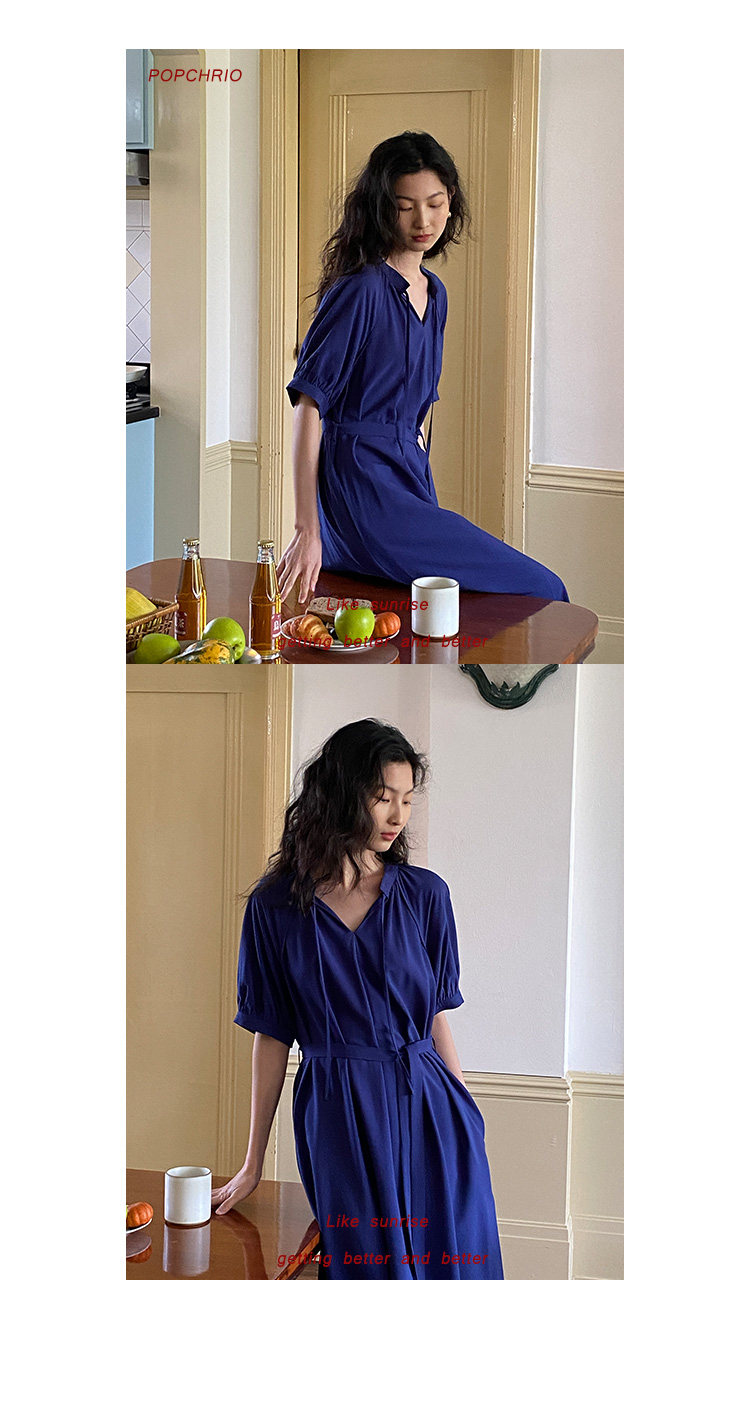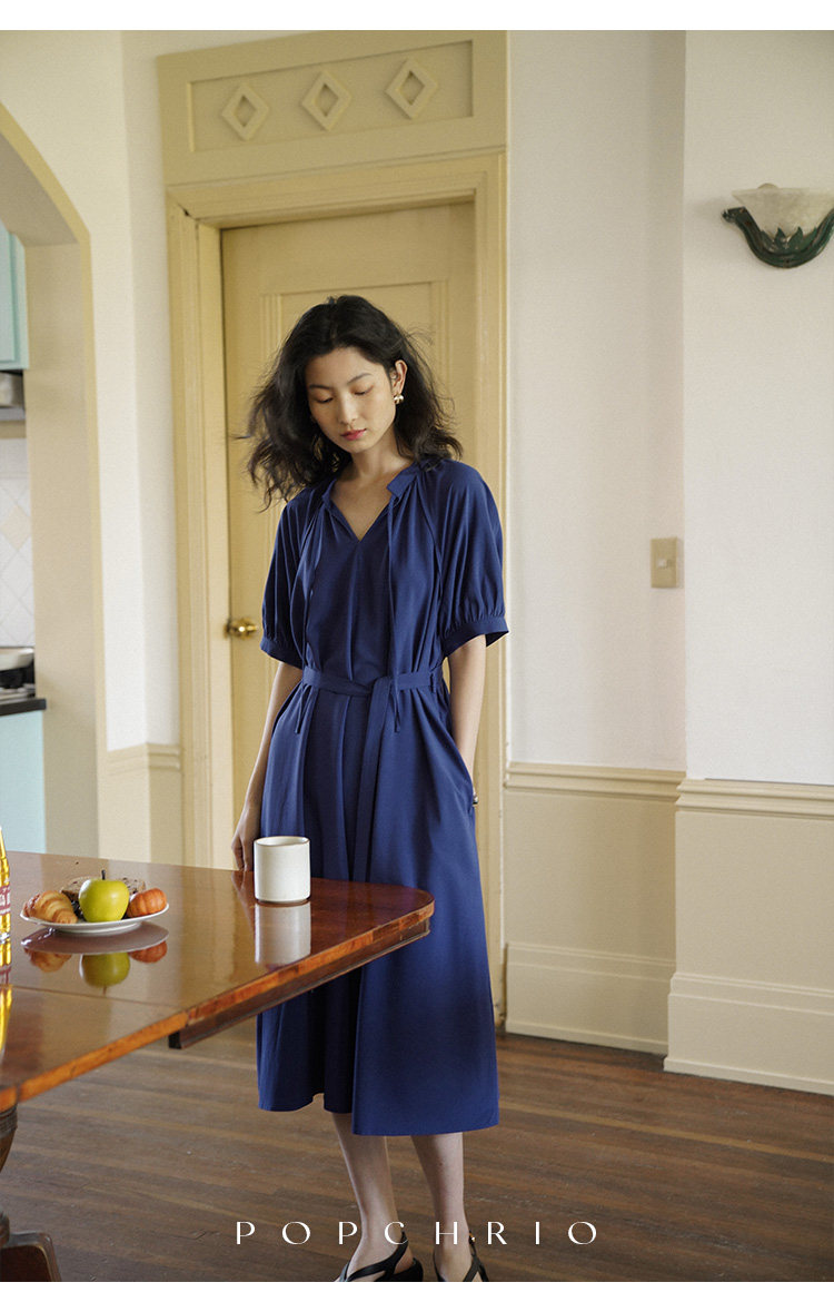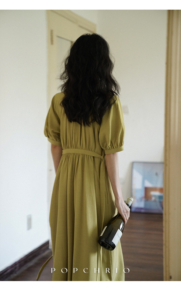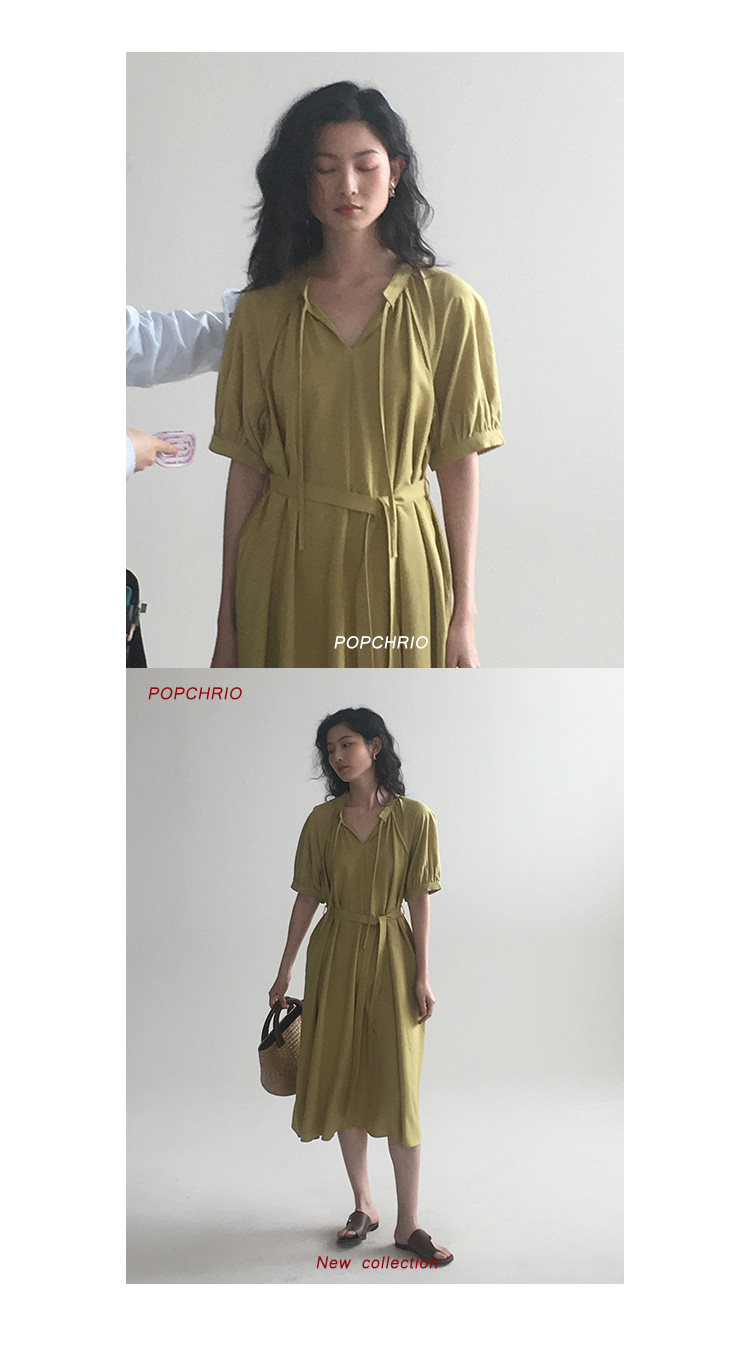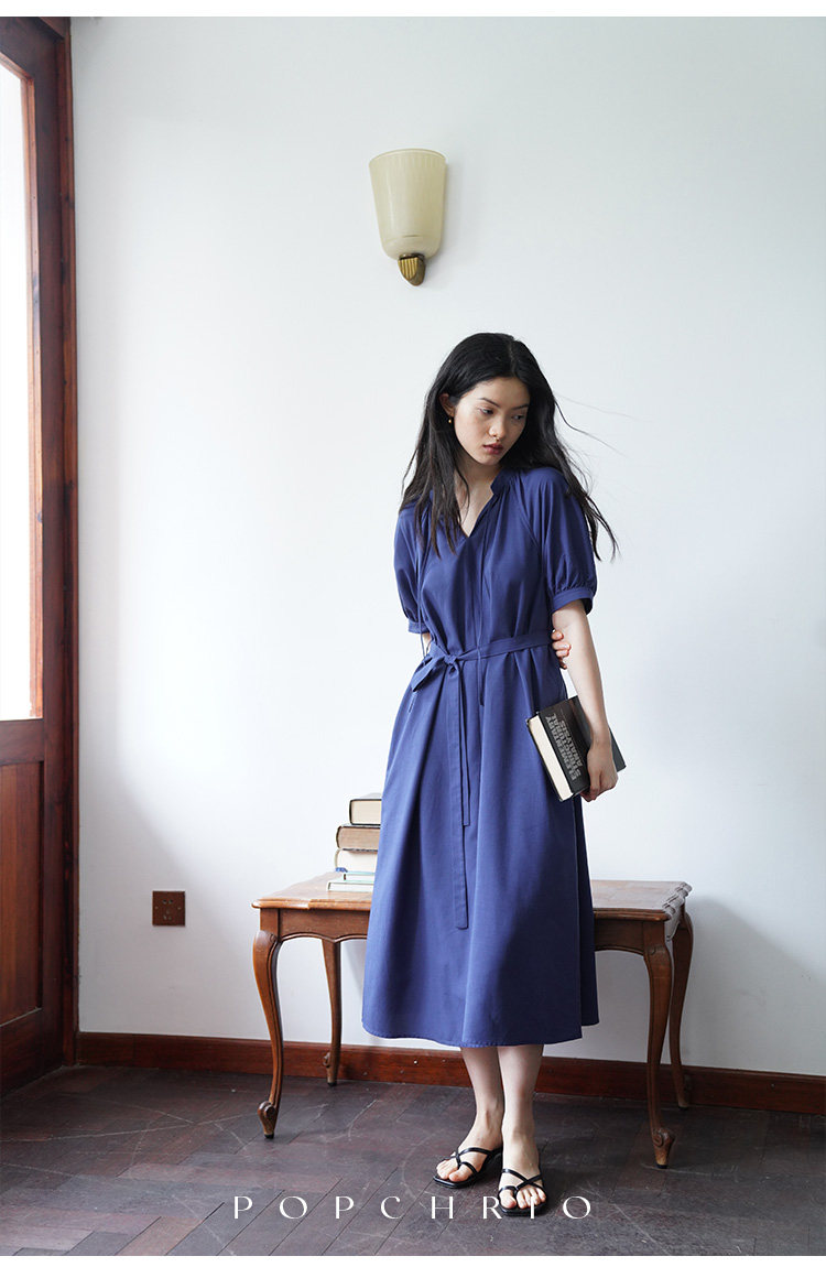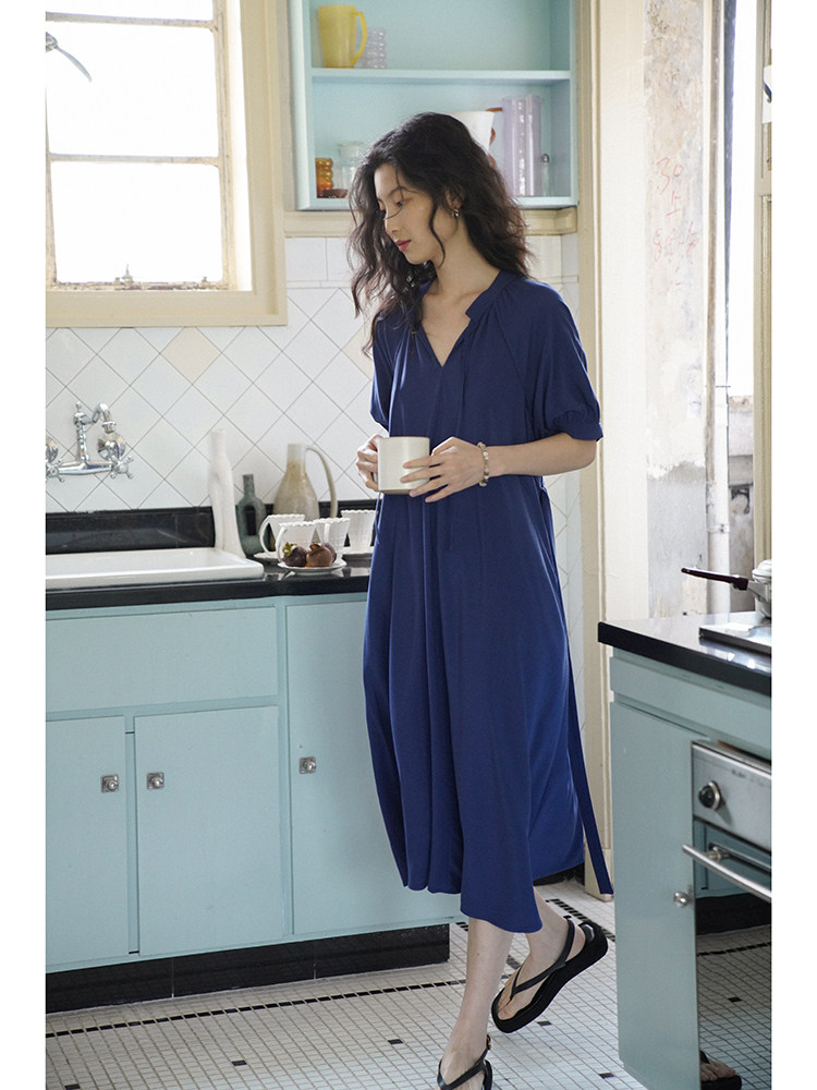 [Получить 299 юаней] Платье с короткими рукавами и французским воротником-стойкой из смеси тенселя и льна, ленивая свободная длинная юбка
