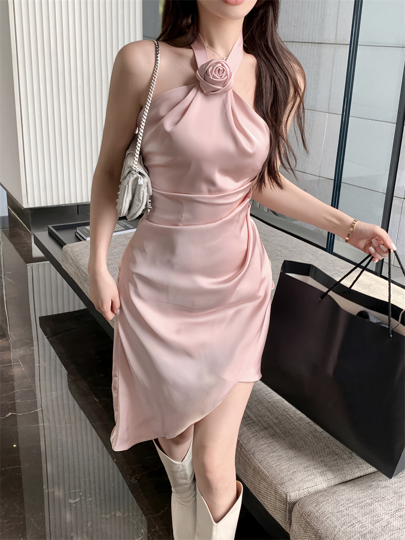 Розовое платье, юбка, сексуальный топ без лямок, подходит для подростков, с акцентом на бедрах
