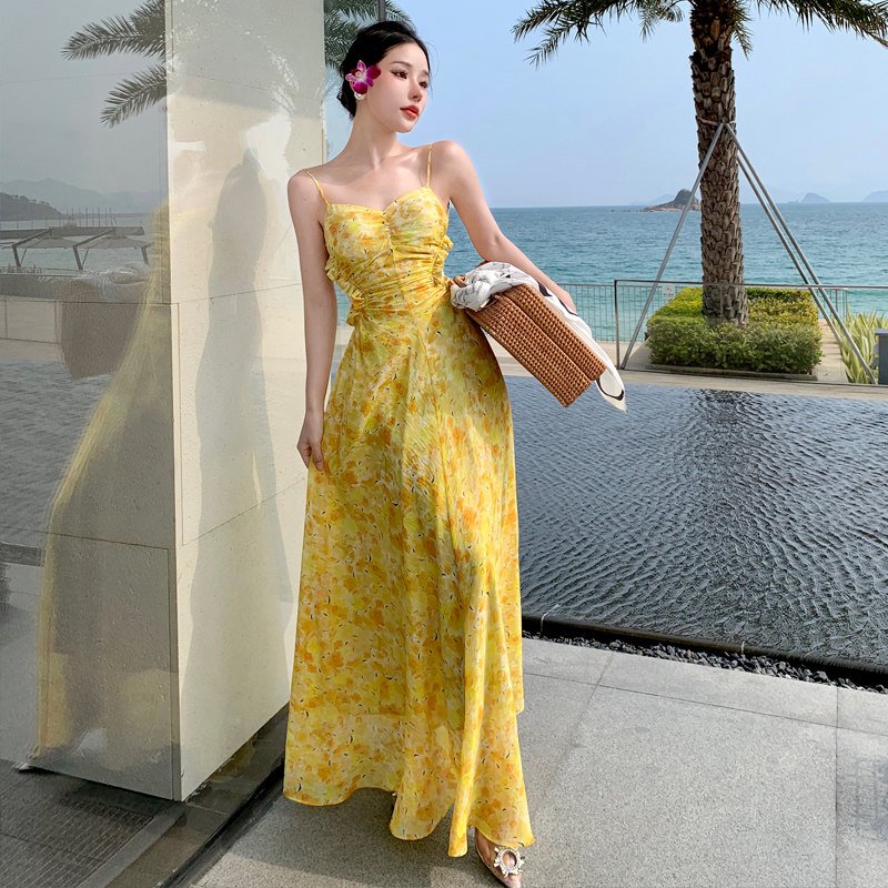Дизайнерское оригинальное лимонное весеннее платье, длинная юбка, французский стиль
