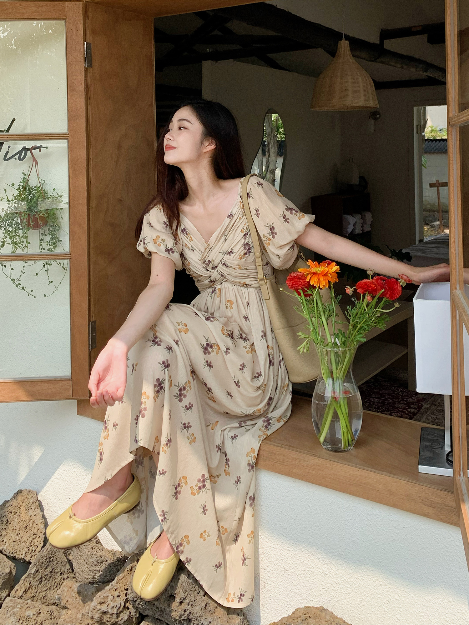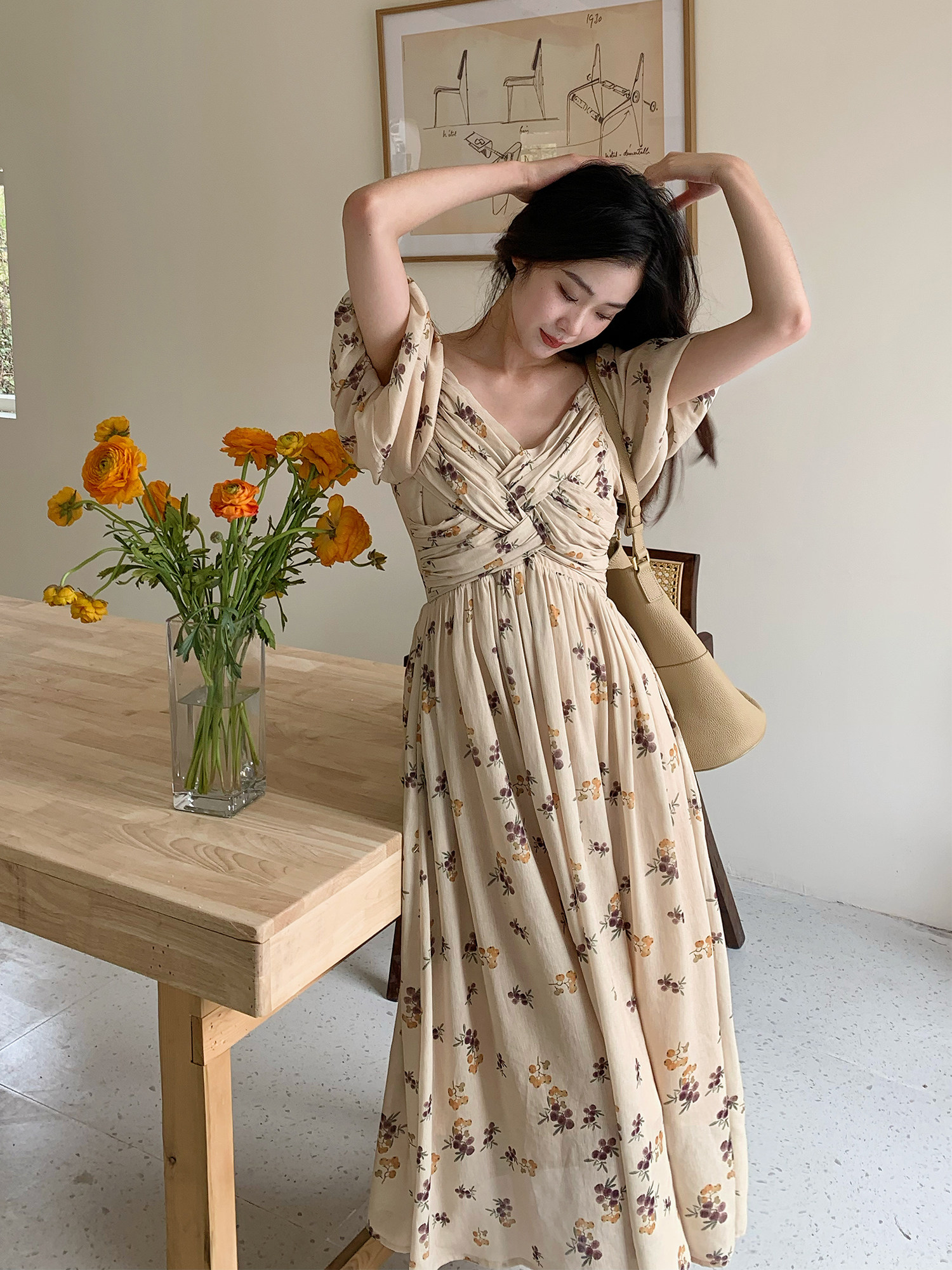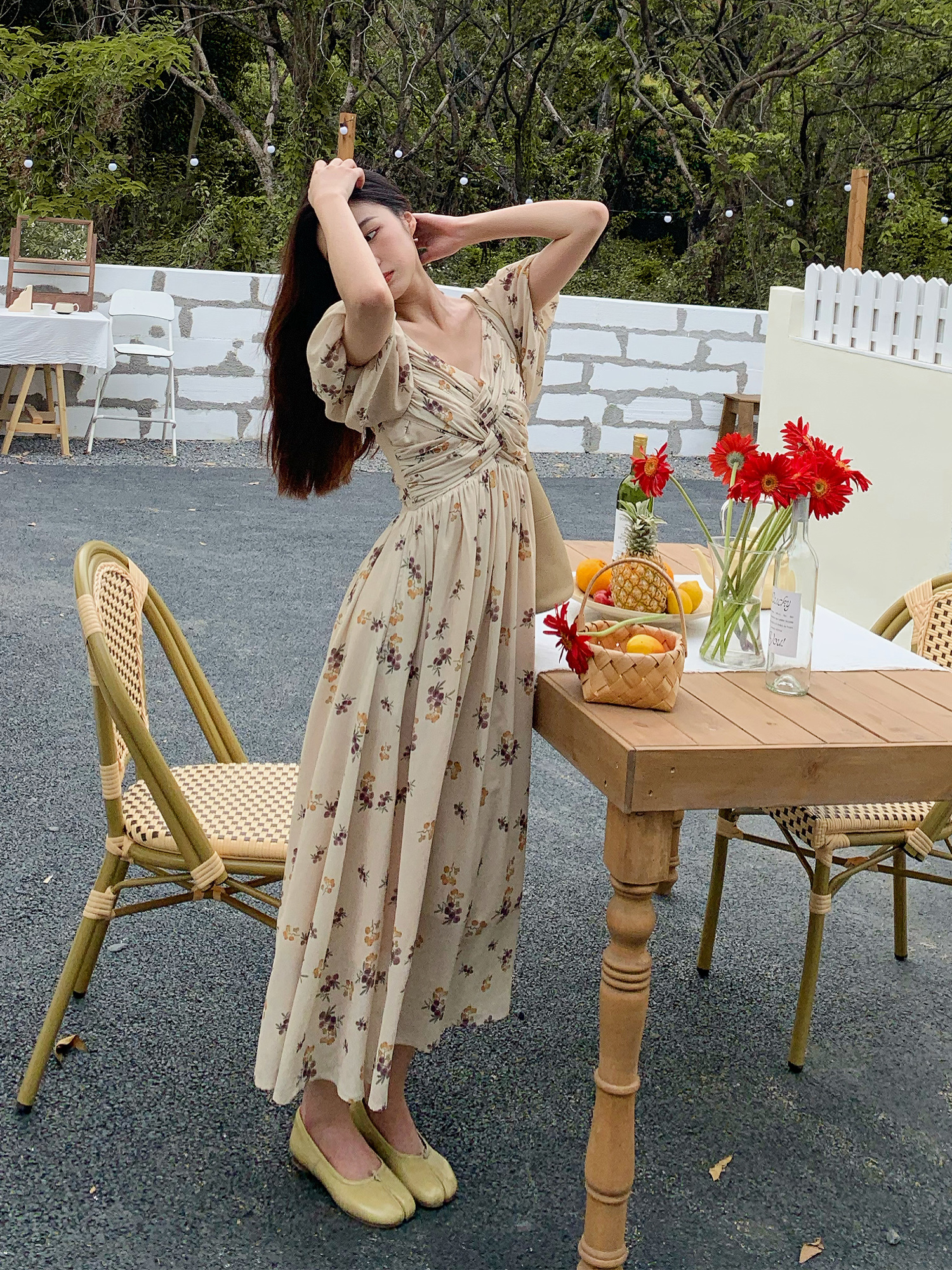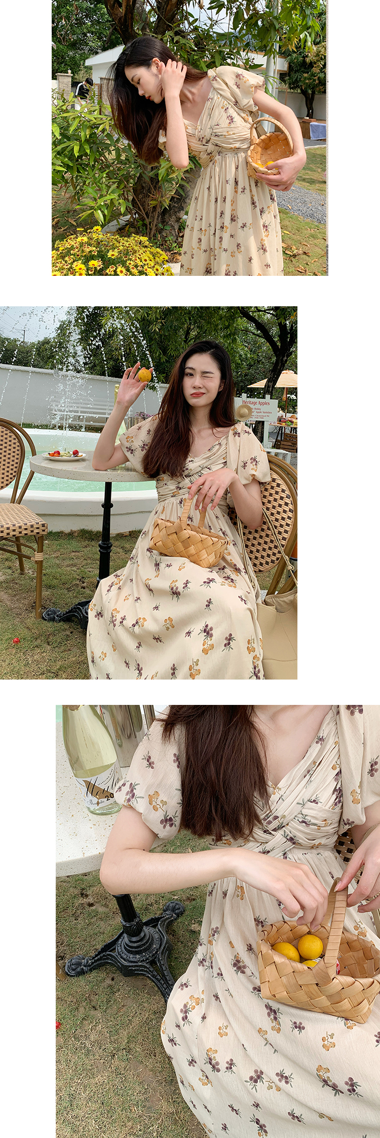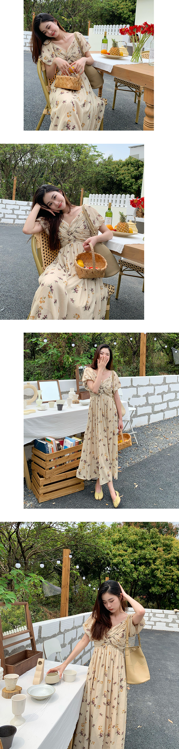 Дизайнерское ретро летнее платье, длинная юбка, французский стиль, городской стиль, в корейском стиле, цветочный принт