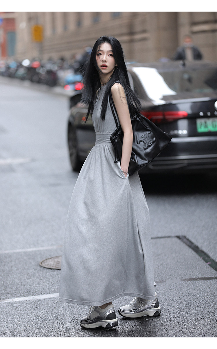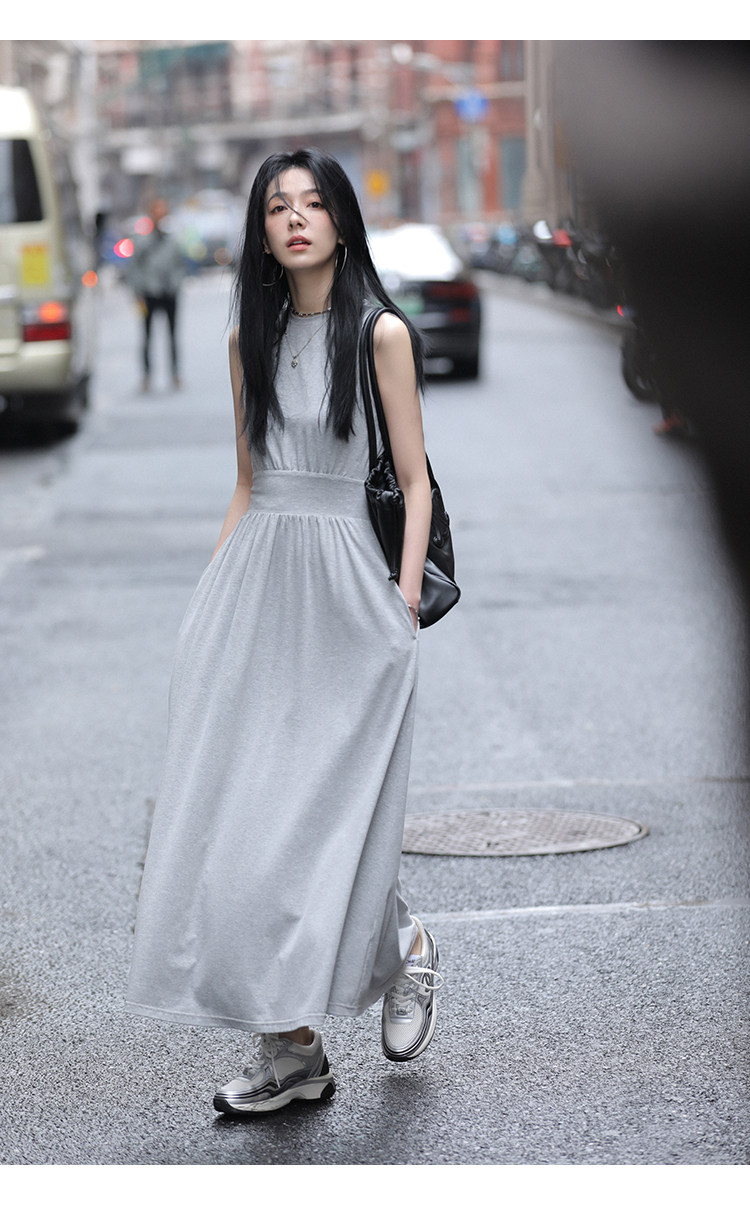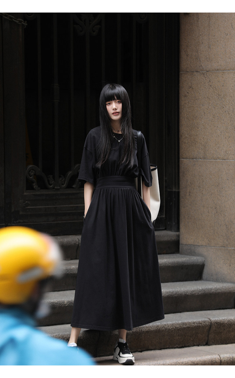 Комфортная корейская черная цветная длинная юбка без рукавов