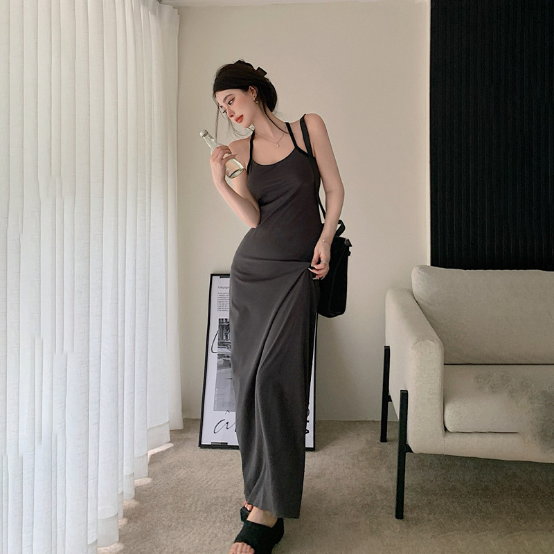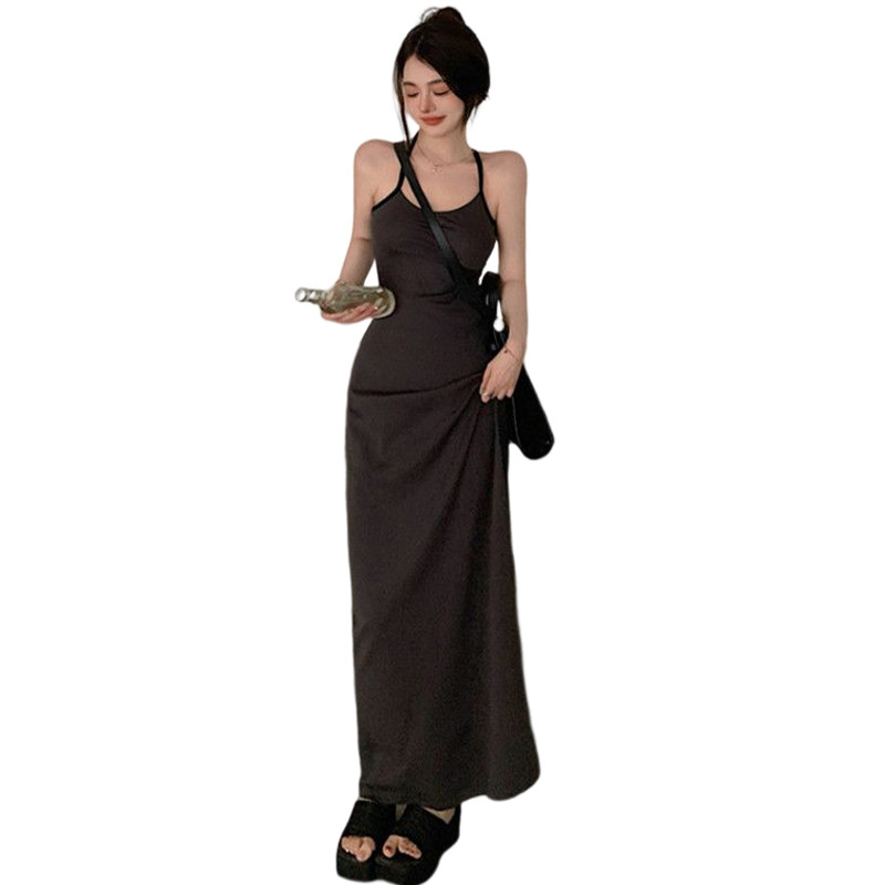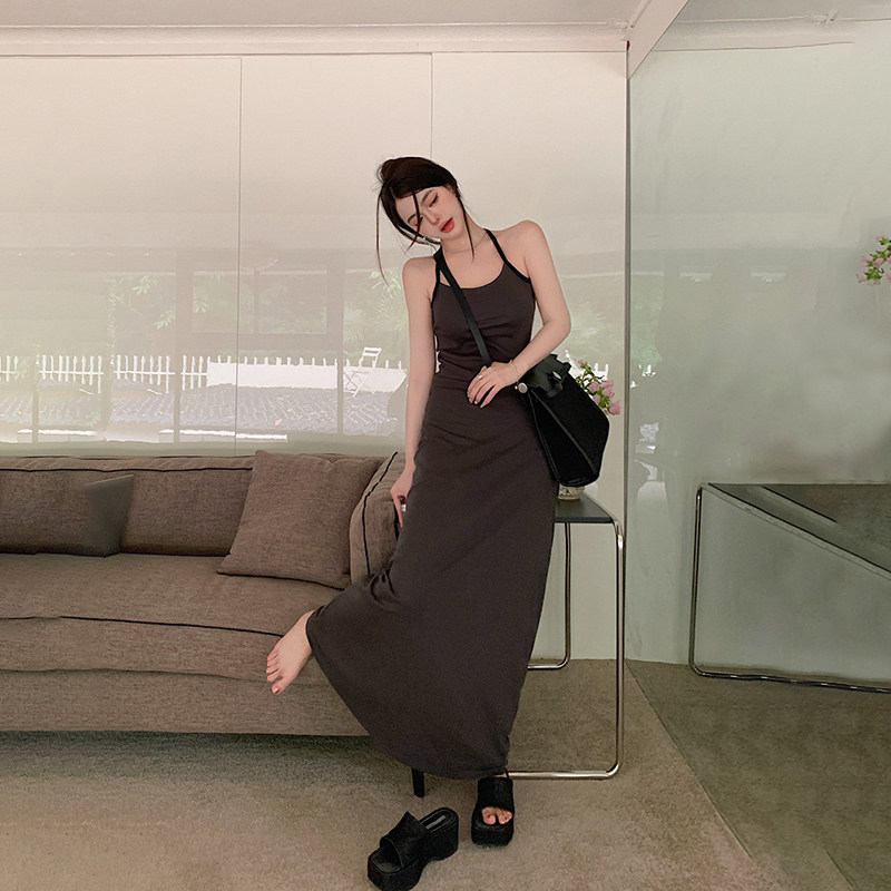 Длинная юбка, трикотажное летнее платье, с акцентом на бедрах, в обтяжку, облегающий крой, французский стиль