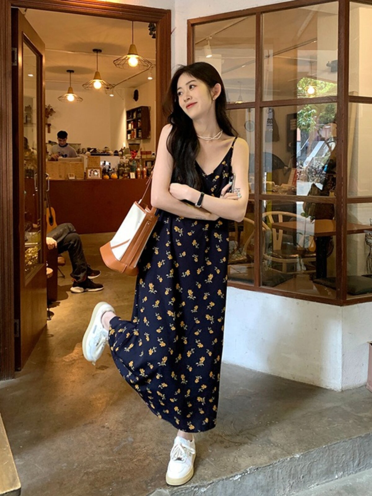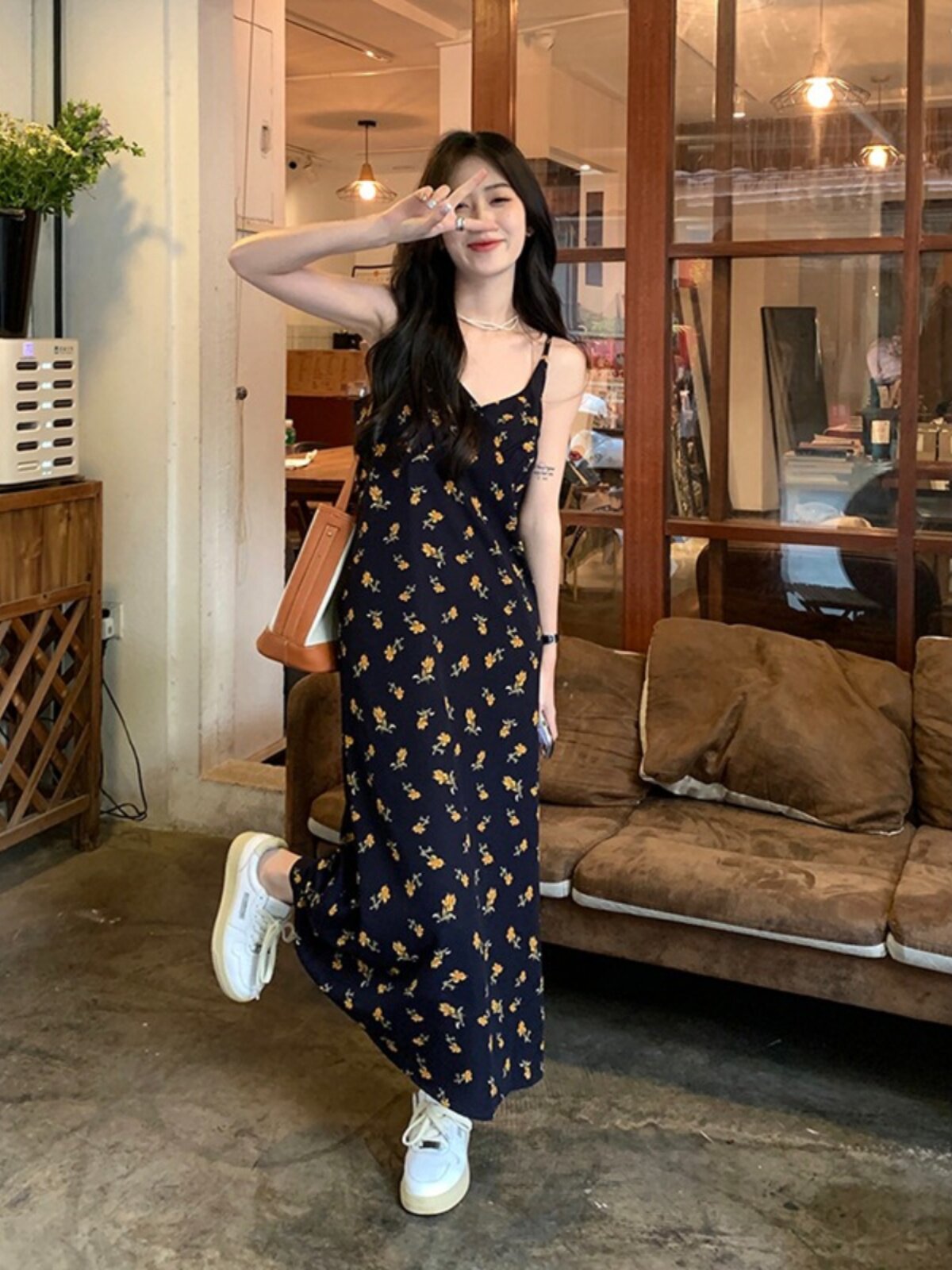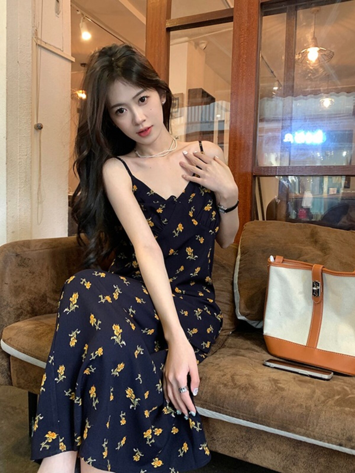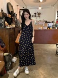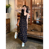 Черное летнее платье, пляжная длинная юбка, французский стиль, цветочный принт, подходит для подростков, V-образный вырез