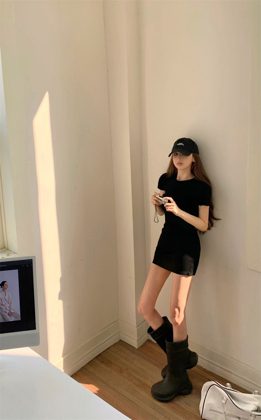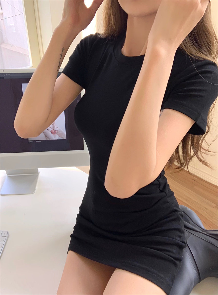 Ретро футболка с коротким рукавом, платье, мини-юбка, корсет, сексуальная юбка, в американском стиле, в обтяжку, по фигуре, с акцентом на бедрах