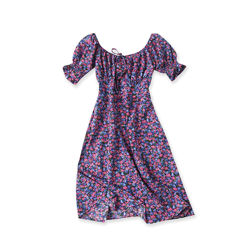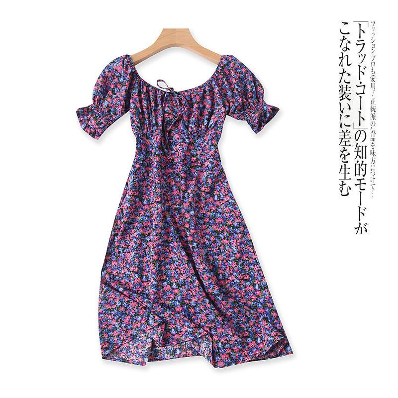 (Трансграничная торговля), летнее платье, приталенная шифоновая юбка, открытые плечи, высокая талия
