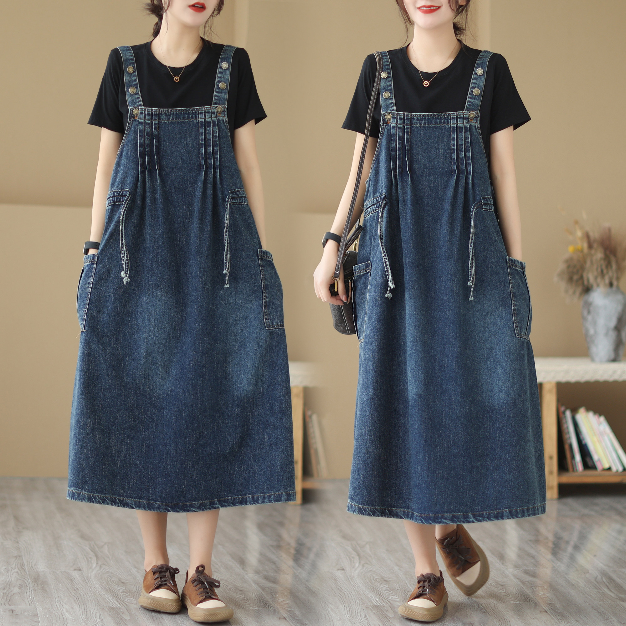 Джинсовый сарафан, летняя юбка, универсальное платье, 2024 года, оверсайз, в корейском стиле, по фигуре