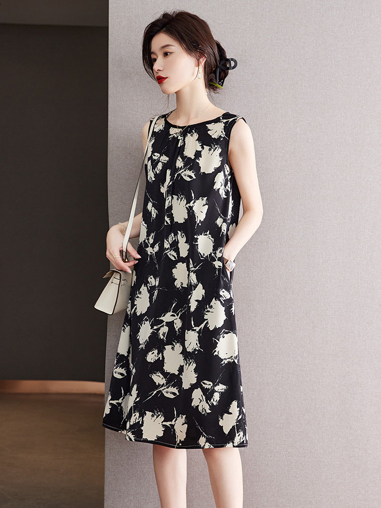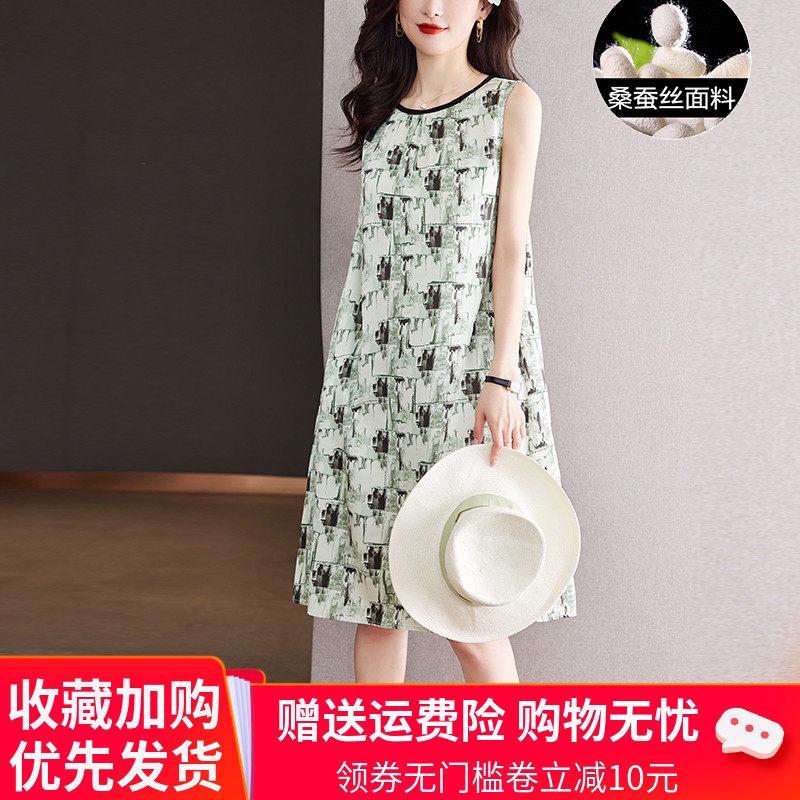 Шелковая летняя юбка, шелковое платье без рукавов без рукавов, свободный крой, длина миди