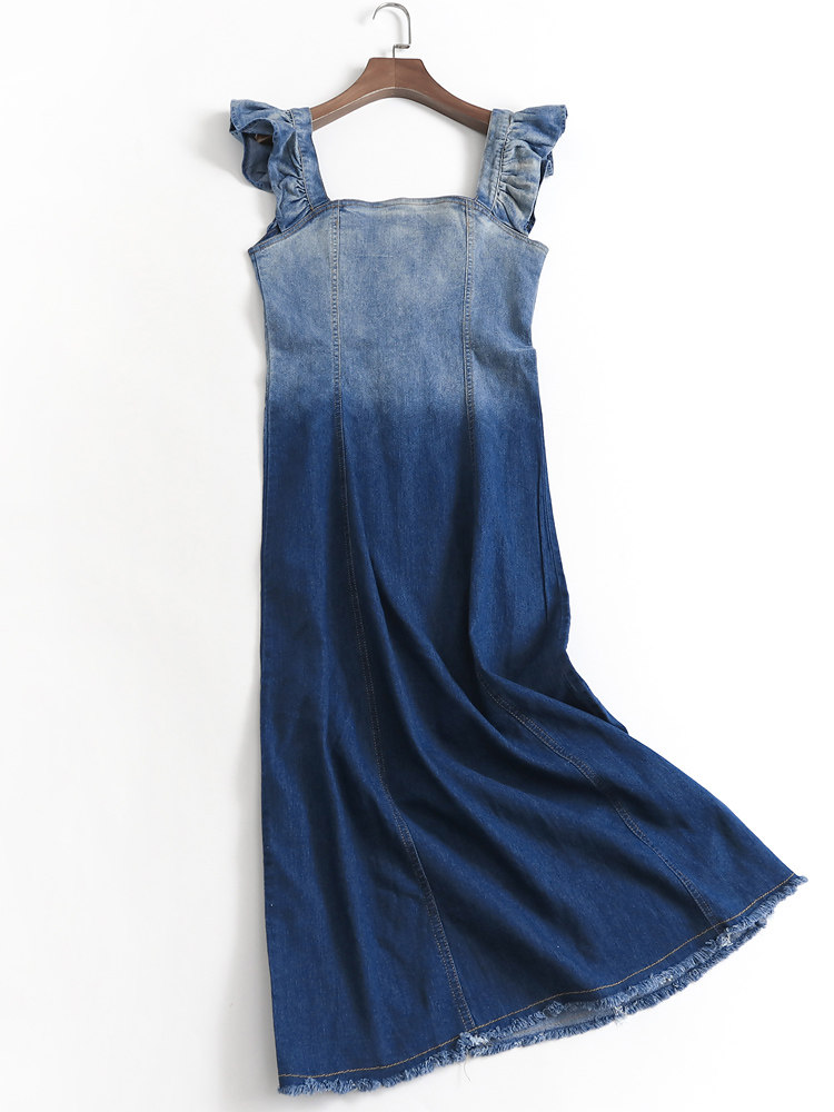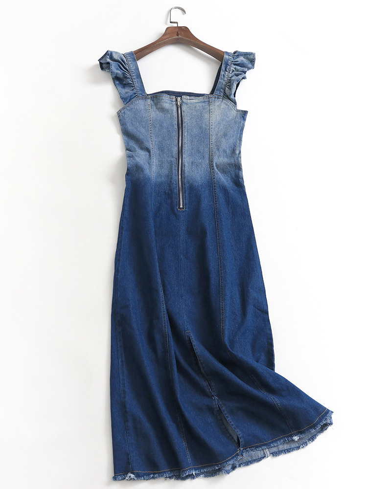 Летнее платье без рукавов без рукавов, юбка, джинсовое платье, градиент, по фигуре, облегающий крой, квадратный вырез, 2023