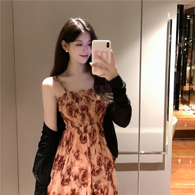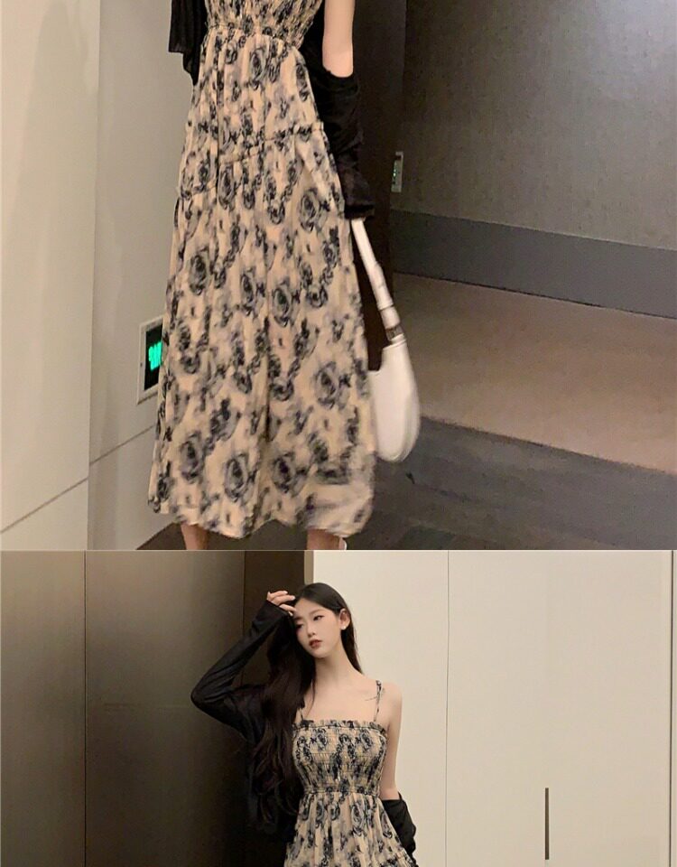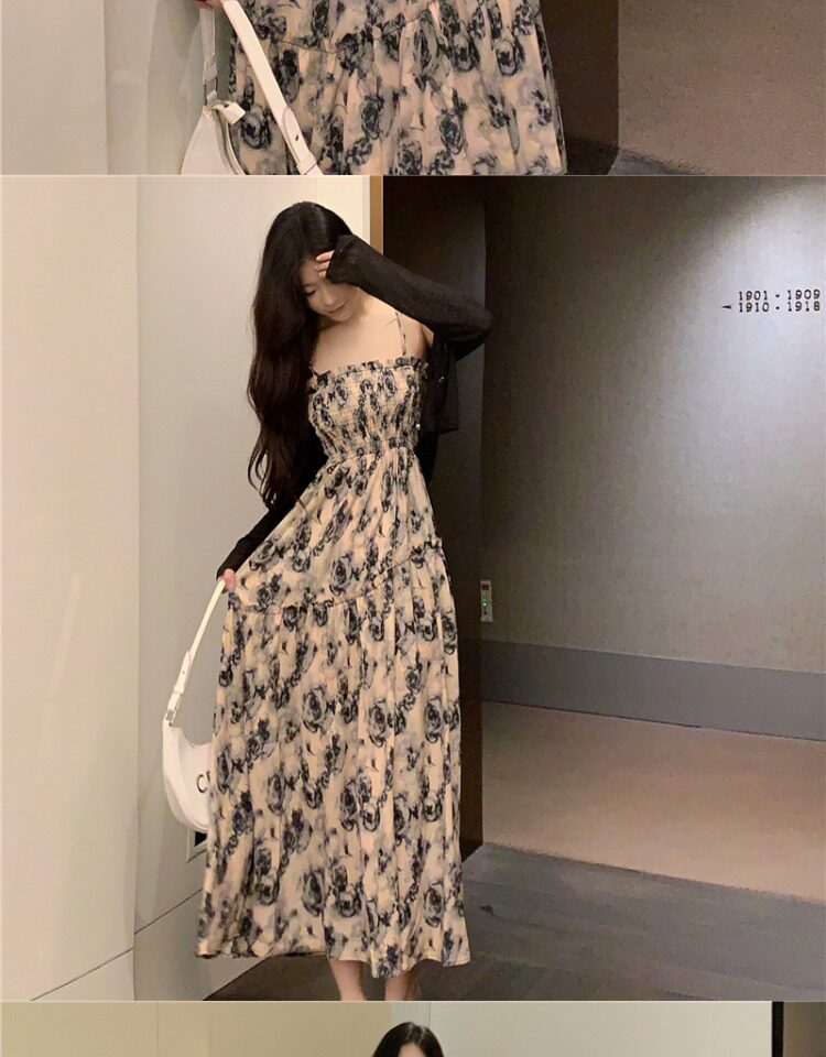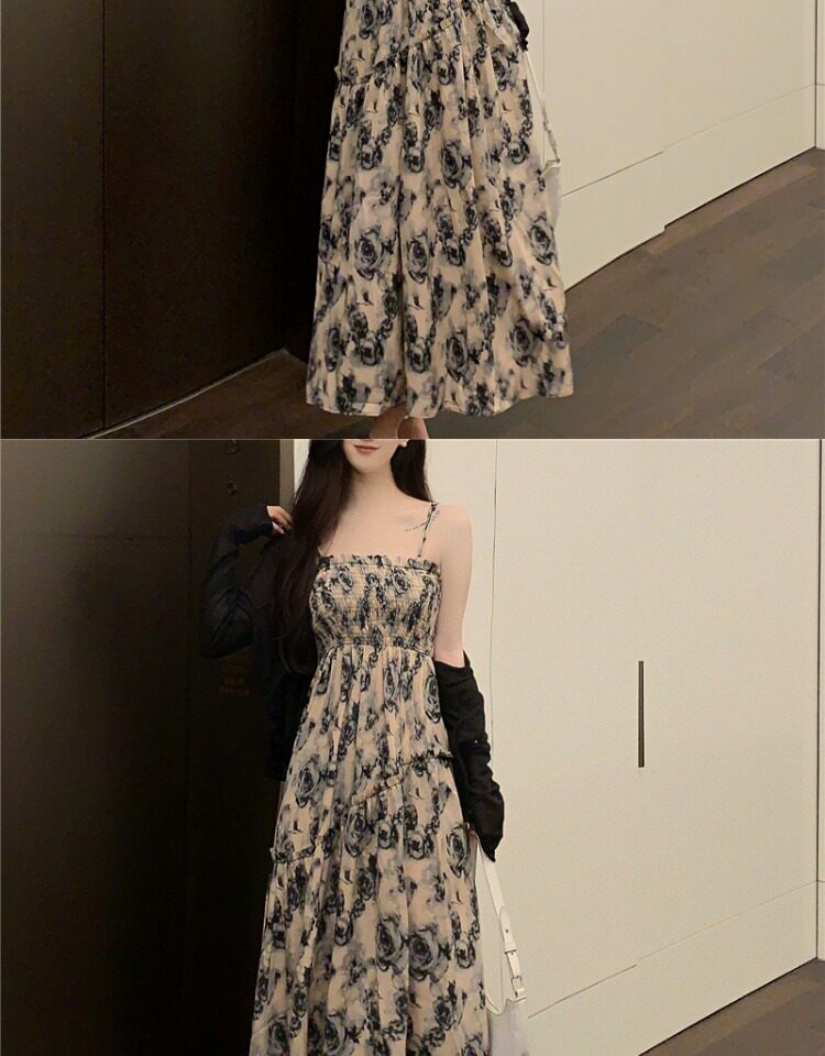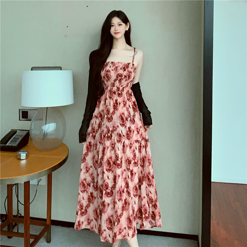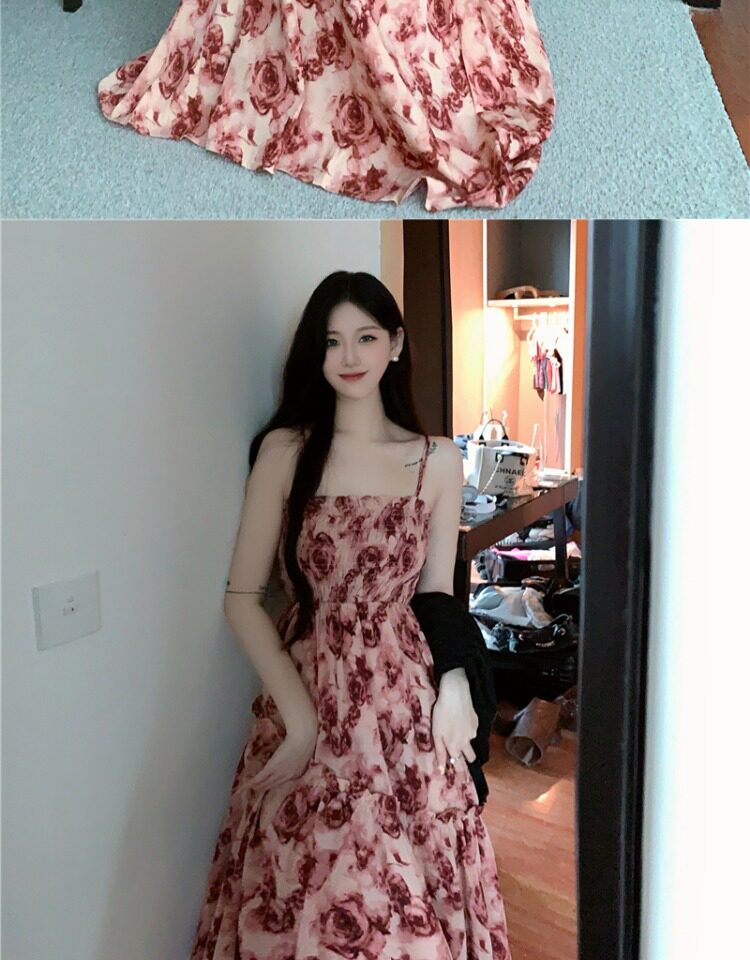 Платье, летняя длинная юбка, большой размер, французский стиль, цветочный принт