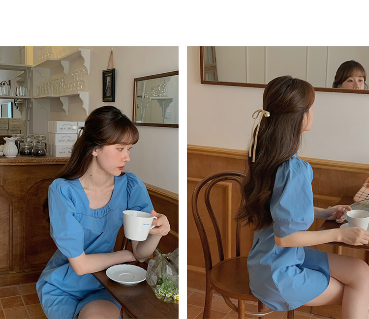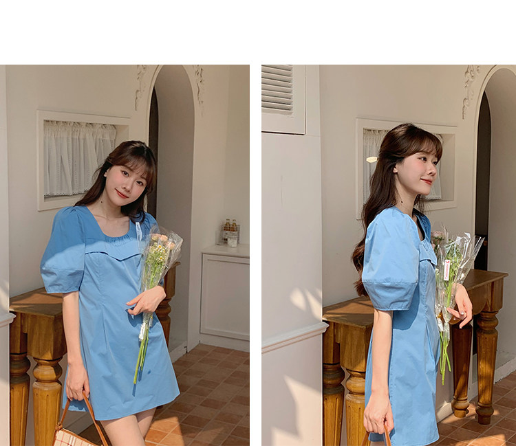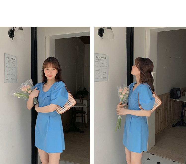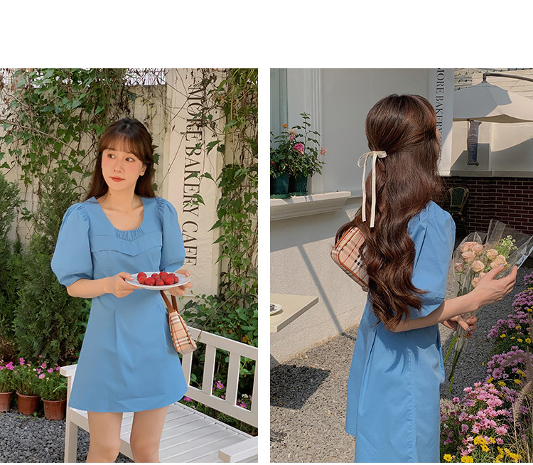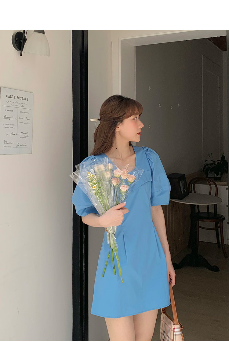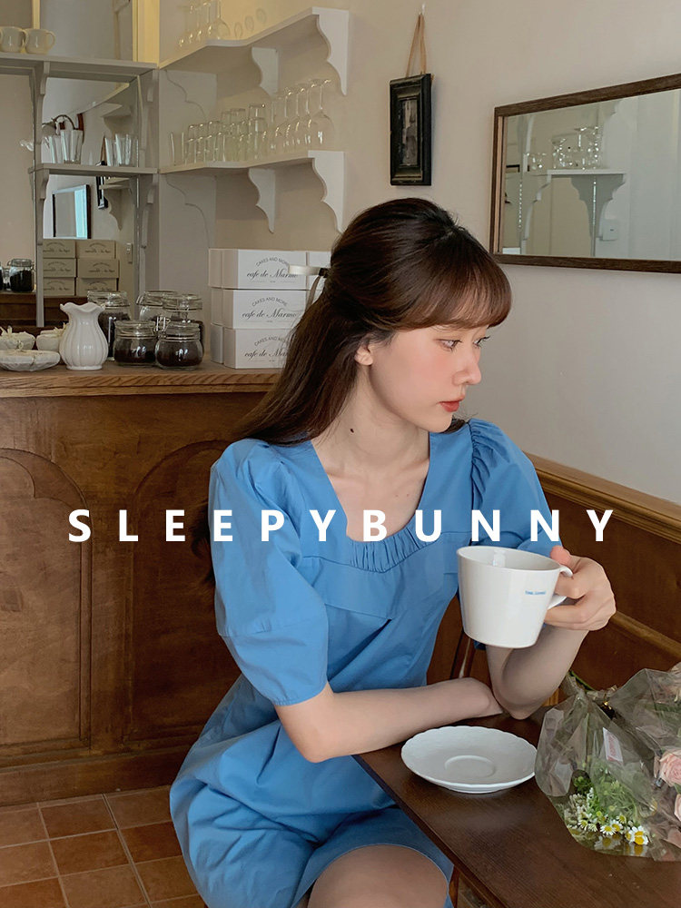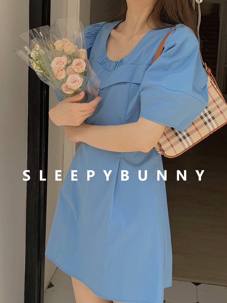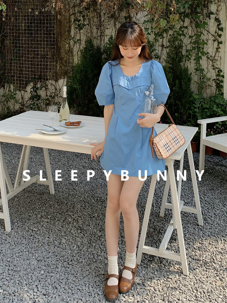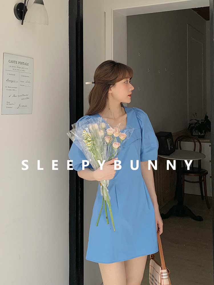 瞌睡兔 Синий фонарь, летнее платье с рукавами, летняя дизайнерская юбка, мини-юбка, подходит для подростков, высокая талия, тренд сезона, короткий рукав