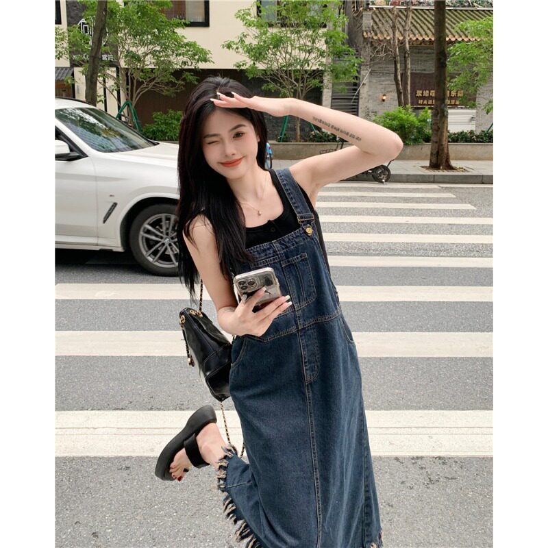 Ретро подтяжки, летняя джинсовая юбка, платье, длинная весенняя длинная юбка для школьников, французский ретро стиль, средней длины