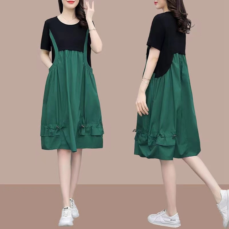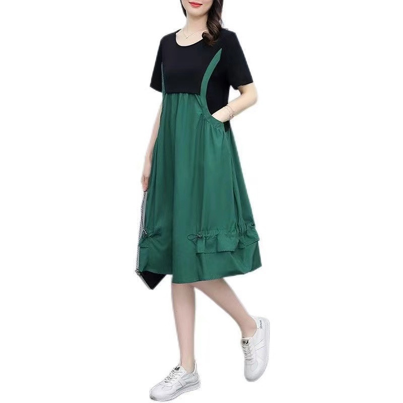 Летний комплект, длинная юбка, эффект подтяжки, подходит для полных девушек, размер, по фигуре, средней длины