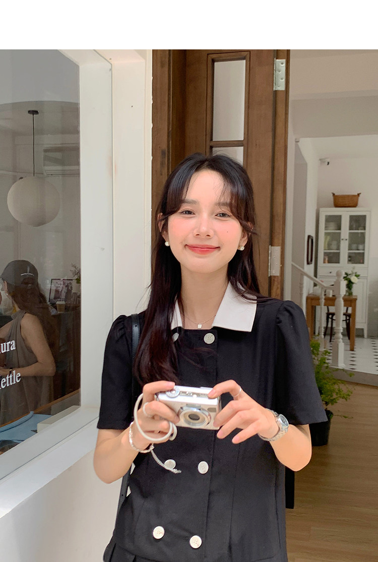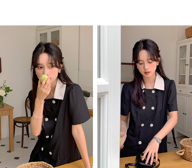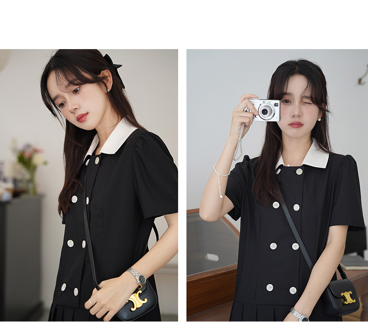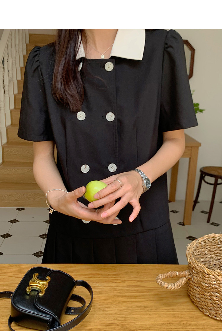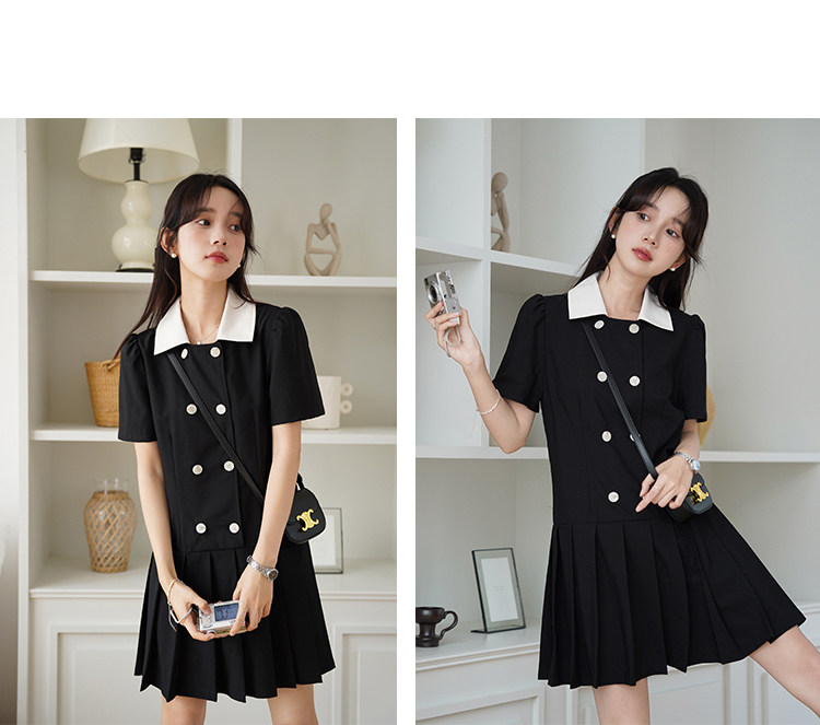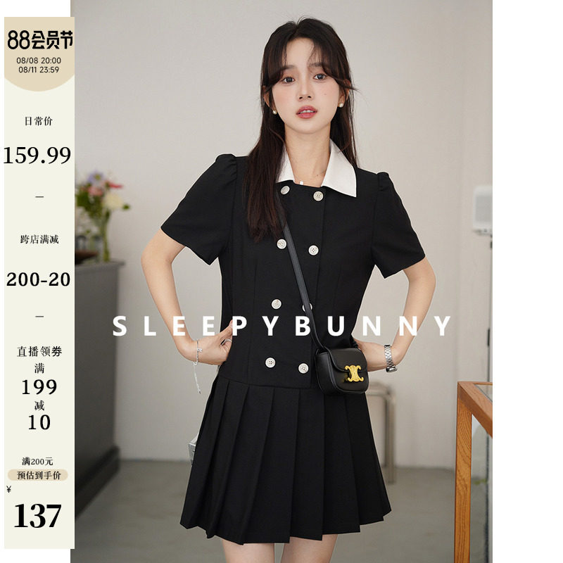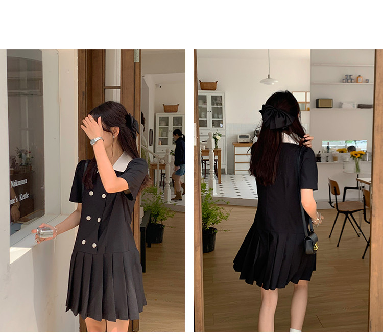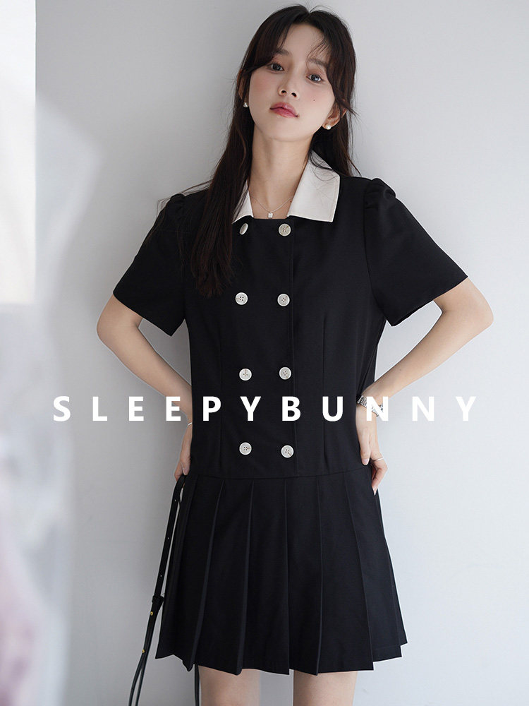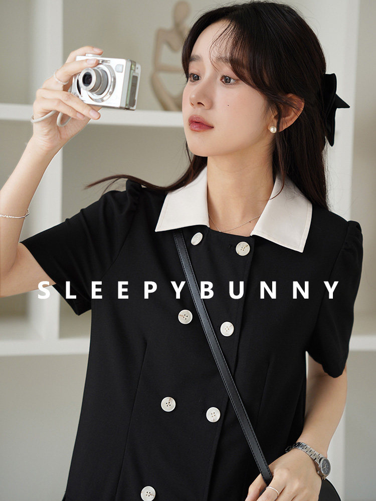 瞌睡兔 Ретро платье, мини-юбка, подходит для подростков, рукава фонарики, короткий рукав