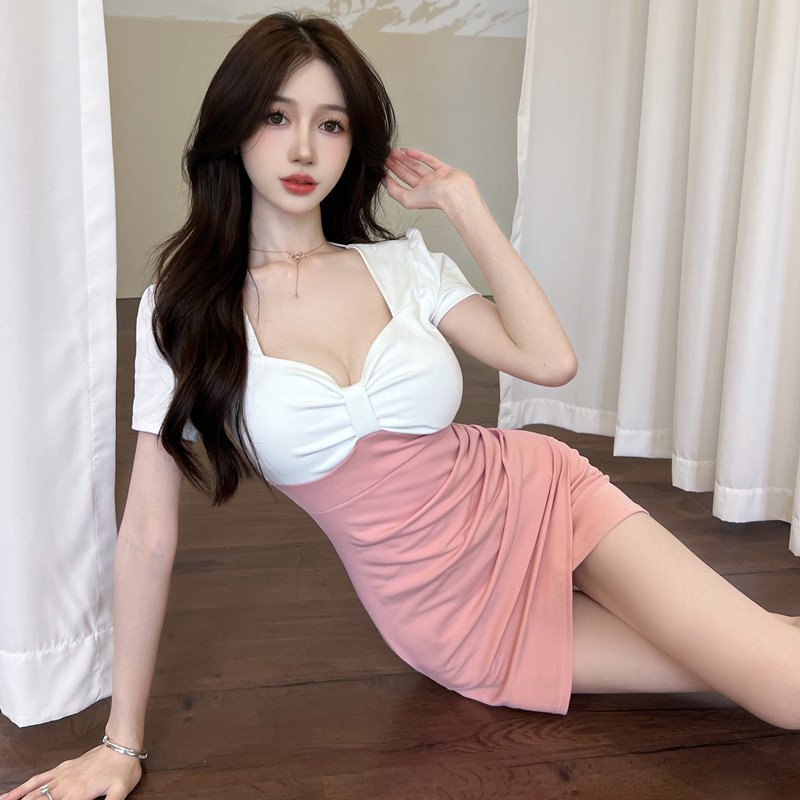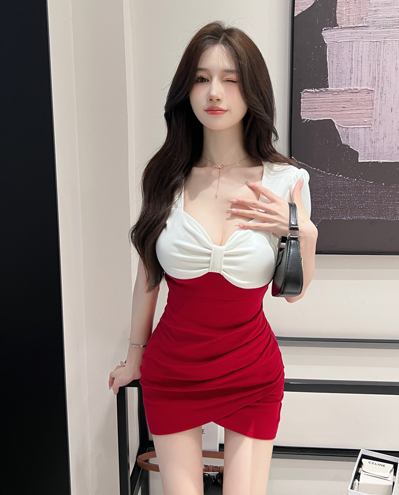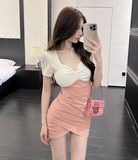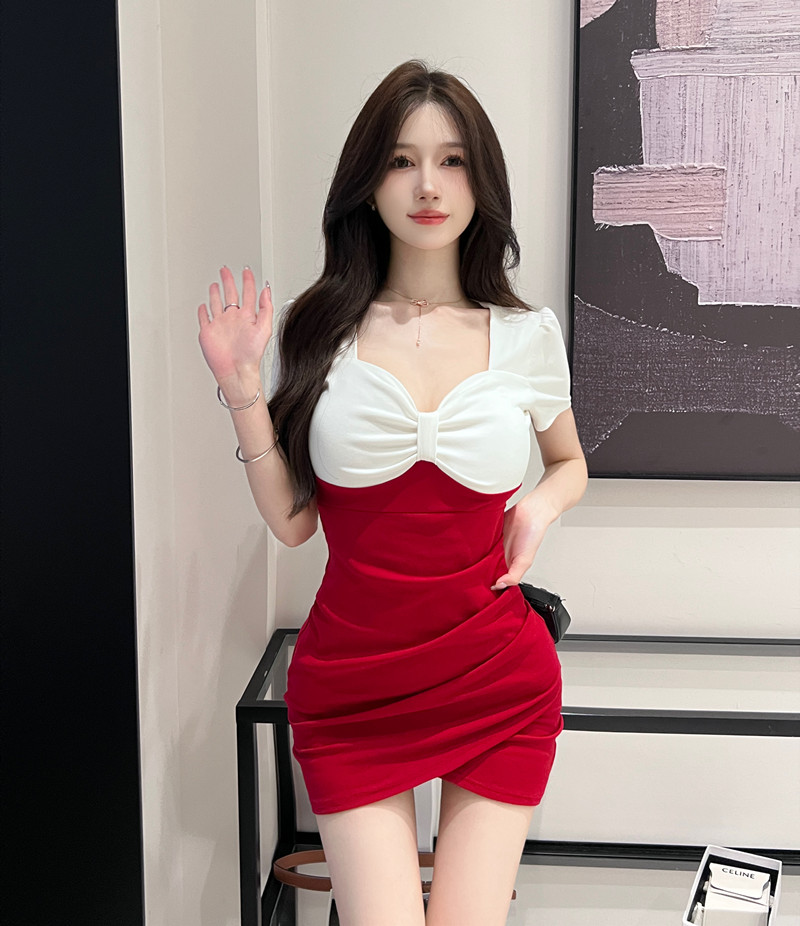 Сексуальное платье для работы, цветная мини-юбка, с акцентом на бедрах