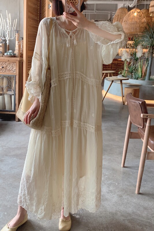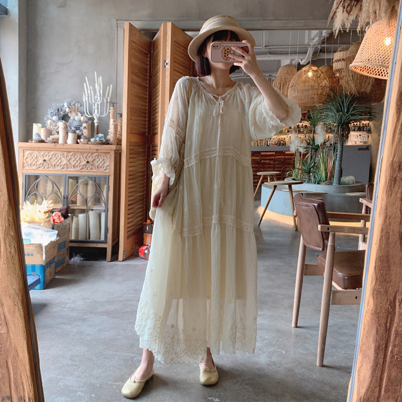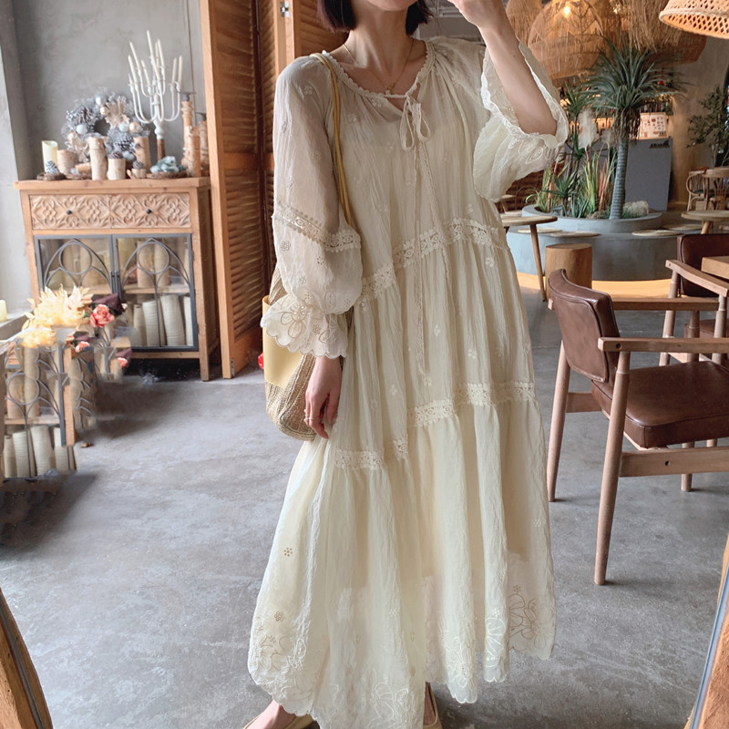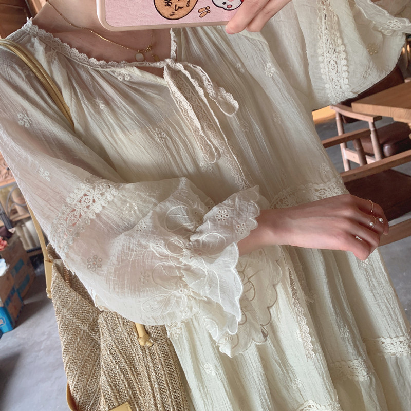 Оригинальная летняя ретро кружевная длинная юбка, пляжное платье, французский стиль, оверсайз