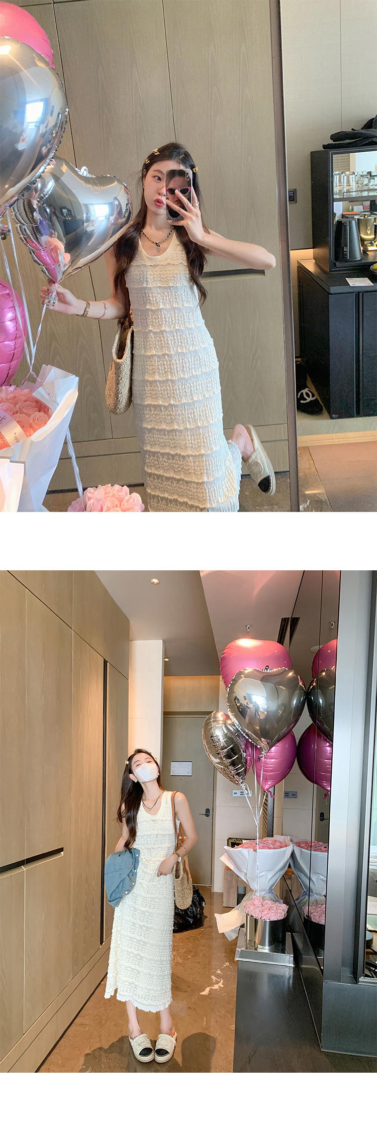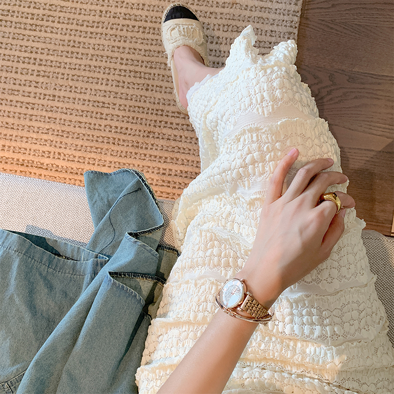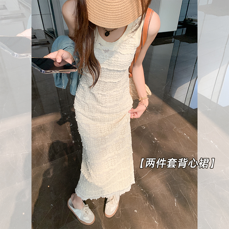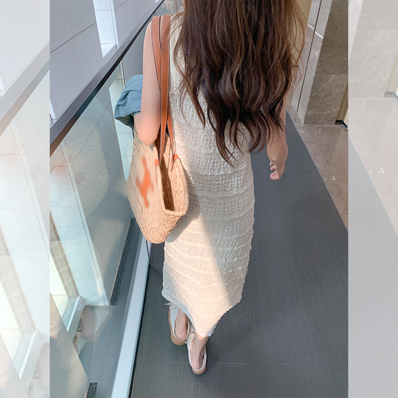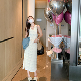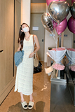 Белая летняя юбка, длинный комплект, платье без рукавов, французский стиль, средней длины