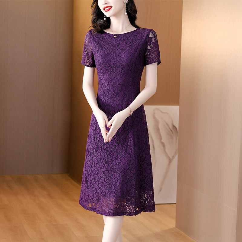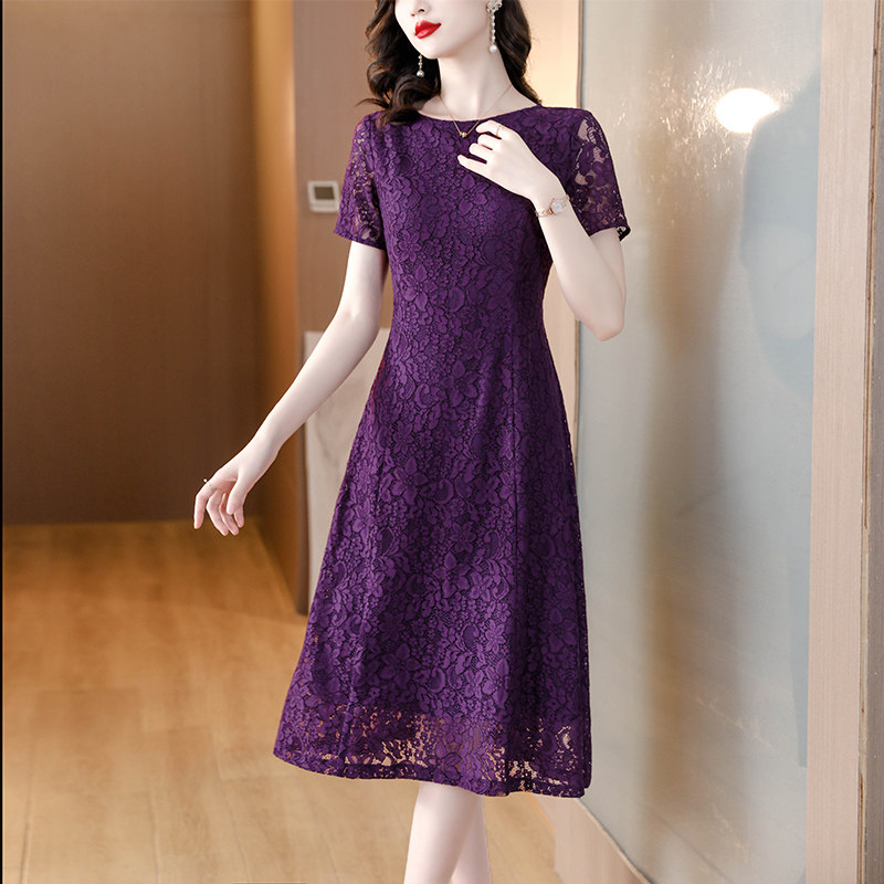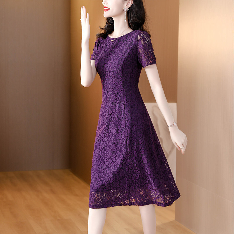 Сиреневое кружевное летнее платье, элитная модная юбка для матери, по фигуре, яркий броский стиль, большой размер