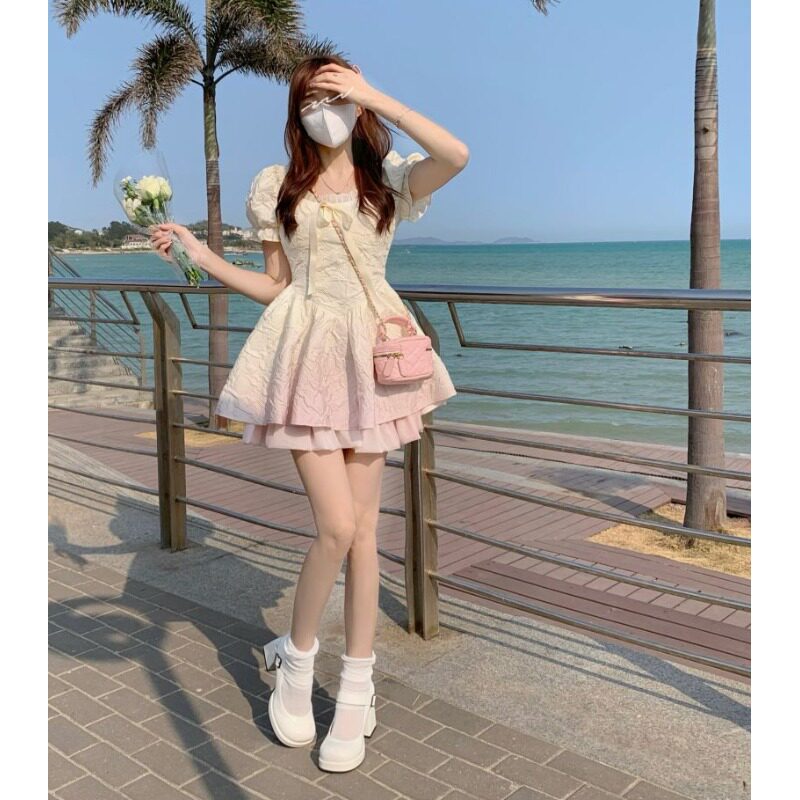 Платье, юбка для принцессы, градиент, французский стиль, квадратный вырез, юбка-пачка, подходит для подростков, подарок на день рождения