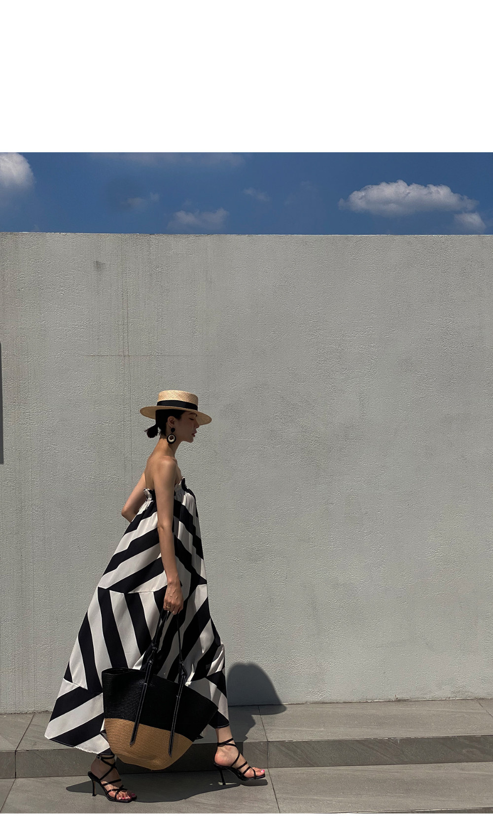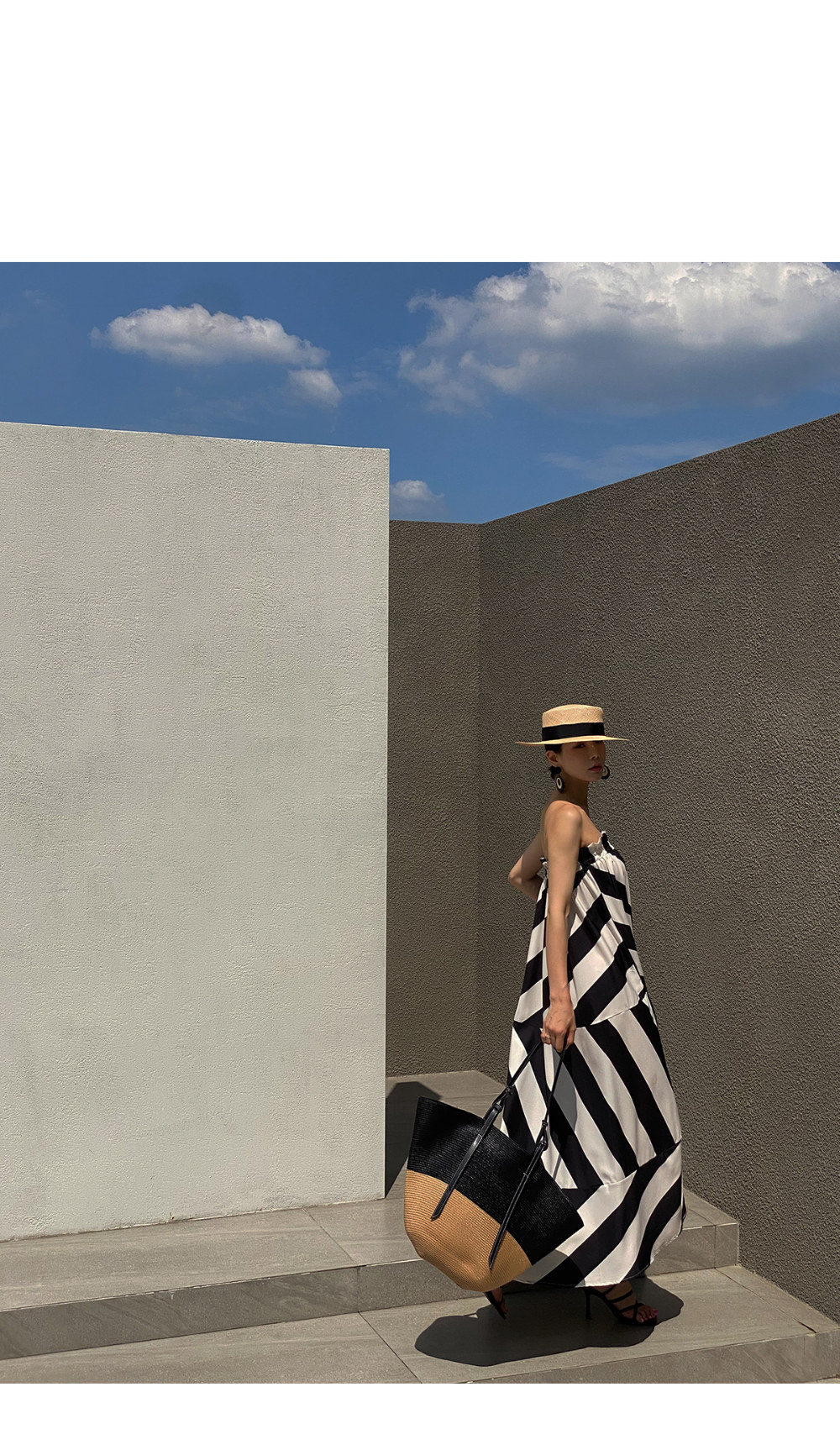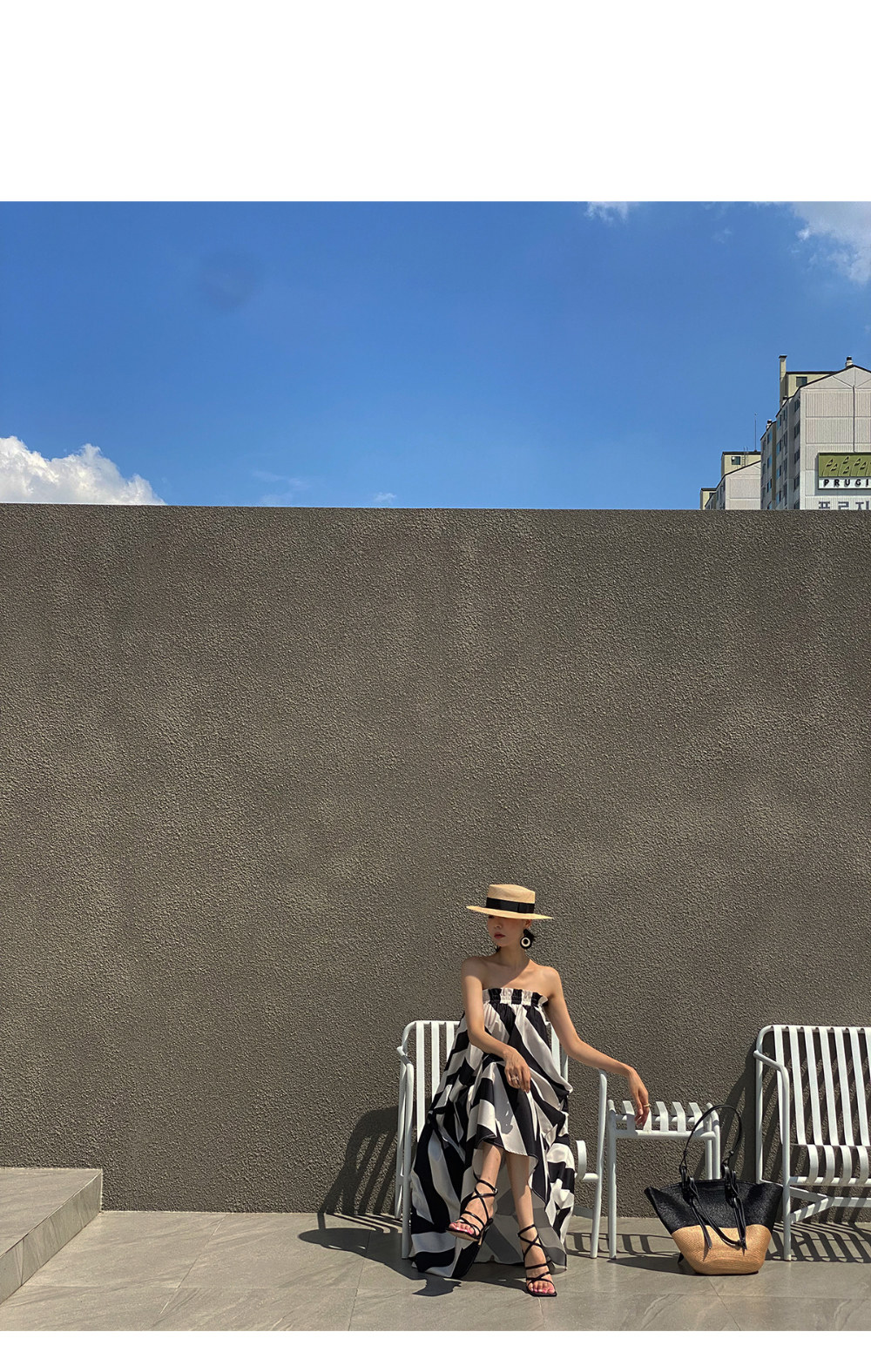 Корейская мода, летняя французская курортная стильная юбка с открытыми плечами и контрастным геометрическим узором, свободная повседневная юбка-топ для женщин