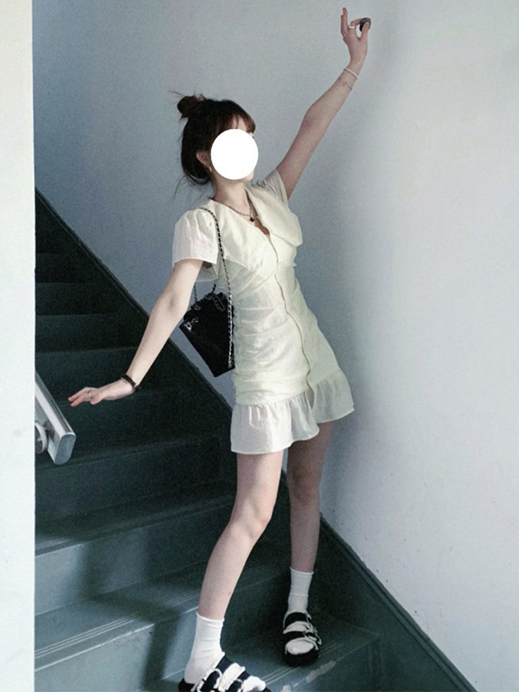 Летнее приталенное платье, французский стиль, изысканный стиль, А-силуэт