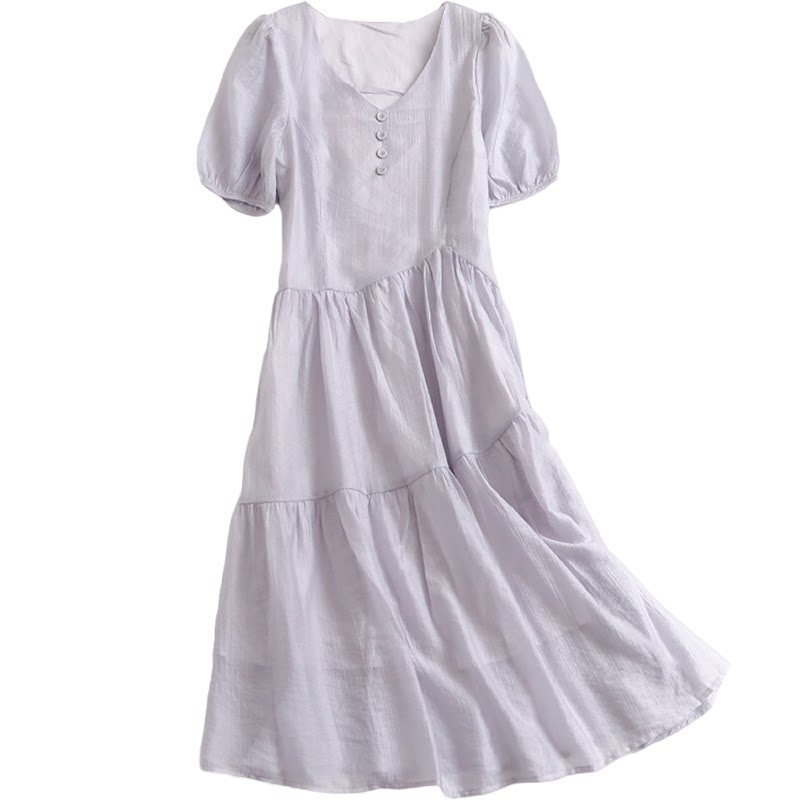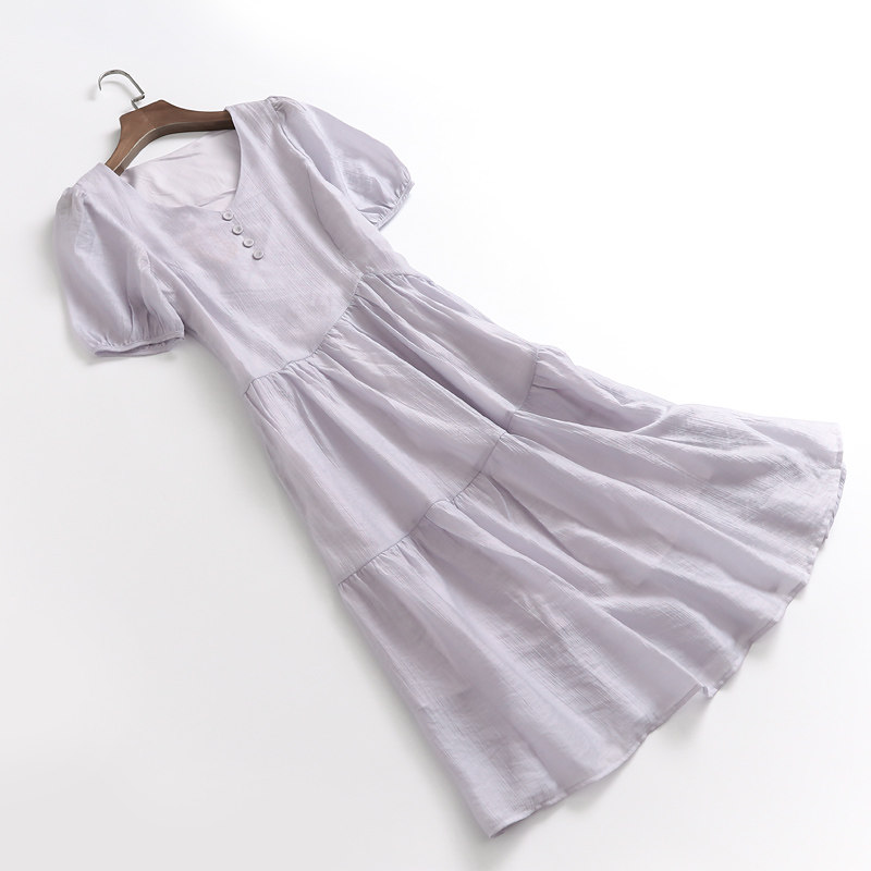 Летняя летняя одежда, сиреневая юбка, V-образный вырез, изысканный стиль, короткий рукав