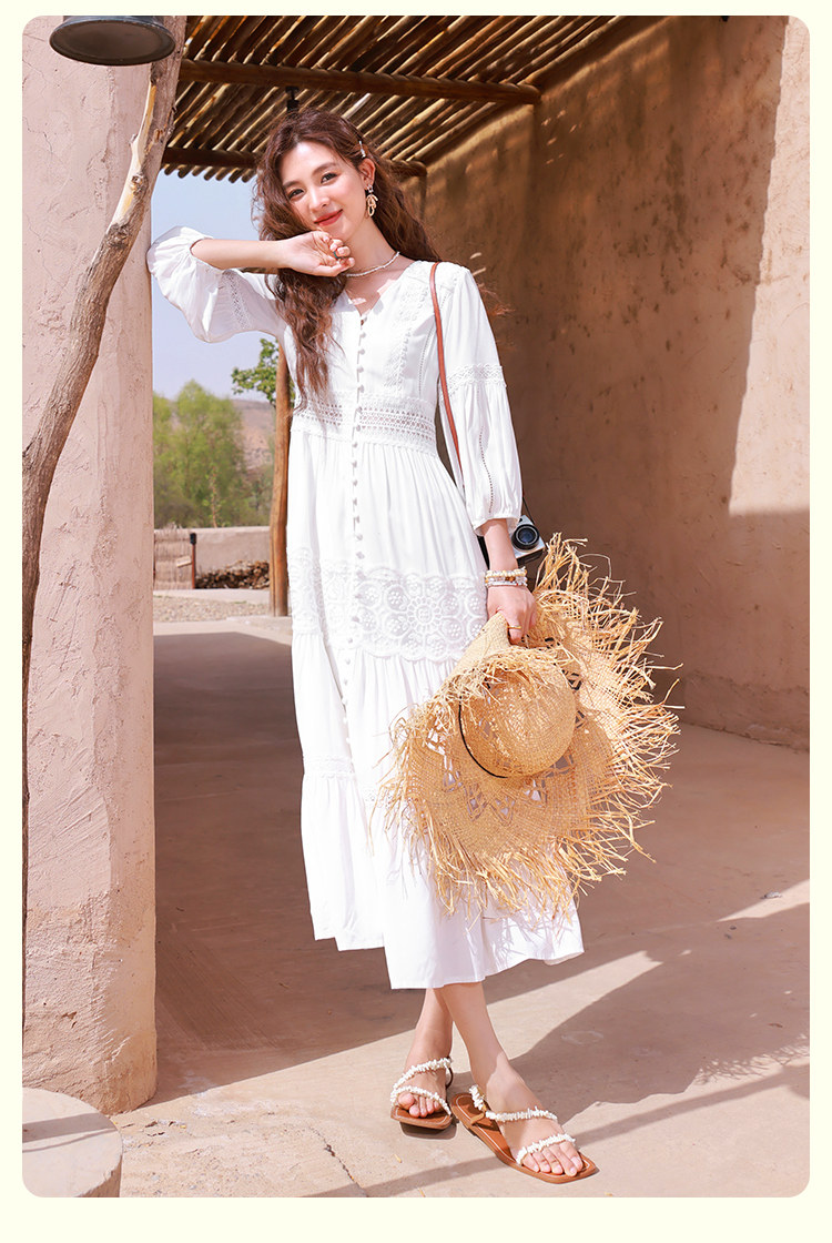 Белое летнее платье, летняя одежда, V-образный вырез