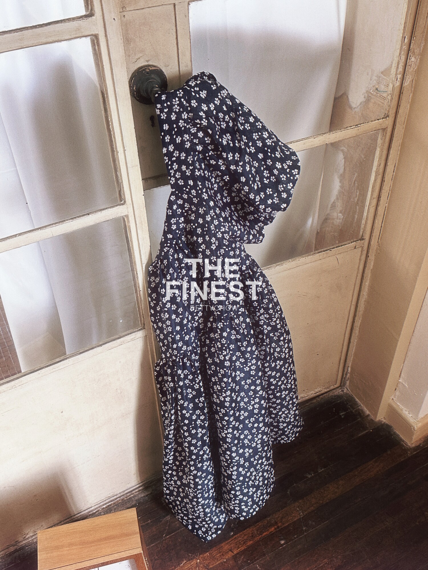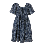 Беттихоу очень красиво!Поставляется с текстурным льном, шелковым маленьким цветочным пузырьковым пузырьковым рукавом свободное платье
