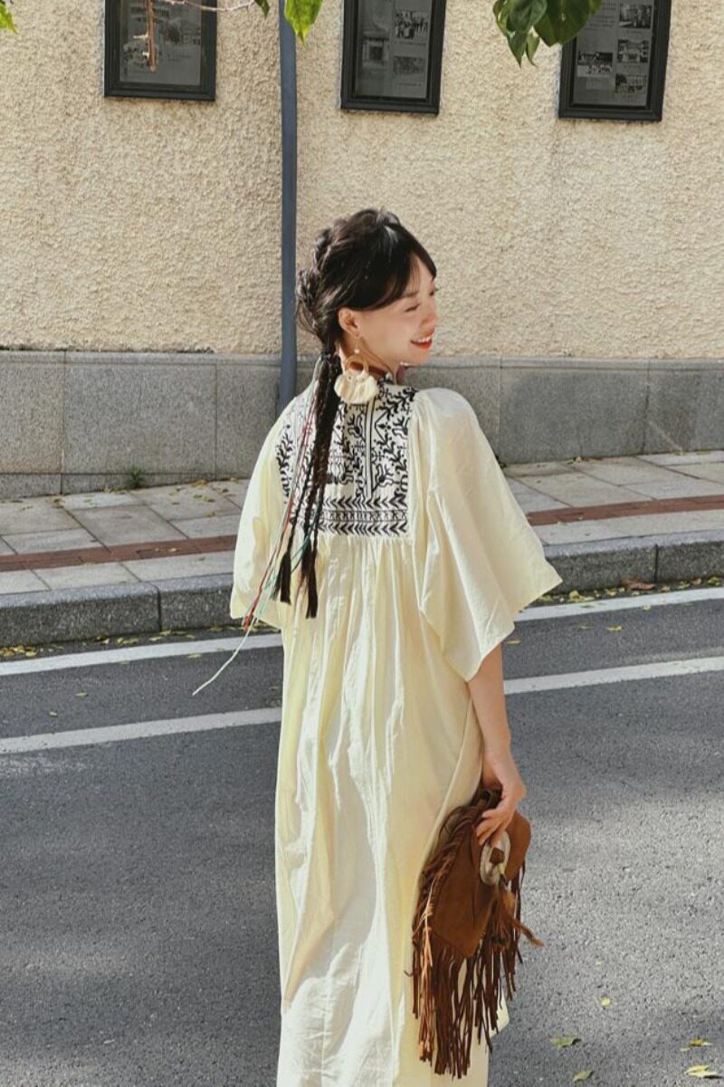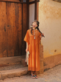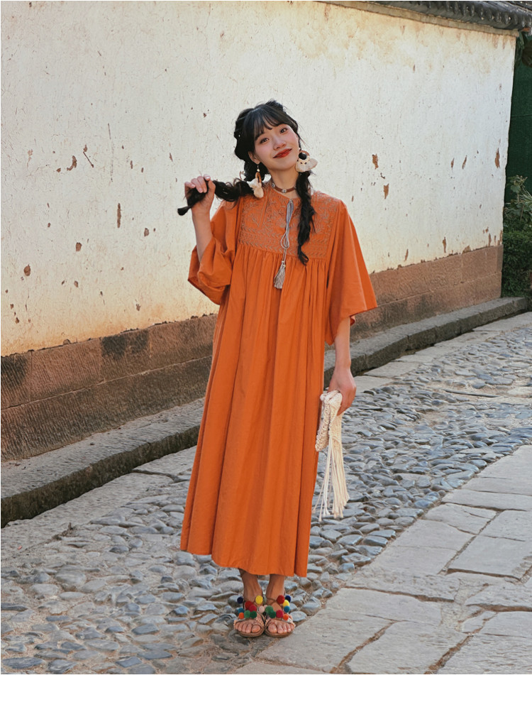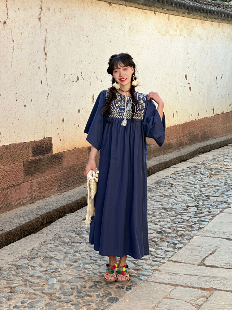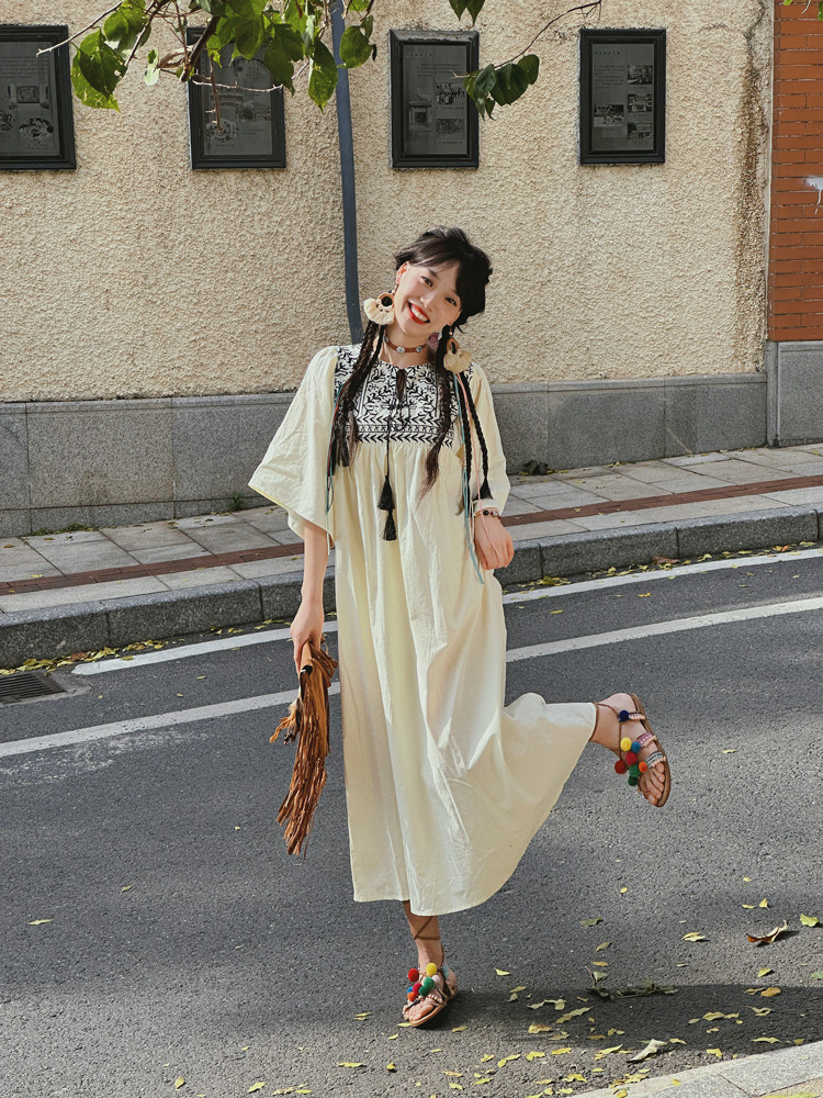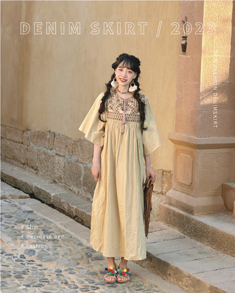 Этническая длинная юбка из провинции Юньнань, платье для путешествий, этнический стиль, с вышивкой, из хлопка и льна, свободный крой