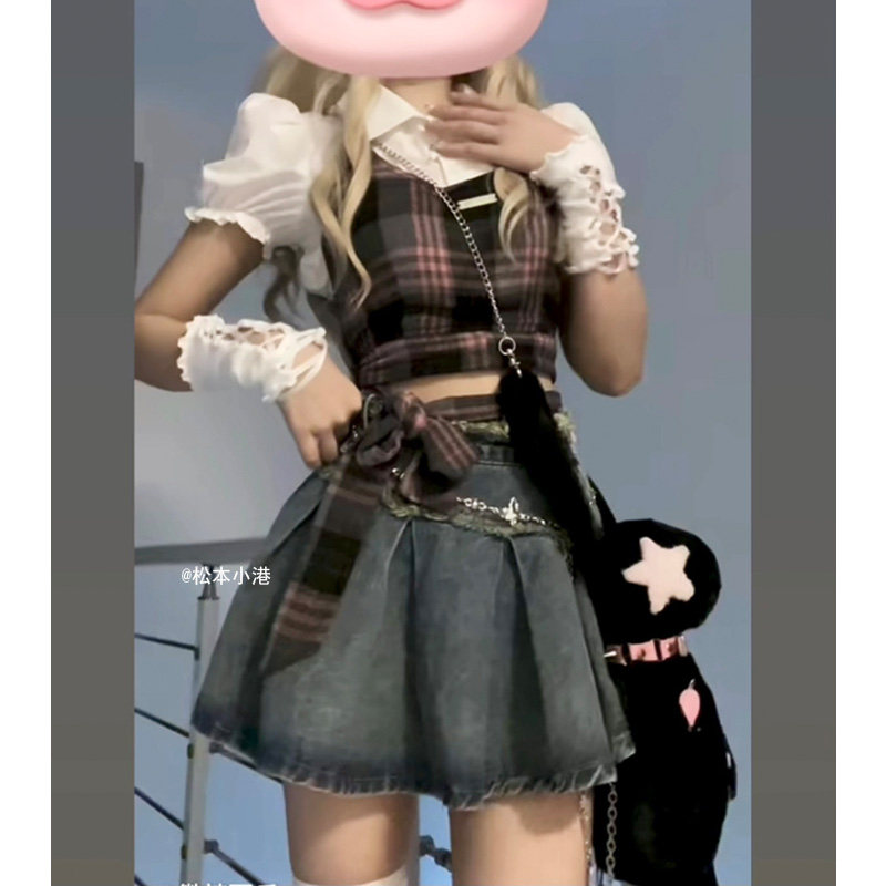 | Цвет: | Положите один кусок в белую рубашку, Полиз, Джинсовая юбка в складку, безопасные штаны |