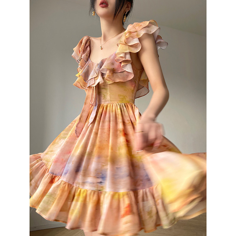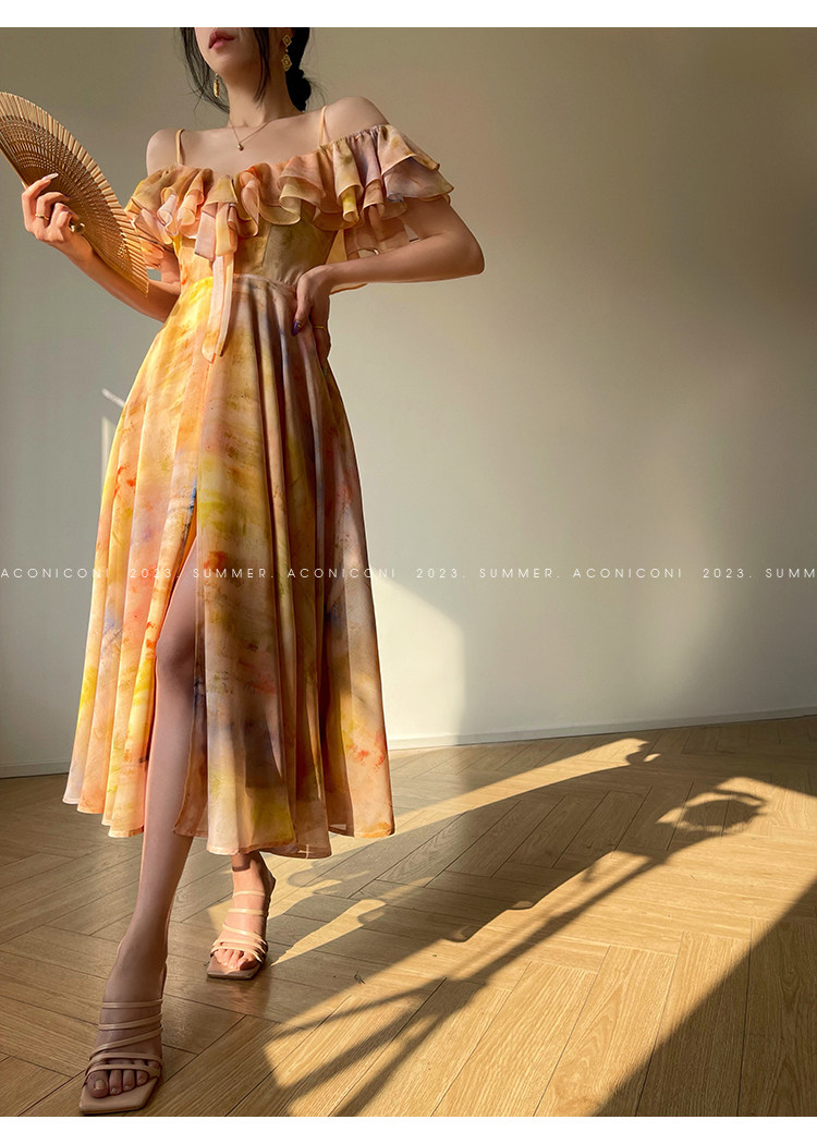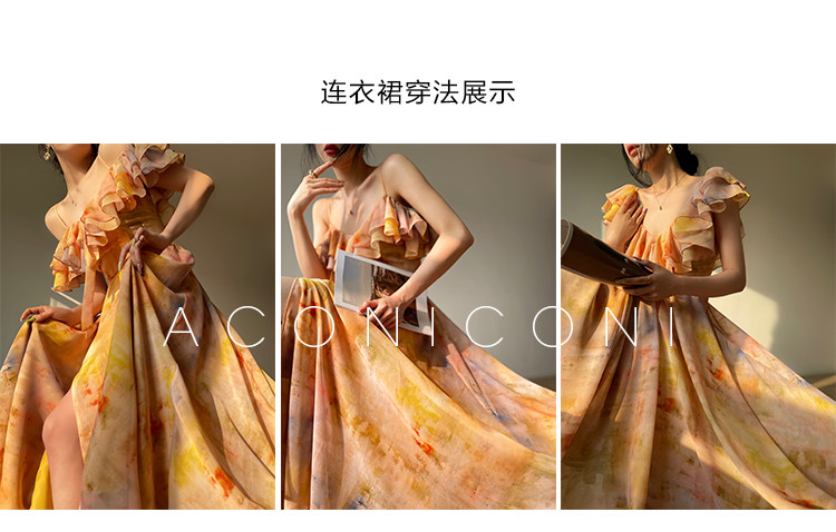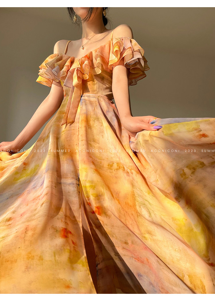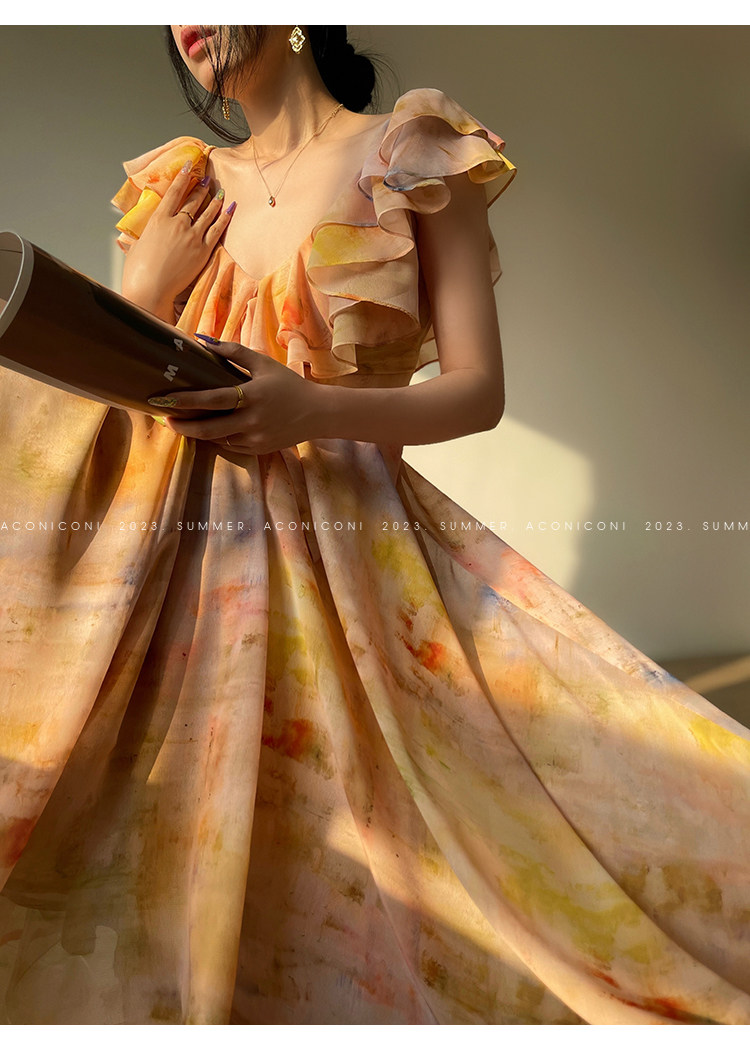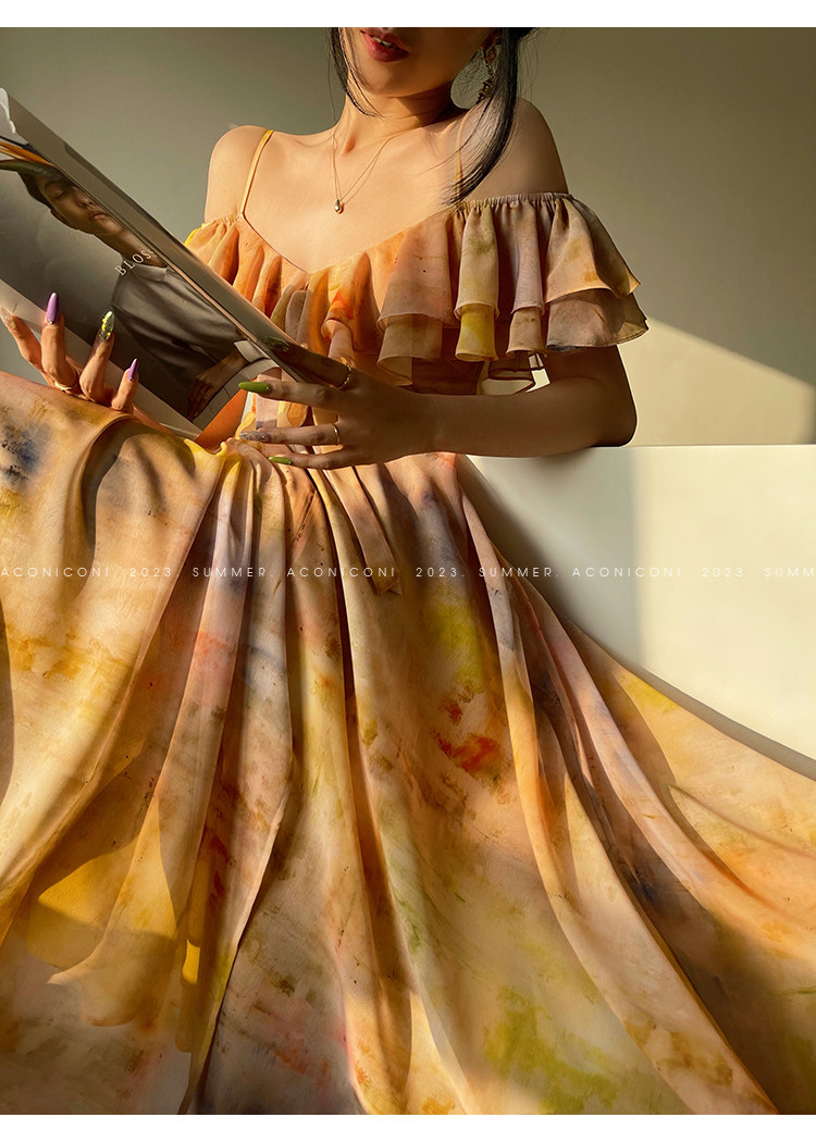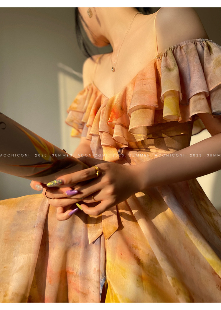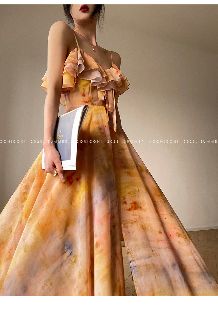 [Купи 3, получи 1 бесплатно] Aconiconi|Светящаяся картина, лето, принт платья на подтяжках, французский темперамент, праздничный стиль