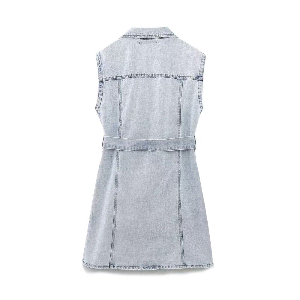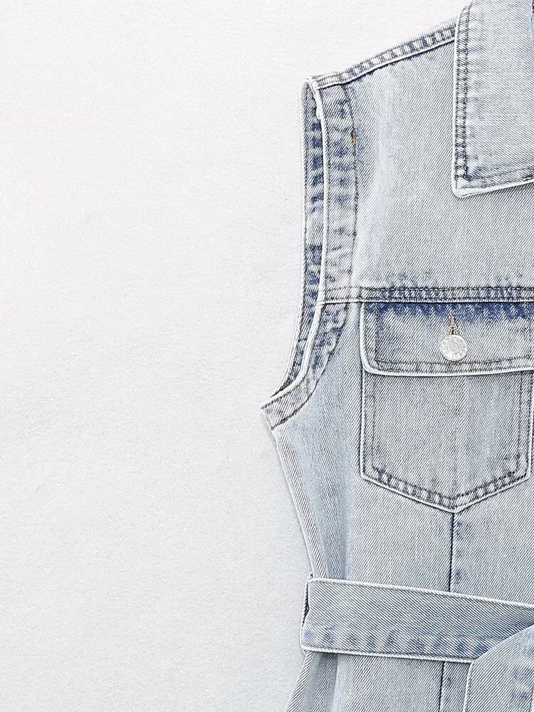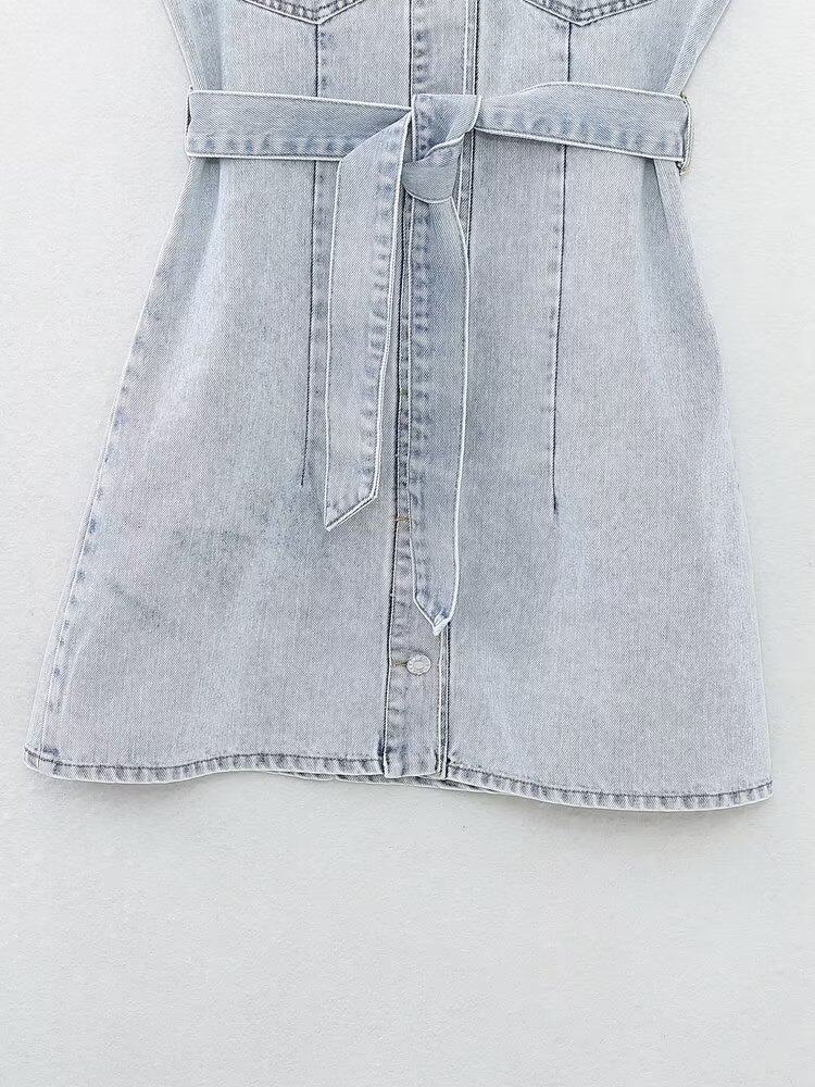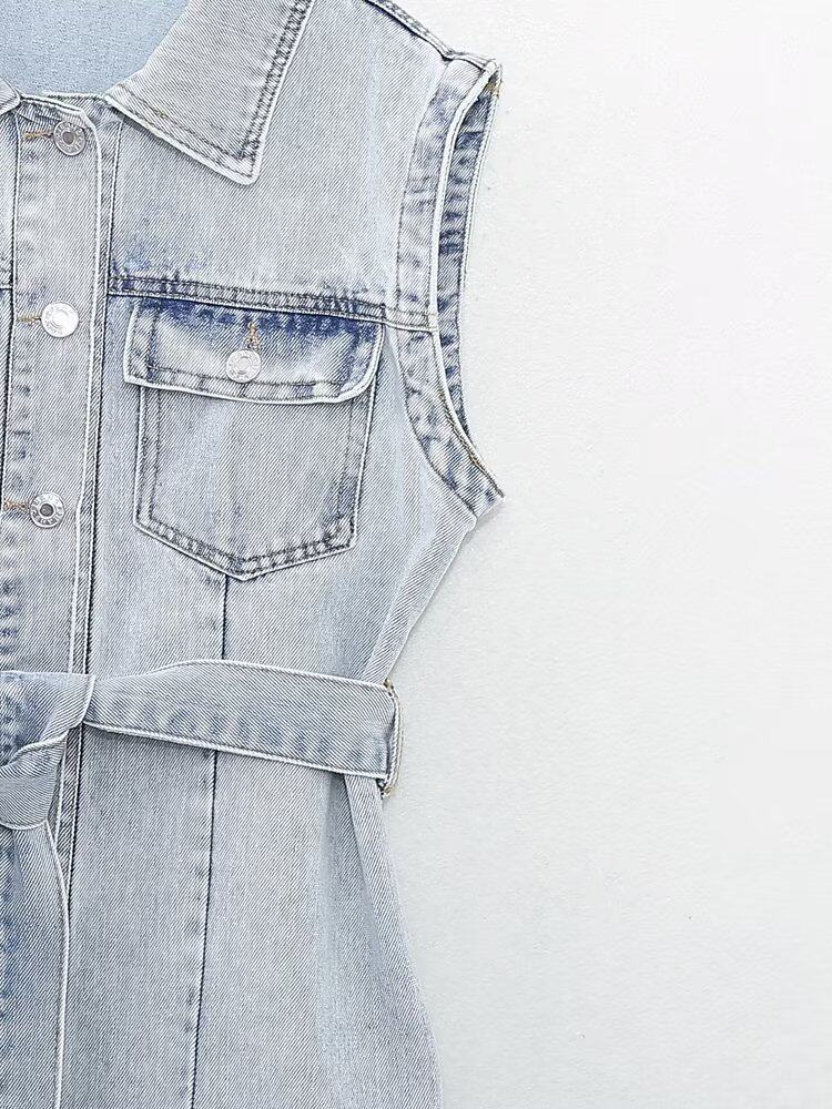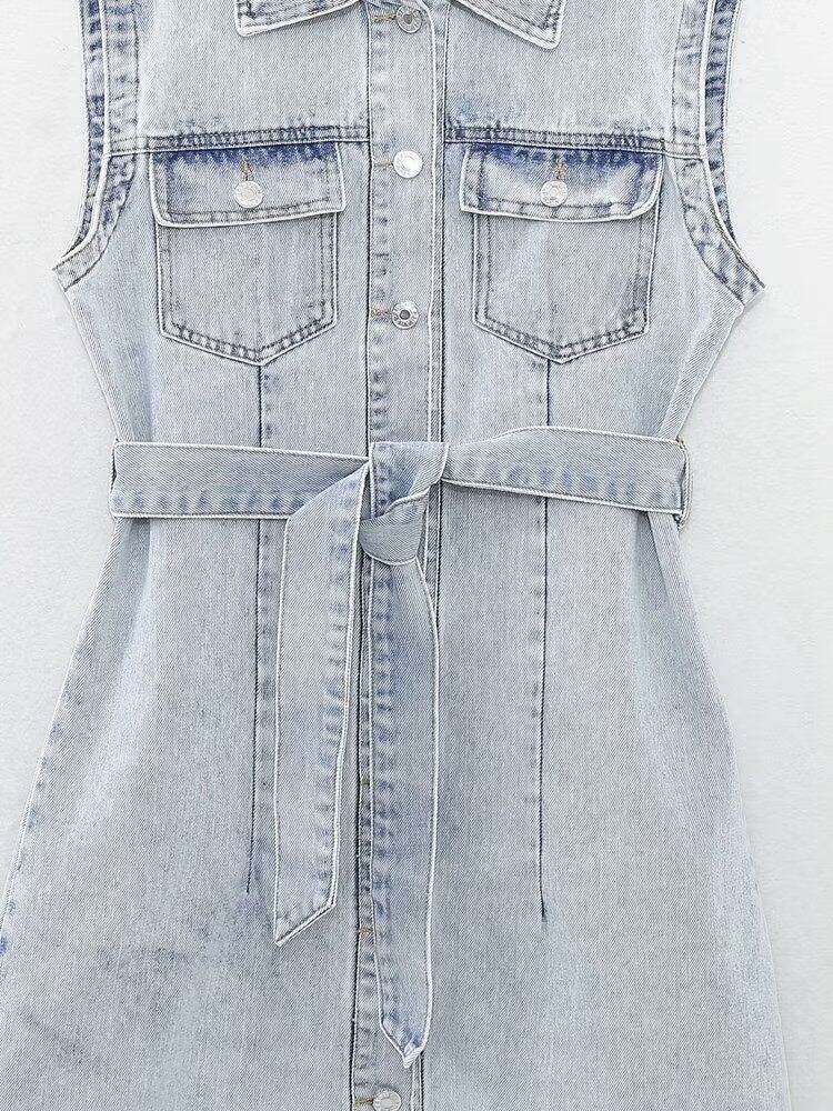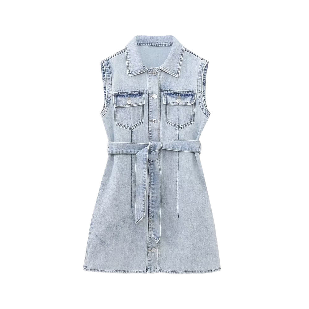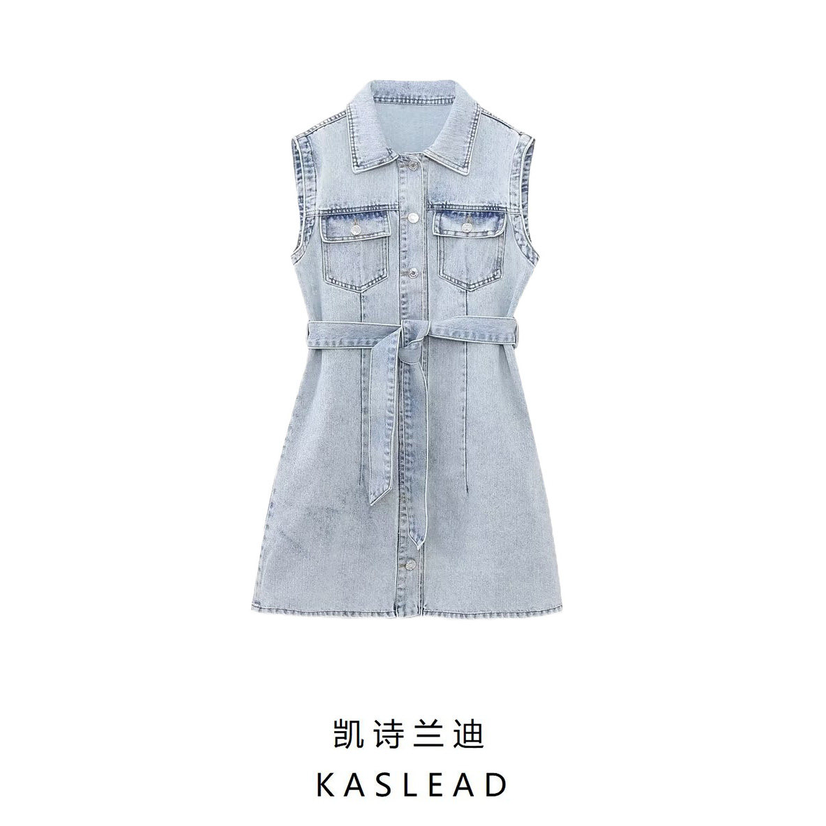 Kaslead New Women's European и American Style Loomeveless и талия Band Denim Dress 2449052 406
