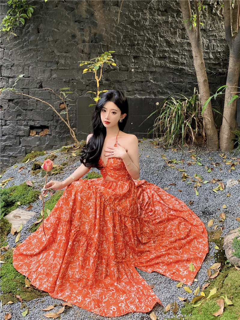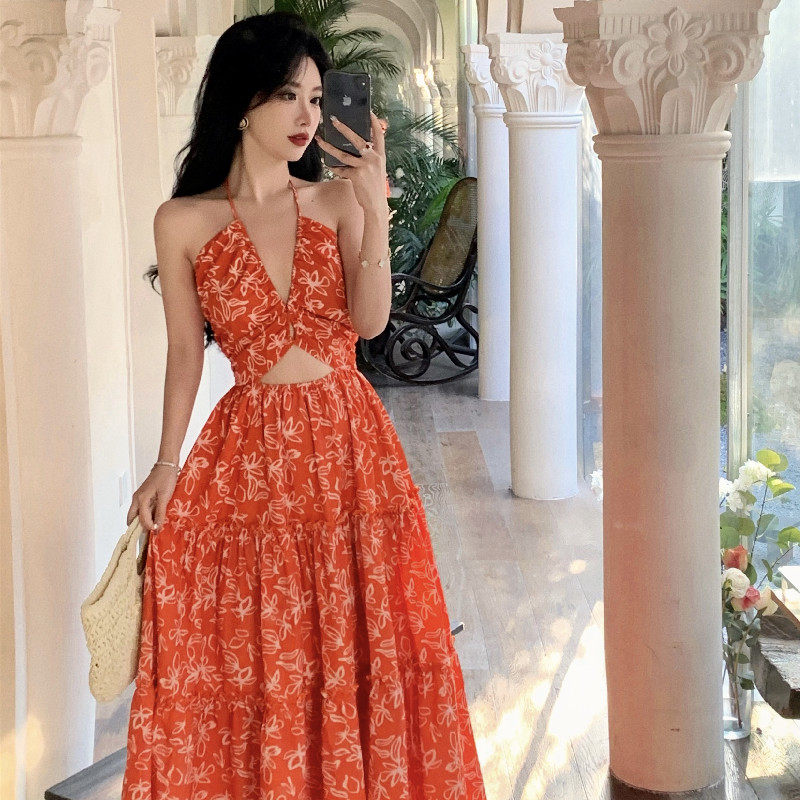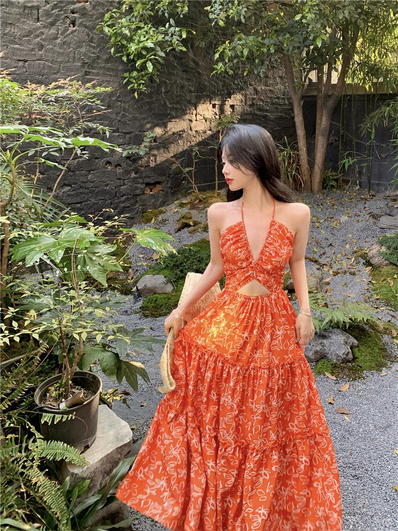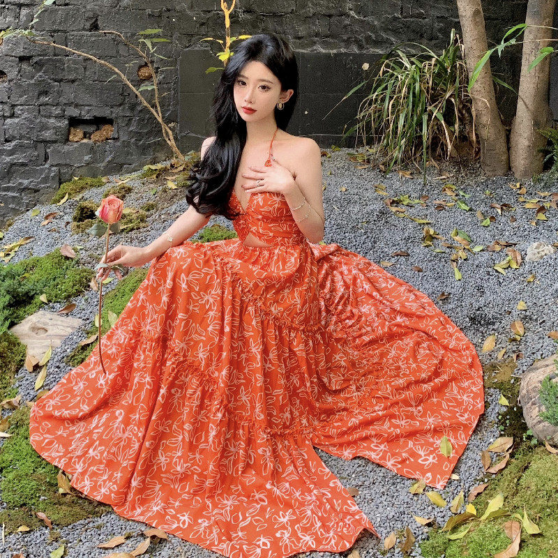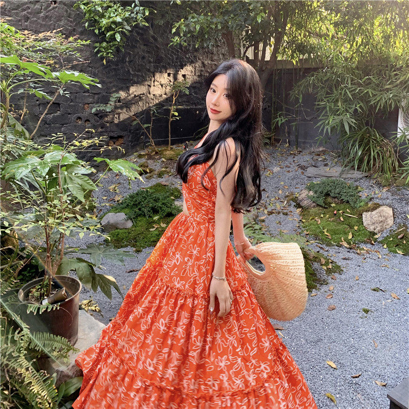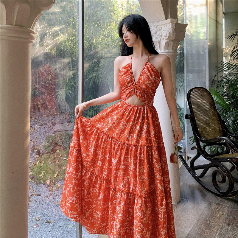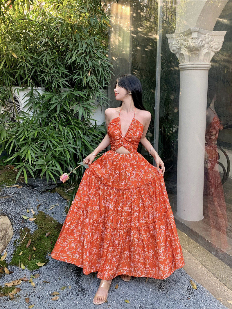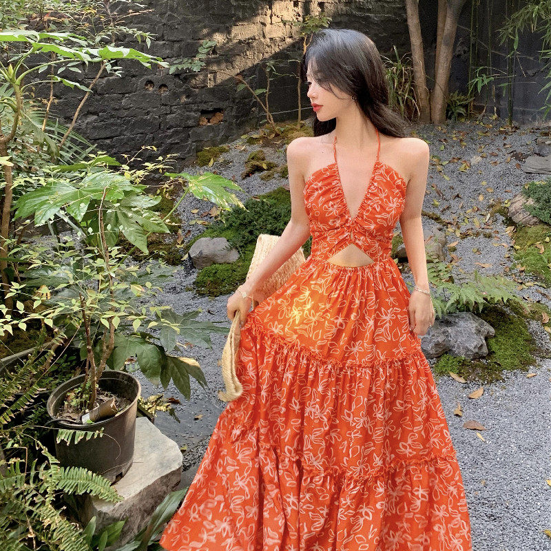 Пляжное платье, длинная юбка, стиль бохо, изысканный стиль, цветочный принт