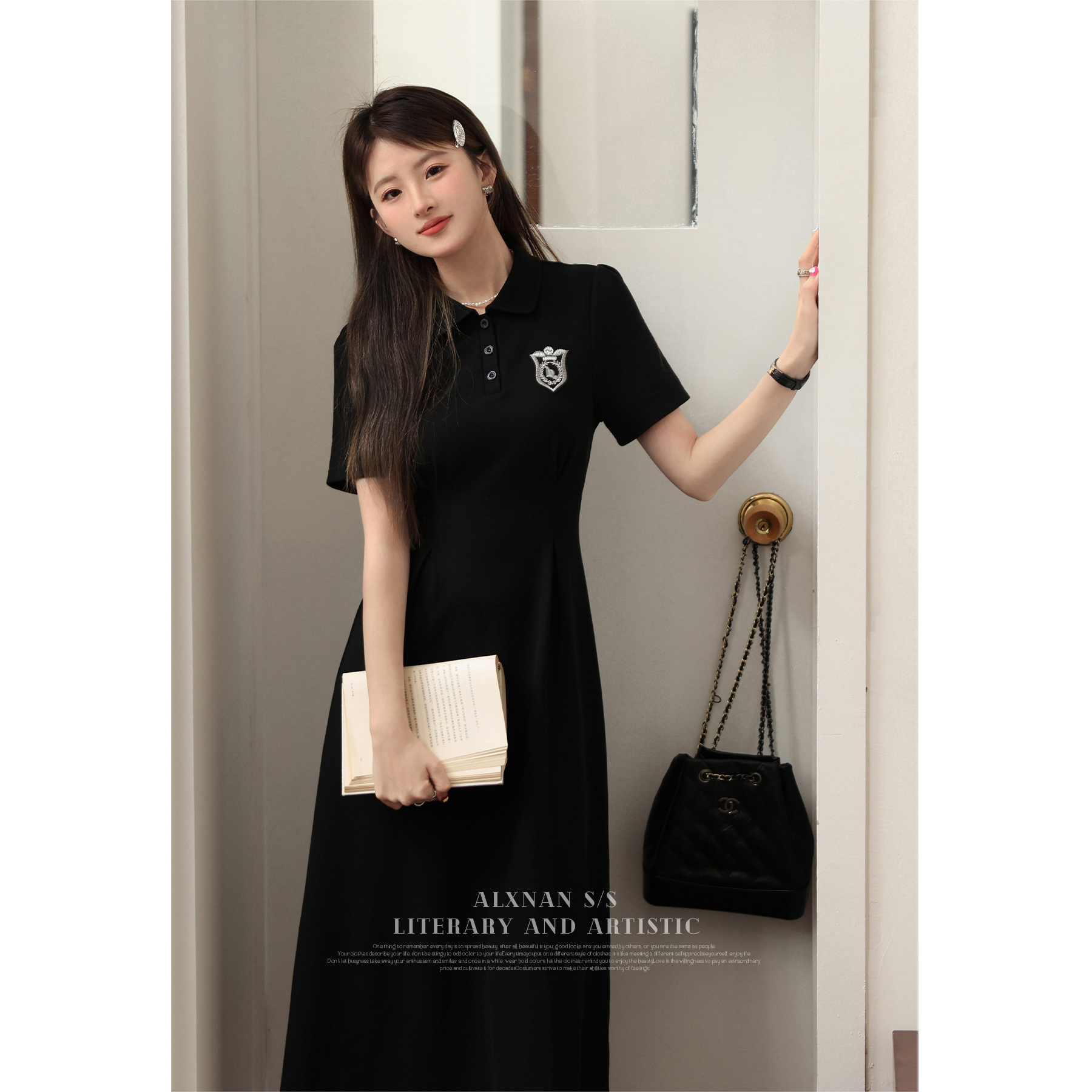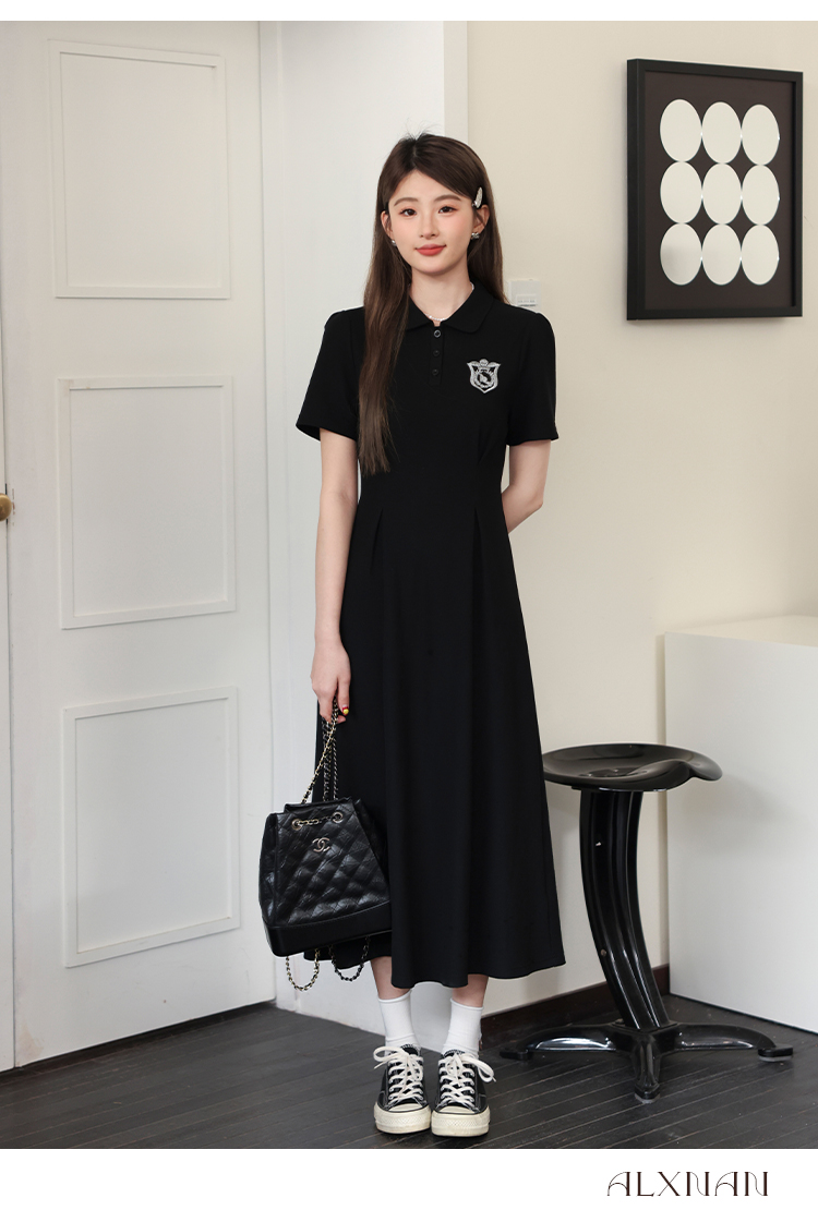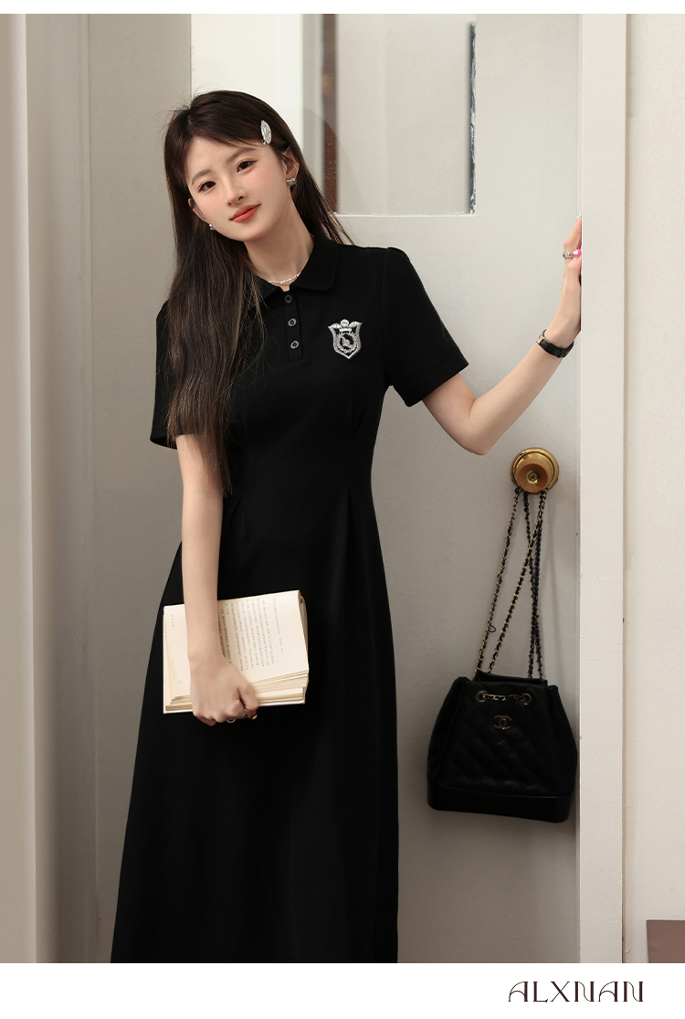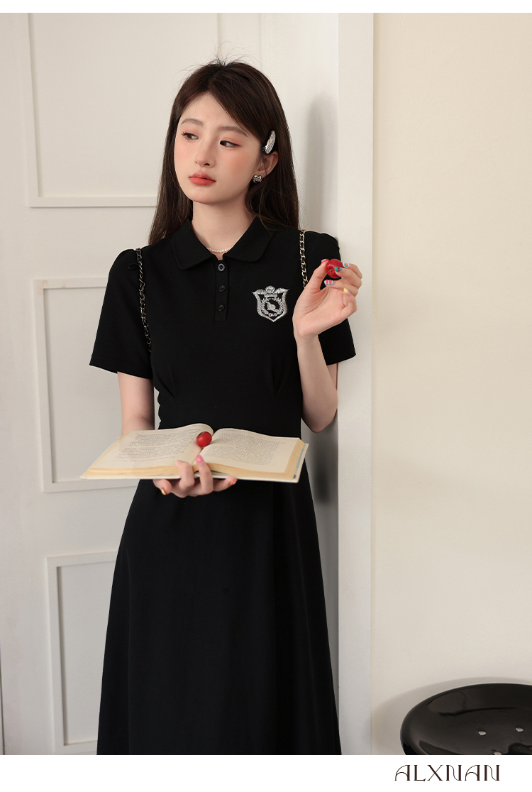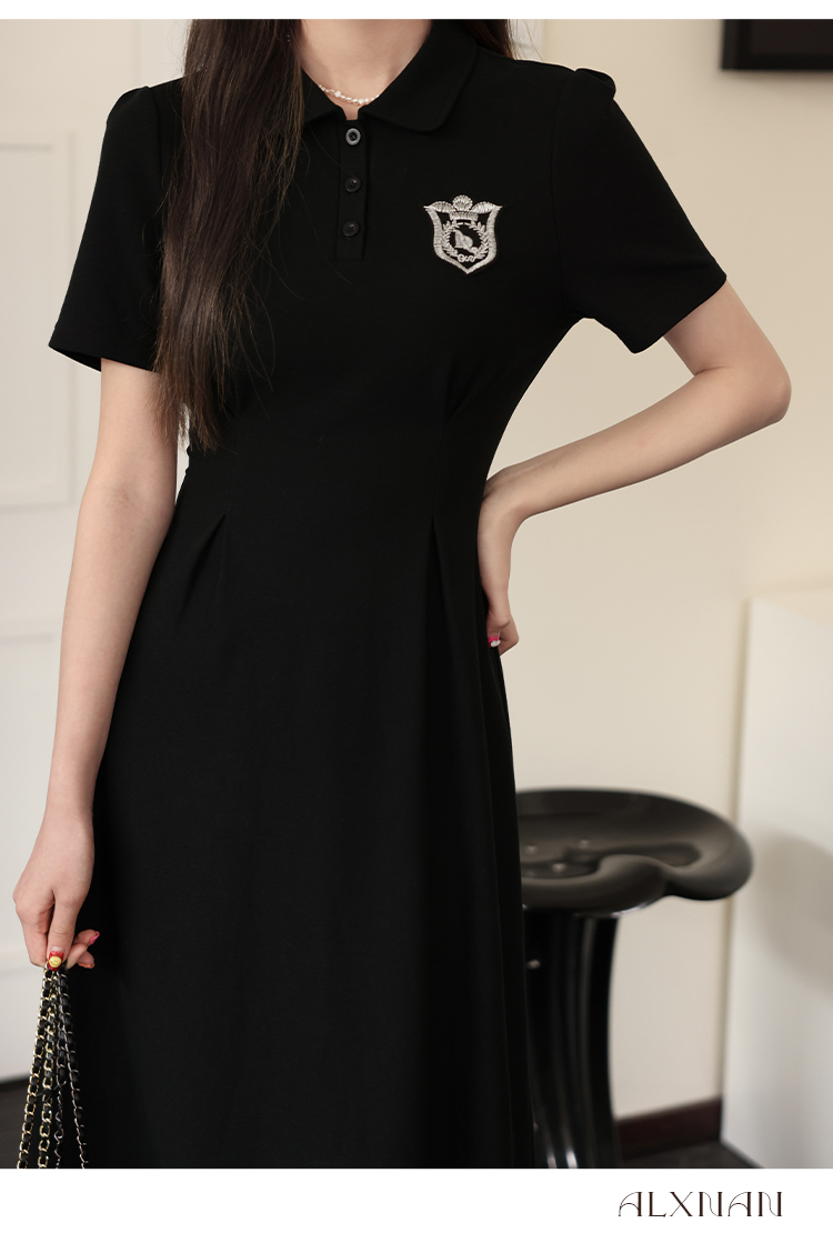 鹿向南 Черный приталенный корсет, воротник поло, А-силуэт