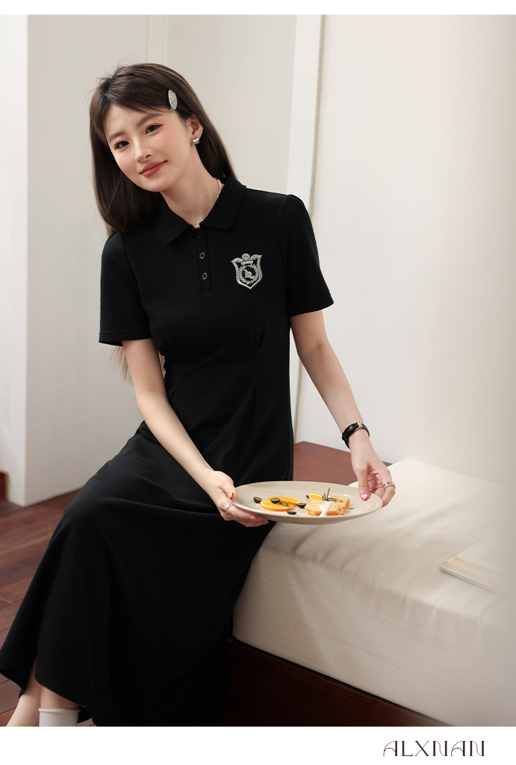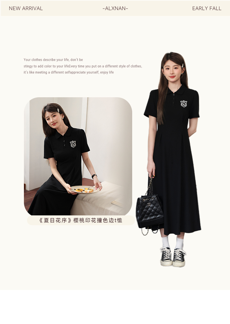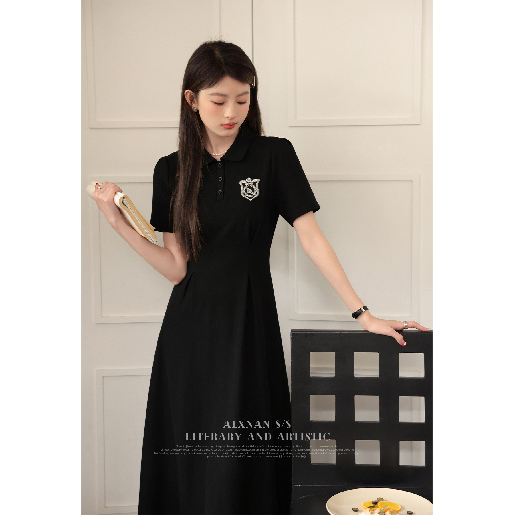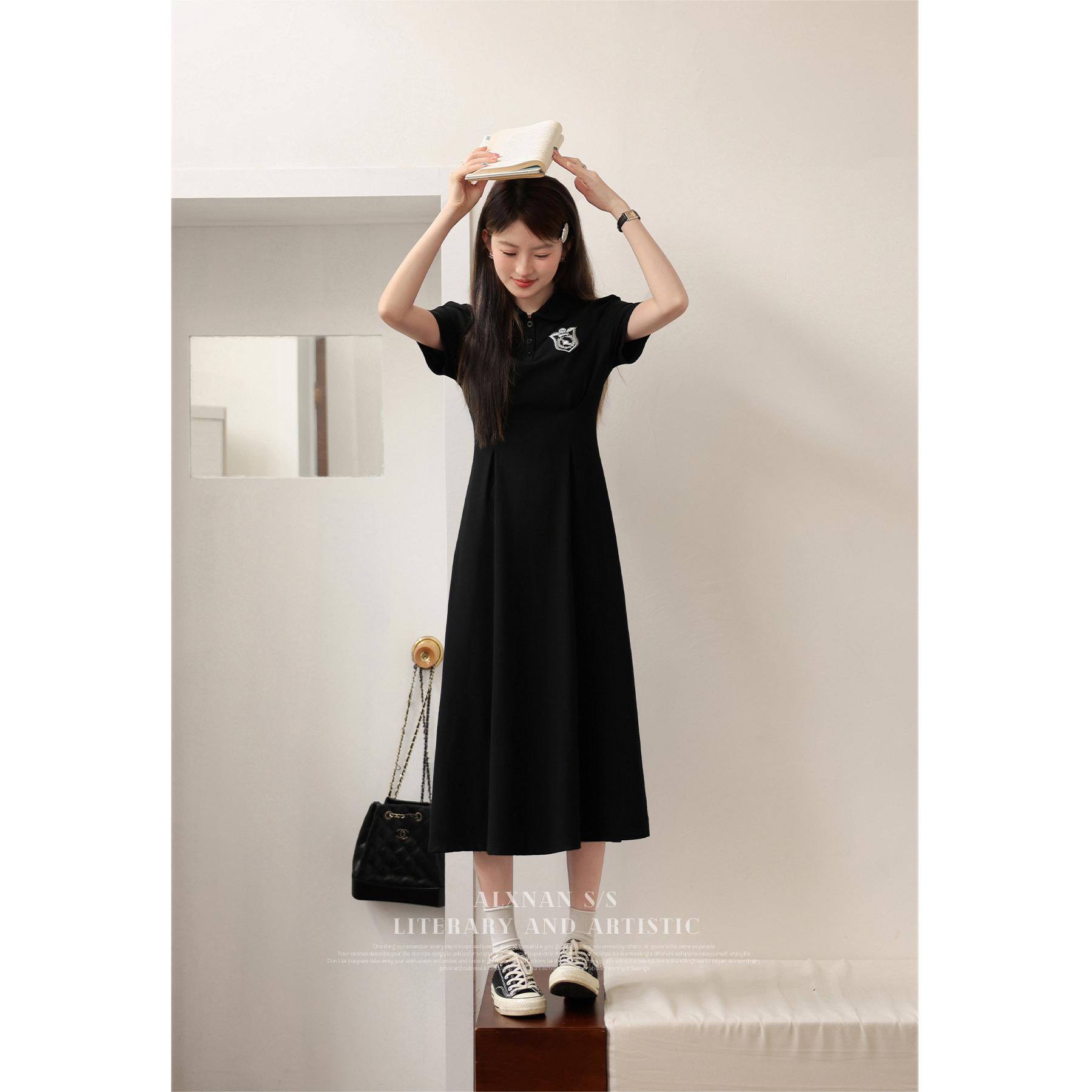 鹿向南 Черный приталенный корсет, воротник поло, А-силуэт