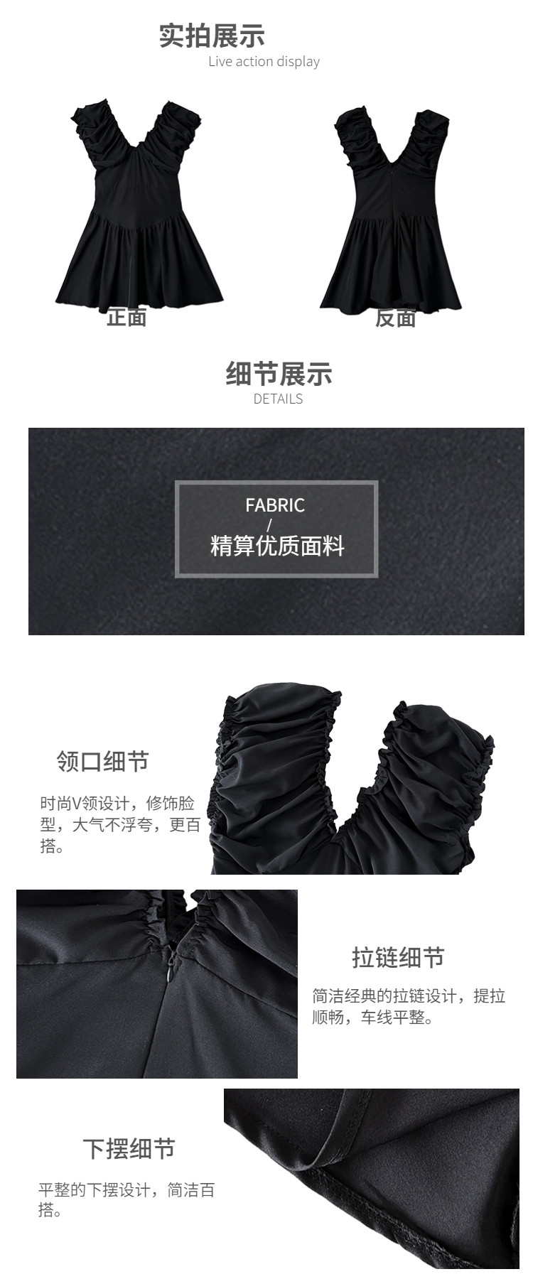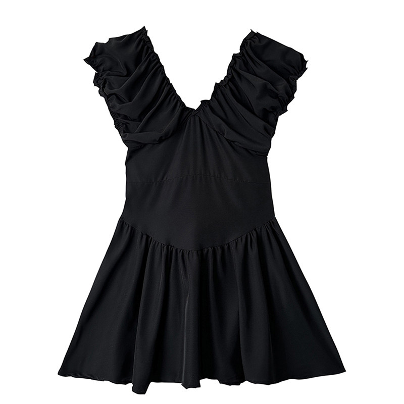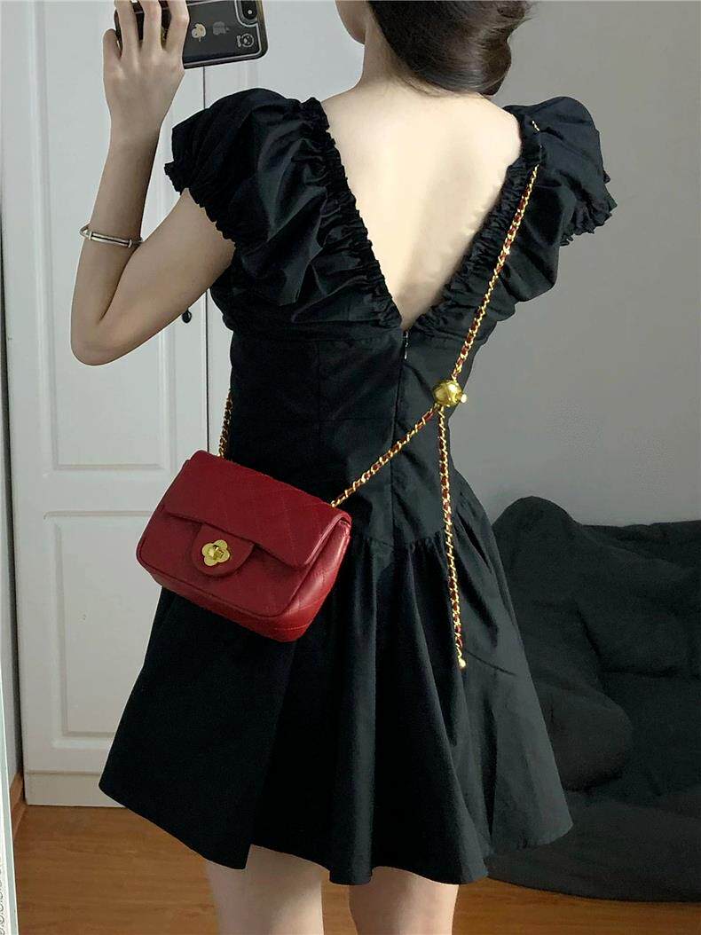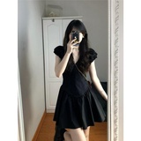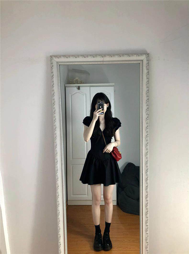 Черная летняя юбка, короткая мини-юбка, V-образный вырез, французский стиль, изысканный стиль, яркий броский стиль, по фигуре, подходит для подростков