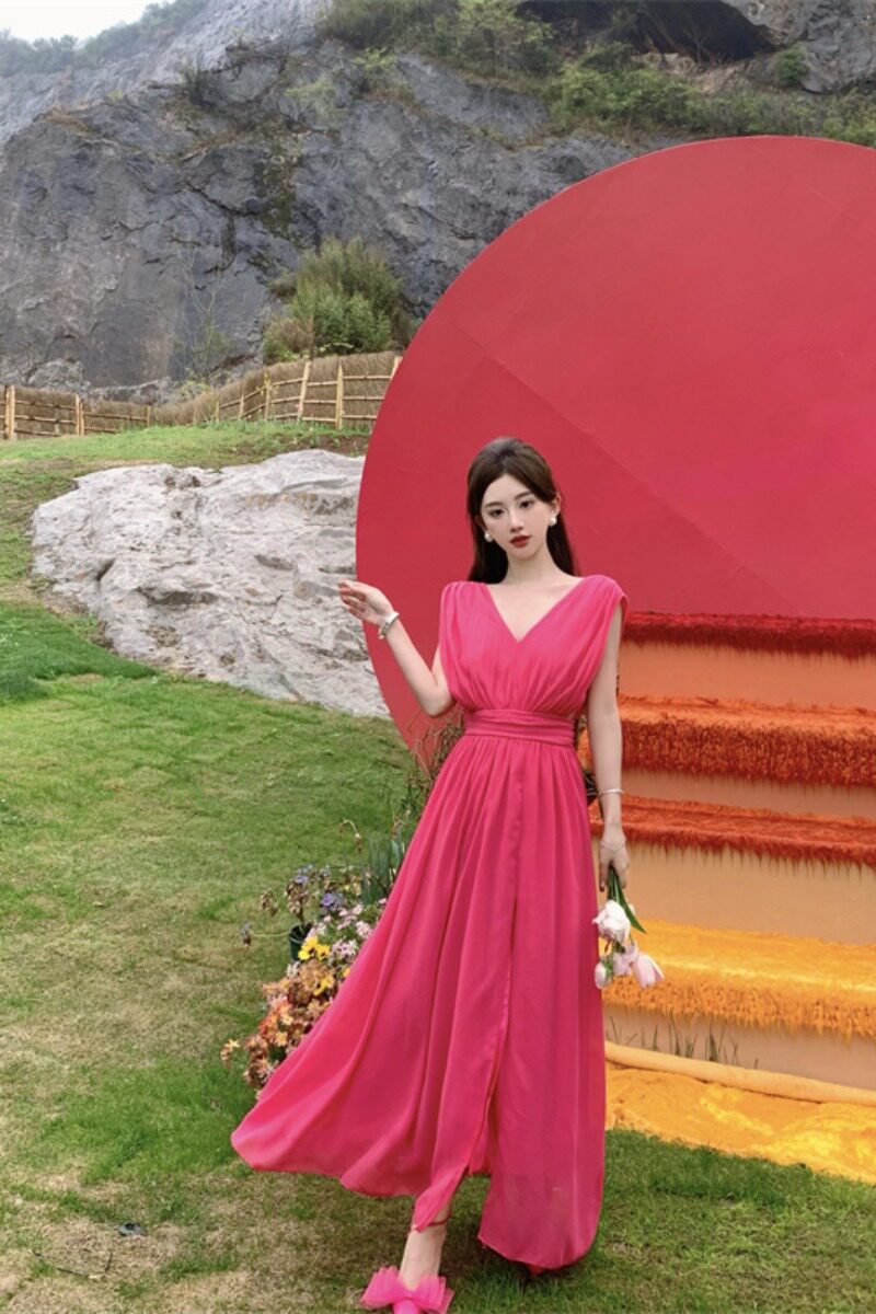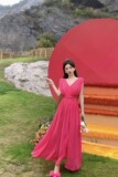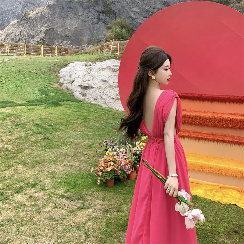 Приталенный корсет, красная длинная юбка, пляжное платье, изысканный стиль
